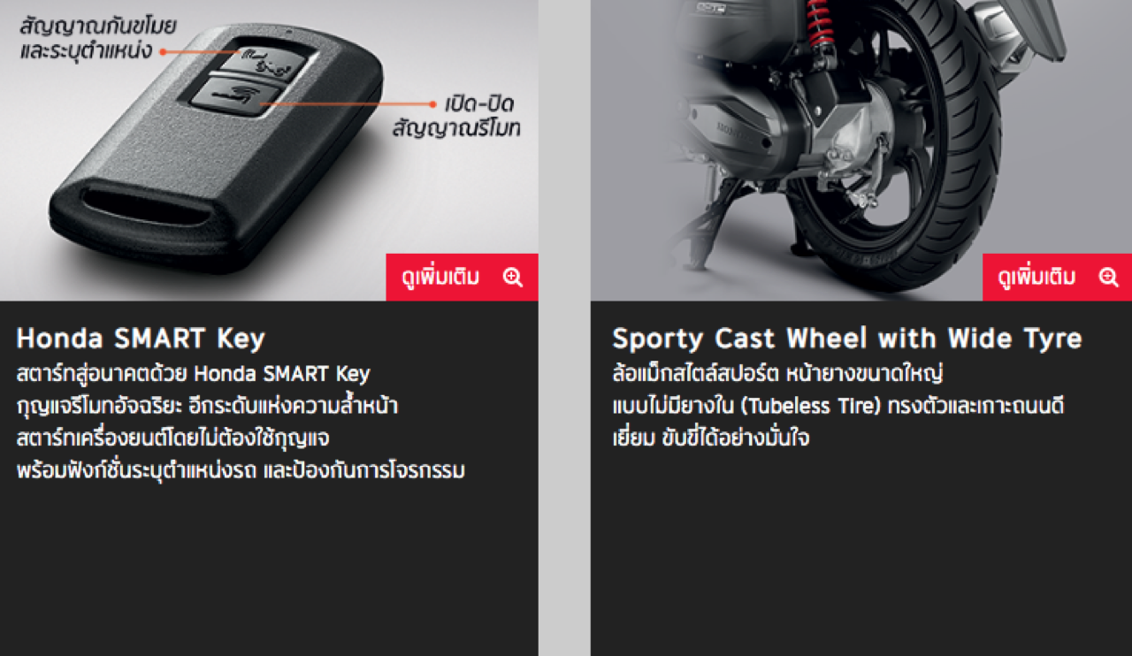 ระบบจ่ายน้ำมันแบบหัวฉีด PGM-FI 4 จังหวะ แบบซิงเกิ้ลโอเวอร์เฮดแคมชาฟท์ ระบายความร้อนด้วยน้ำ