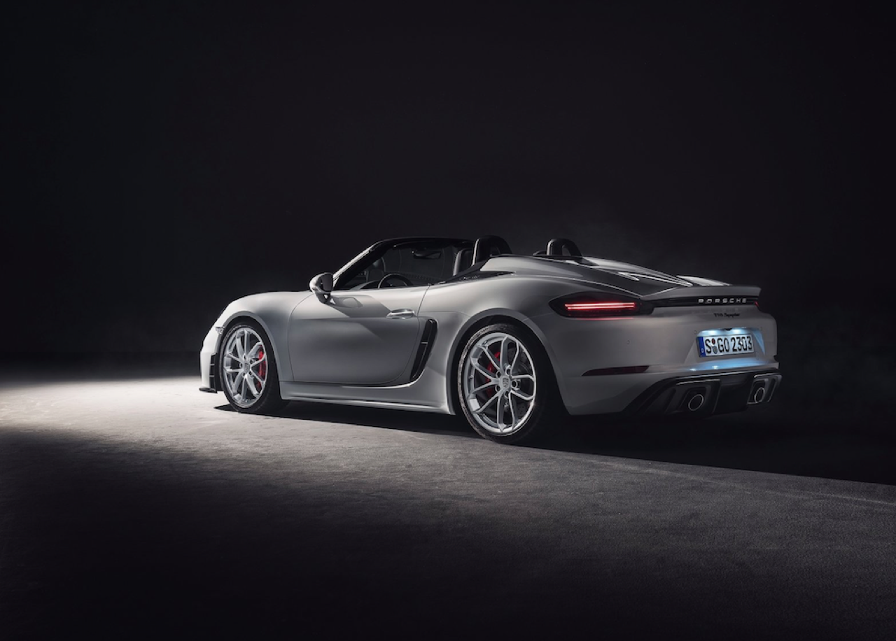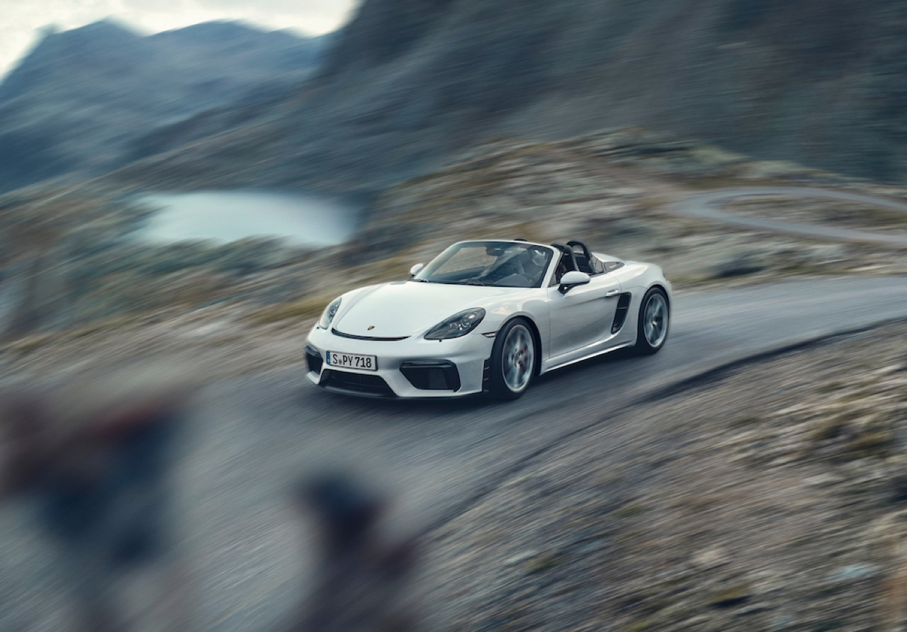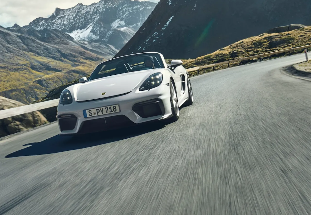 The new Porsche 718 Spyder ถือกำเนิดขึ้นในฐานะยานยนต์สปอร์ตประสิทธิภาพสูงที่เน้น สมรรถนะการขับขี่ มาพร้อมหลังคาประทุนน้ำหนักเบาที่ใช้งานได้จริงในความเร็วสูง เป็นตำนานสานต่อจากรถสปอร์ตโรดสเตอร์ที่สร้างชื่อเสียงไว้ในอดีต เช่น Porsche 550 Spyder และ Porsche 718 RS 60 Spyder หลังคาประทุนได้รับการออกแบบให้เหมาะกับการใช้งานประจำวัน สามารถพับเก็บลงภายใต้ฝากระโปรงท้ายด้วยการทำงานที่รวดเร็ว จุดสังเกตของ 718 Spyder ที่มีความแตกต่างจากรุ่น จีที 4 (GT4) คือสปอยเลอร์หลังแบบอัตโนมัติ ทำงานที่ความเร็ว 120 กิโลเมตรต่อชั่วโมง และเมื่อทำหน้าที่ร่วมกับดิฟฟิวเซอร์ จะมีศักยภาพด้านอากาศพลศาสตร์โดยจะสร้างแรงกดบริเวณท้ายรถได้สูงอย่างเหลือเชื่อ