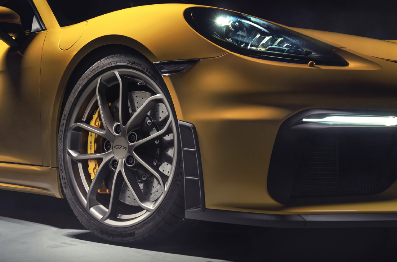 ระบบเบรกสมรรถนะสูงประจำการลงใน 718 Spyder และ 718 Cayman GT4 ให้ประสิทธิภาพและพละกำลังในการลดความเร็วที่ยอดเยี่ยม เหมาะกับการใช้งานทั้งการขับขี่บนถนนสาธารณะ หรือแม้แต่ในสนามแข่งความเร็วสูง จากการทำงานของชุดเบรก aluminium monobloc fixed-calliper นอกจากนี้ ยังสามารถสั่งติดตั้งระบบเบรกเซรามิก Porsche Ceramic Composite Brake (PCCB) เป็นอุปกรณ์พิเศษเพิ่มเติมได้ตามต้องการ