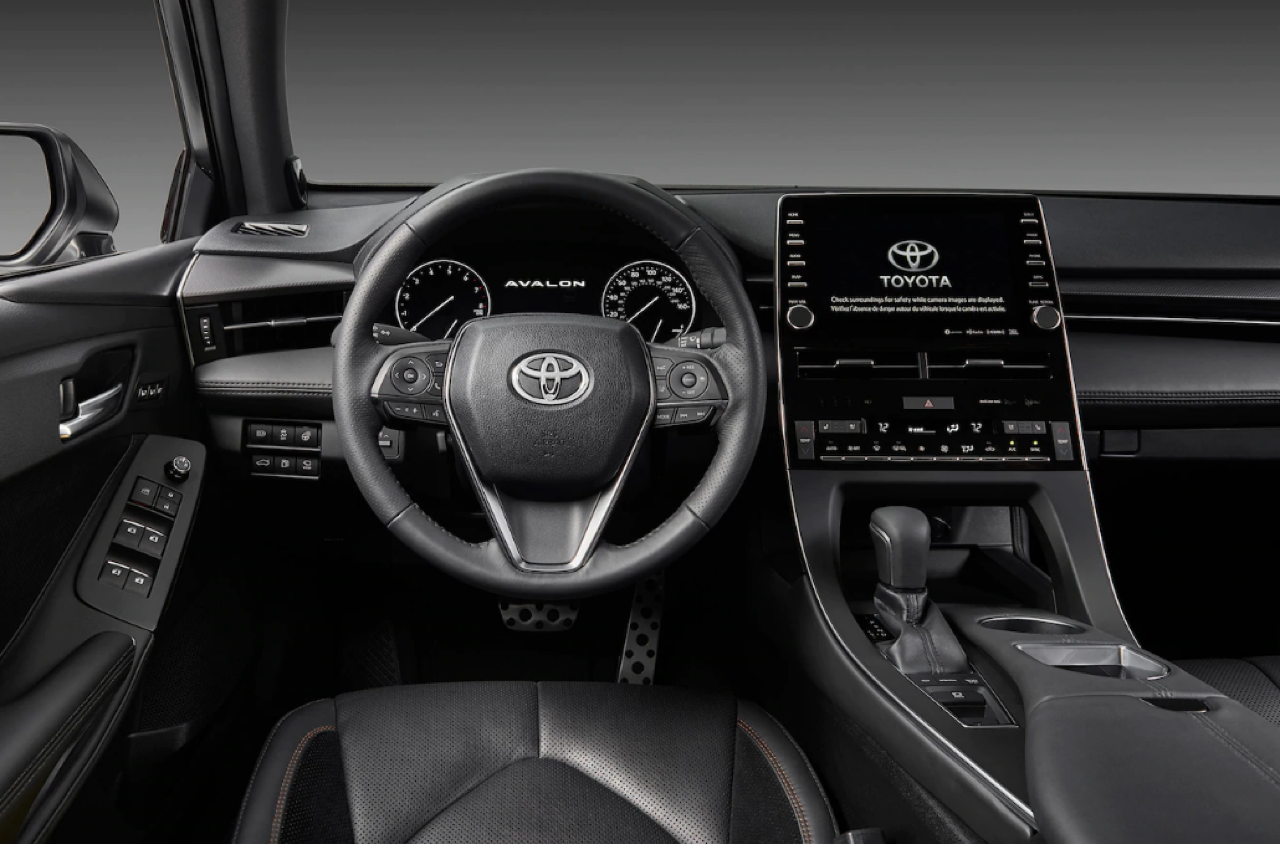 ห้องโดยสารของ Toyota Avalon มีการปรับปรุงให้แตกต่างจาก Toyota Camry ทั้งความหรูหรา การจัดวางตำแหน่งของอุปกรณ์และวัสดุที่ส่งถ่ายความมีระดับให้กับคนขับและผู้โดยสาร Avalon มีออปชั่นซึ่งเป็นทางเลือกสำหรับลูกค้าที่สามารถเลือกโทนสีภายในได้หลายรูปแบบ หนัง Perforated Ultrasuede และ Softex โทนสีเทา ขาว ดำ น้ำตาลสลับดำหรือแม้แต่สีแดง ลายไม้มีทั้งแบบปลอมหรือลายไม้แท้ๆ งานคิ้วอะลูมิเนียม พวงมาลัย Multi-function 3 ก้าน ตกแต่งด้วยสีเงิน Satin