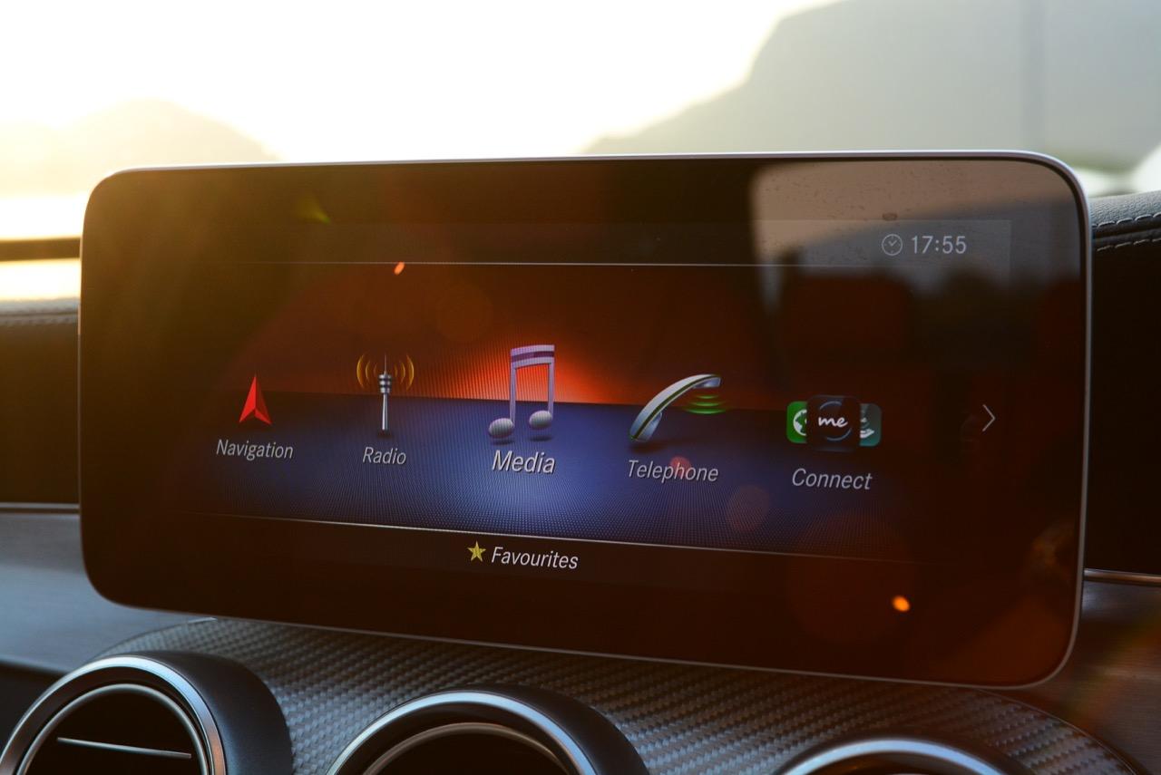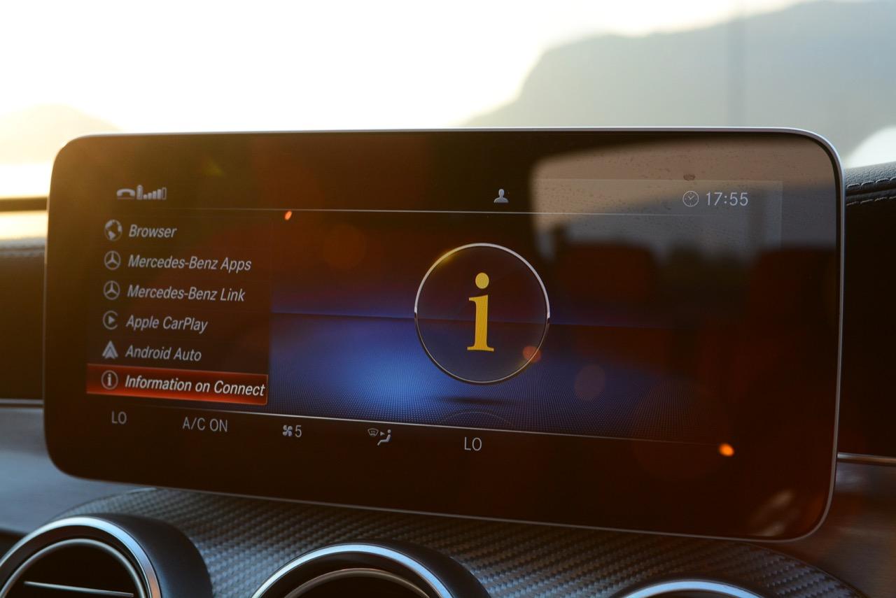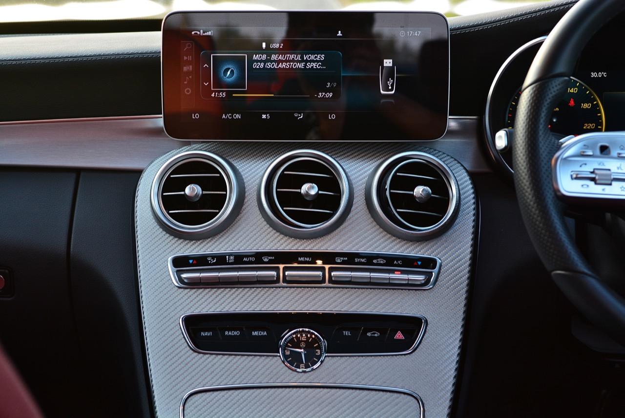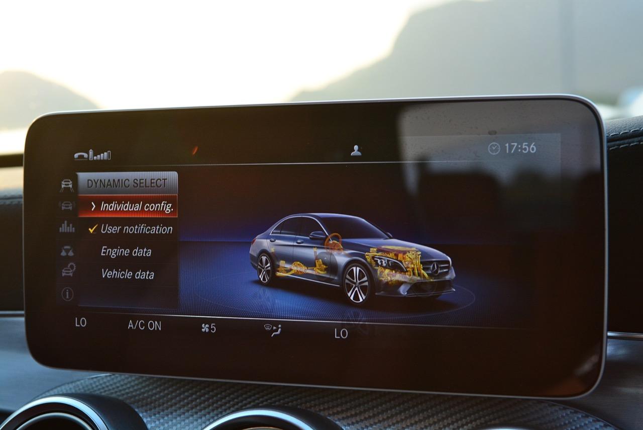 Mercedes-Benz C 300 e มีหน้าจอมัลติมีเดียแบบใหม่บริเวณกลางคอนโซล หน้าจอ MB Audio 20 ขนาด 10.25 นิ้ว ใช้ควบคุมระบบต่างๆ ด้วยระบบ Touch pad เช่น ระบบ Apple CarPlay™ ระบบถอยจอดแบบอัตโนมัติ หรือระบบแผนที่นำทาง 3 มิติรูปแบบใหม่ในรุ่น C 300 e AMG Dynamic ระบบไฟสร้างบรรยากาศในห้องโดยสาร ปรับเปลี่ยนสีของหลอด LED ที่ตกแต่งในห้องโดยสารมากถึง 64 สี รุ่น C 300 e AMG Dynamic นำเทคโนโลยีและรูปแบบการใช้งานมาจากรถยนต์ The S-Class โดยมีระบบ All-Digital instrument display หน้าจอเรือนไมล์แบบดิจิทัลขนาด 12.3 นิ้ว ที่สามารถปรับรูปแบบการแสดงผลได้ 3 รูปแบบ คือ Classic Sporty และ Progressive