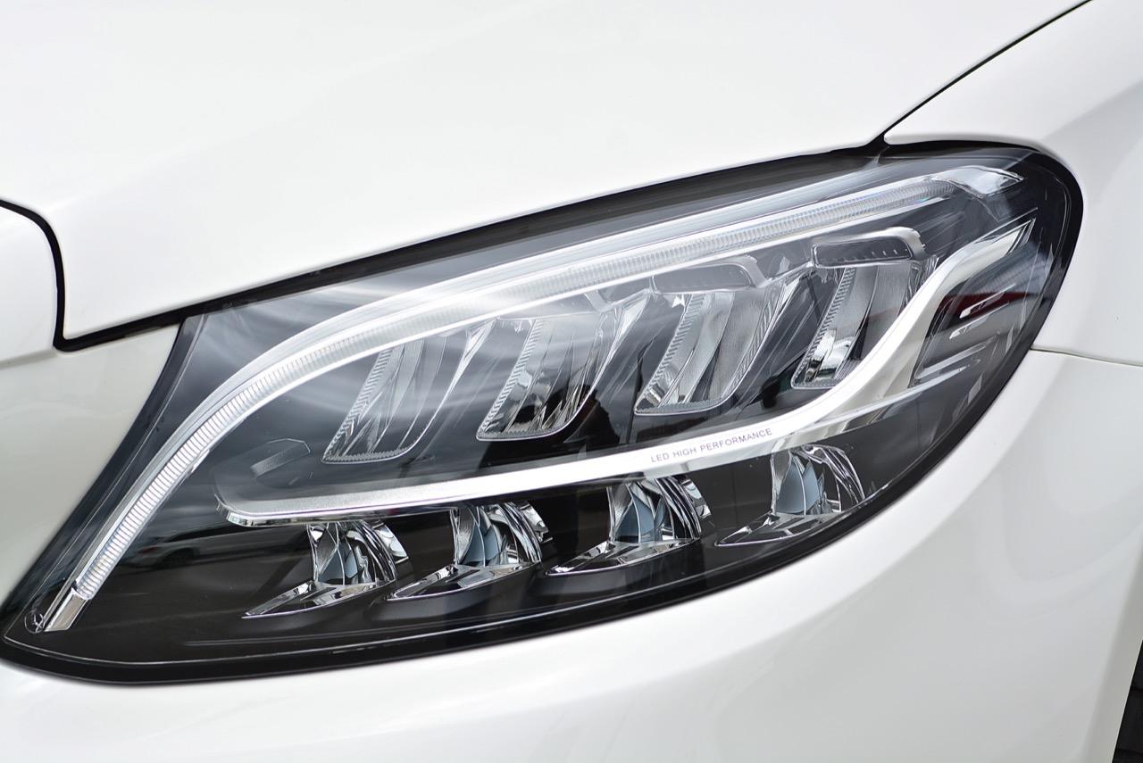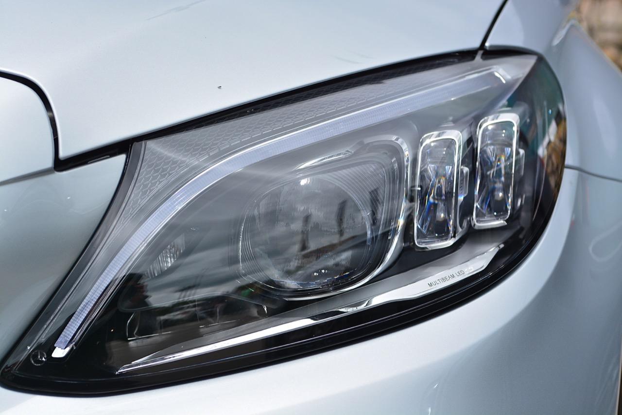 เทคโนโลยีไฟหน้าแบบ MULTIBEAM LED ในรุ่น C 300 e AMG Dynamic พร้อมระบบไฟสูงแบบ ULTRA RANGE Highbeam ซึ่งประกอบด้วยหลอดไฟ LED ที่ทำงานโดยอิสระจำนวน 84 หลอดต่อโคมไฟหน้า 1 โคม ที่สามารถทำงานได้อย่างรวดเร็วและแม่นยำ อีกทั้งยังสามารถปรับความเข้มแสง โดยใช้ระบบไฟหน้าให้เข้ากับสภาพการจราจรโดยรอบ ระบบไฟหน้า MULTIBEAM LED มีคุณสมบัติพิเศษ เหนือกว่าระบบไฟหน้า LED มาตรฐาน (ใช้หลอดไฟ LED 19 หลอดต่อโคมไฟหน้า 1 โคม) เช่น ระบบไฟส่องสว่างขณะขับผ่านสี่แยกหรือวงเวียน ระบบไฟส่องสว่างสำหรับการขับขี่ในเมือง และระบบไฟส่องสว่างสำหรับสภาวะอากาศเลวร้าย