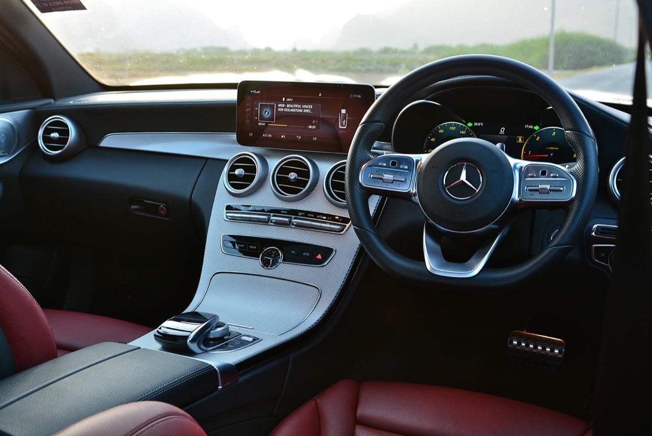 ห้องโดยสารสไตล์สปอร์ตของ C-Class Minorchange ออกแบบแดชบอร์ดและคอนโซลด้วยโครงสร้างที่ดูต่อเนื่องเป็นชิ้นเดียว รุ่น C 300 e Avantgarde มาพร้อมกับพวงมาลัยมัลติฟังก์ชั่น ปุ่มควบคุมแบบ Touch Control ในขณะที่ C 300 e AMG Dynamic ติดตั้งพวงมาลัยระบบมัลติฟังก์ชั่น แบบสปอร์ตฐานตัด ปุ่มควบคุมแบบ Touch Control รุ่น C 300 e Avantgarde ใช้เบาะหุ้มด้วยหนัง ARTICO ส่วน C 300 e AMG Dynamic ใช้เบาะหุ้มหนังแบบสปอร์ต และมาพร้อมกับ Memory Seat Package โดยทั้ง 2 รุ่น มาพร้อมกับระบบกุญแจแบบ KEYLESS-START ในขณะที่รุ่น C 300 e AMG Dynamic มีระบบกุญแจแบบ KEYLESS-GO เสริมเข้ามาด้วย