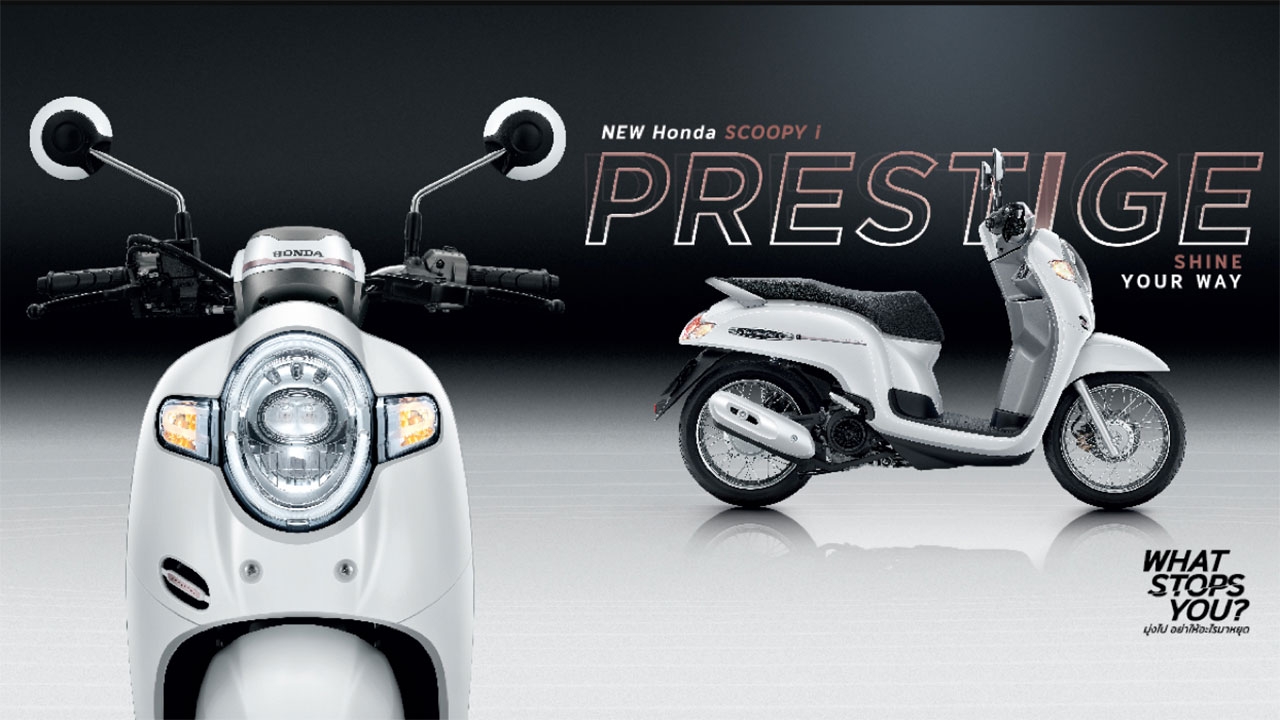 คอนเซปต์ What Stops You? ฮอนด้ามีความตั้งใจที่จะส่งมอบความสนุกด้วยจักรยานยนต์ สกู๊ปปี้ไอโฉมใหม่ ที่ได้รับการออกแบบให้มีดีไซน์สะดุดตา ทั้งรุ่นล้อ 12 นิ้ว คลับทเวลฟ์ เน้นความเป็นโมเดิร์นคลาสสิก ในขณะที่รุ่นสแตนดาร์ด 14 นิ้ว แบบเพรสทีจ คลาสสิกเรียบหรู และแบบเออร์เบิร์นทีม ผสมผสานสีสัน กราฟิกของทุกแบบได้รับการออกแบบใหม่ ในขณะที่รูปทรงและเครื่องยนต์ปรับปรุงเพื่อรองรับการใช้งานในเมือง