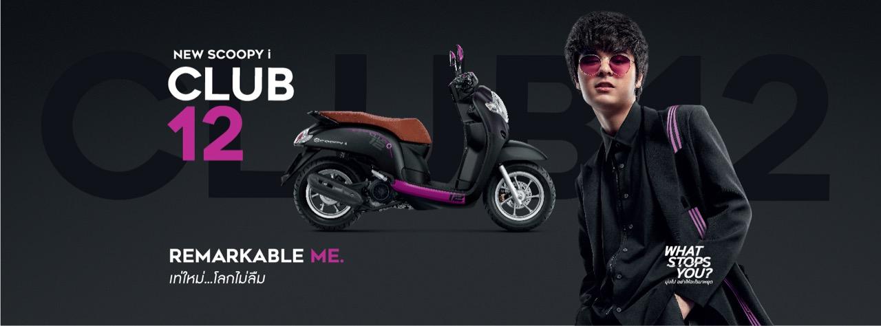 นิว ฮอนด้า สกู๊ปปี้ไอ รุ่นคลับทเวลฟ์ล้อ 12 นิ้ว ภายใต้คอนเซปต์ Remarkable-ME กราฟิกใหม่ทันสมัยด้วยเทคนิคการใช้สีแบบพิเศษให้อารมณ์ 2 สี ในมุมที่ต่างกัน (Special Flip Flop Color) ทั้งสีดำ-ชมพู สีขาว-แดง สีเทา-แดง และสีน้ำเงิน-ฟ้า ตามด้วยรุ่นล้อ 14 นิ้ว ได้แก่