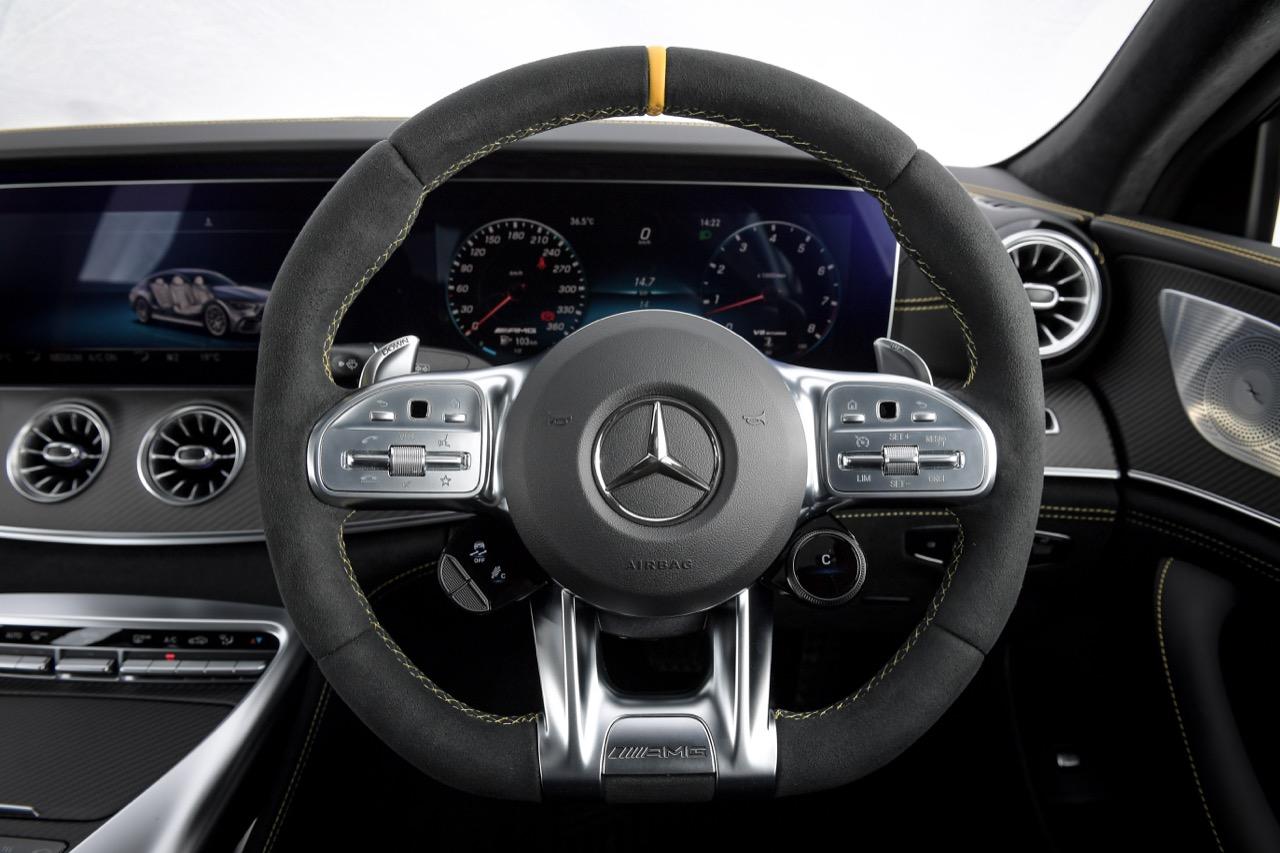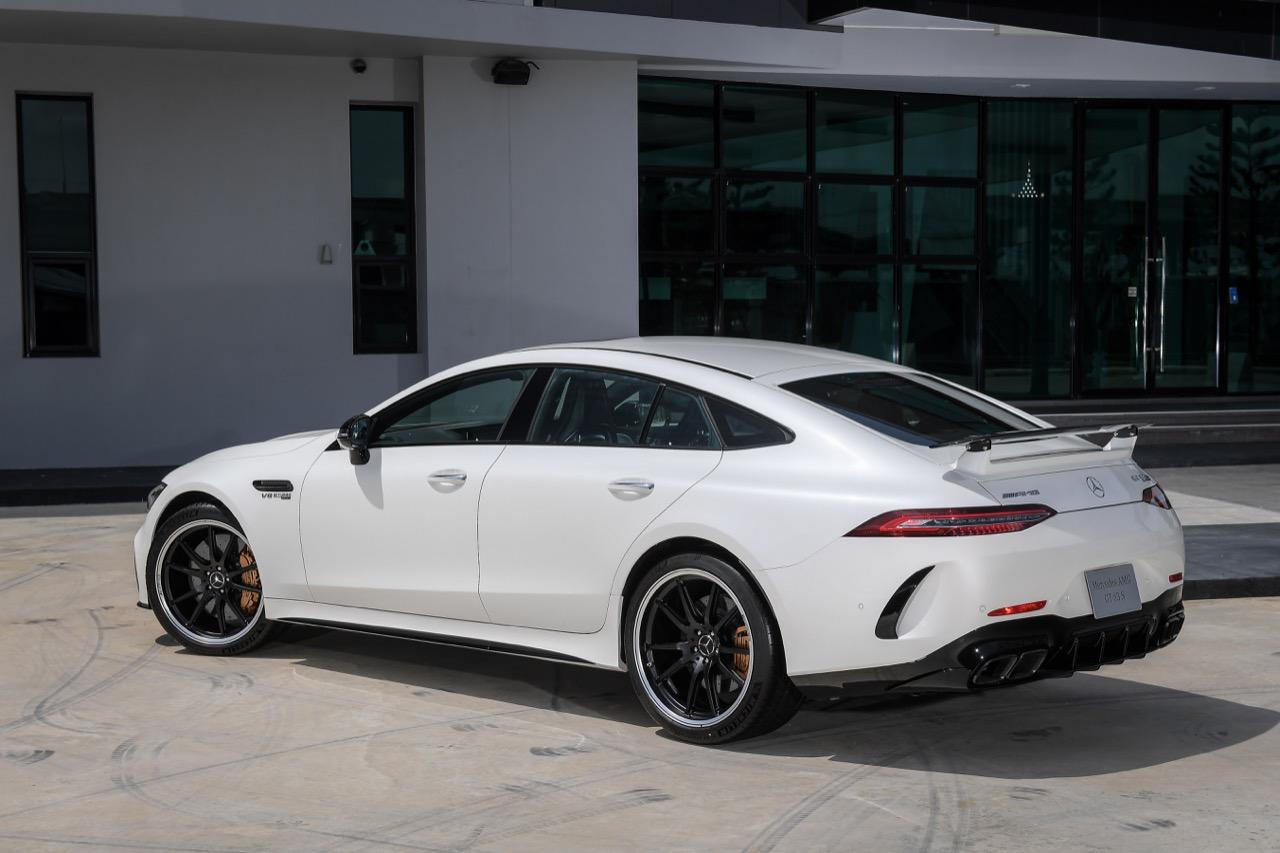 Mercedes-AMG GT 63 S 4MATIC+ 4-Door Coupé วางเครื่องยนต์เบนซินแบบ V8 BITURBO กำลังสูงสุด 639 แรงม้า ระบบควบคุมการเลี้ยวด้วยล้อหลัง (AMG Rear Axle Steering) AMG DYNAMIC PLUS package ยางรองแท่นเครื่องยนต์และที่ยึดเกียร์แบบไดนามิก ระบบกันสะเทือนแบบสปอร์ตที่ปรับตั้งใหม่จากโรงงาน ปรับได้ 3 ระดับตามสไตล์การขับขี่และสภาพถนน, ระบบ AMG DYNAMIC SELECT 3 โหมด คือ Sport, Sport+ และ Individual, ระบบปรับไฟสูงอัตโนมัติ (Adaptive Highbeam Assist Plus), ระบบ Active Braking Assist กุญแจ KEYLESS-GO ระบบช่วยจอดอัตโนมัติ (Active Parking Assist) พร้อมกล้องมองรอบทิศทาง 360 องศา