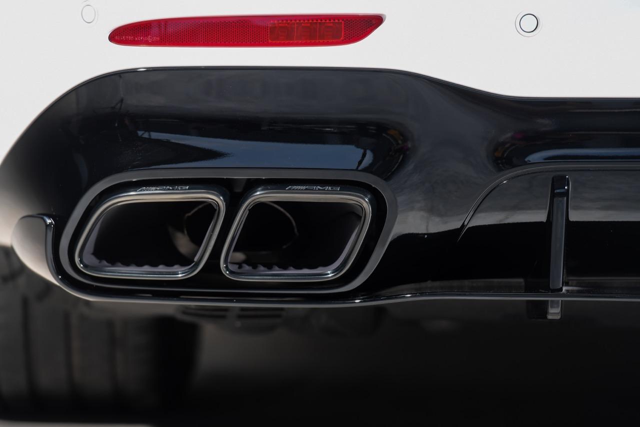 เสริมสปอยเลอร์หลังใหญ่ขึ้นเพื่อรองรับการขับในสนามแข่งที่มีช่องทางวิ่งกว้าง, ล้อหลังถูกปรับให้ใหญ่ขึ้นเพื่อรองรับเทคโนโลยีการส่งกำลังและระบบควบคุมการทรงตัวที่เพลาหลัง เพิ่มประสิทธิภาพขณะเข้าโค้ง ปรับแต่งใหม่เพื่อการยึดเกาะที่ดีขึ้น กระจังหน้าแบบ AMG-specific radiator trim AMG วัสดุบังคับลมชุบโครเมี่ยม 15 ซี่ เหมือนกับรถแข่งรุ่น Mercedes-AMG GT 3 ฝากระโปรงหน้ายาวออกแบบเพื่อทำให้รถแบนและเตี้ย ช่องรับอากาศขนาดใหญ่ปล่อยอากาศไหลผ่านเข้าสู่ระบบเทอร์โบชาร์จเจอร์เพื่อระบายความร้อน ช่องรับอากาศเปิดหรือปิดแบบอัตโนมัติตามความเร็วของรถที่ผู้ขับกำหนดเอง หลังคาผ้าใบแบบ 3 ชั้น ใช้วัสดุที่ให้ผิวสัมผัสนุ่ม ป้องกันเสียงแปลกปลอมจากภายนอก โครงสร้างเป็นโลหะผสมแมกนีเซียมและอะลูมิเนียมที่มีน้ำหนักเบา กางเปิดหรือเลื่อนปิดได้อัตโนมัติใน 11 วินาที สามมารถเปิดใช้งานขณะวิ่งที่ความเร็วไม่เกิน 50 กิโลเมตรต่อชั่วโมง