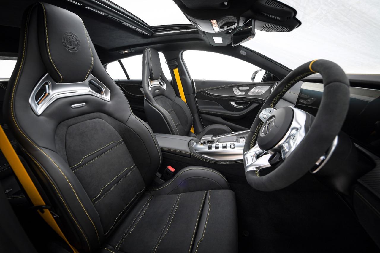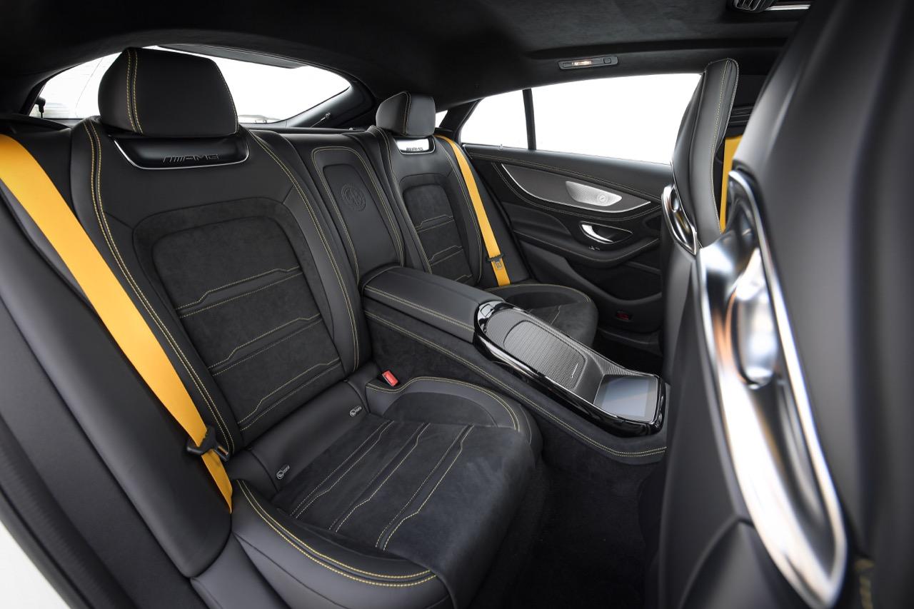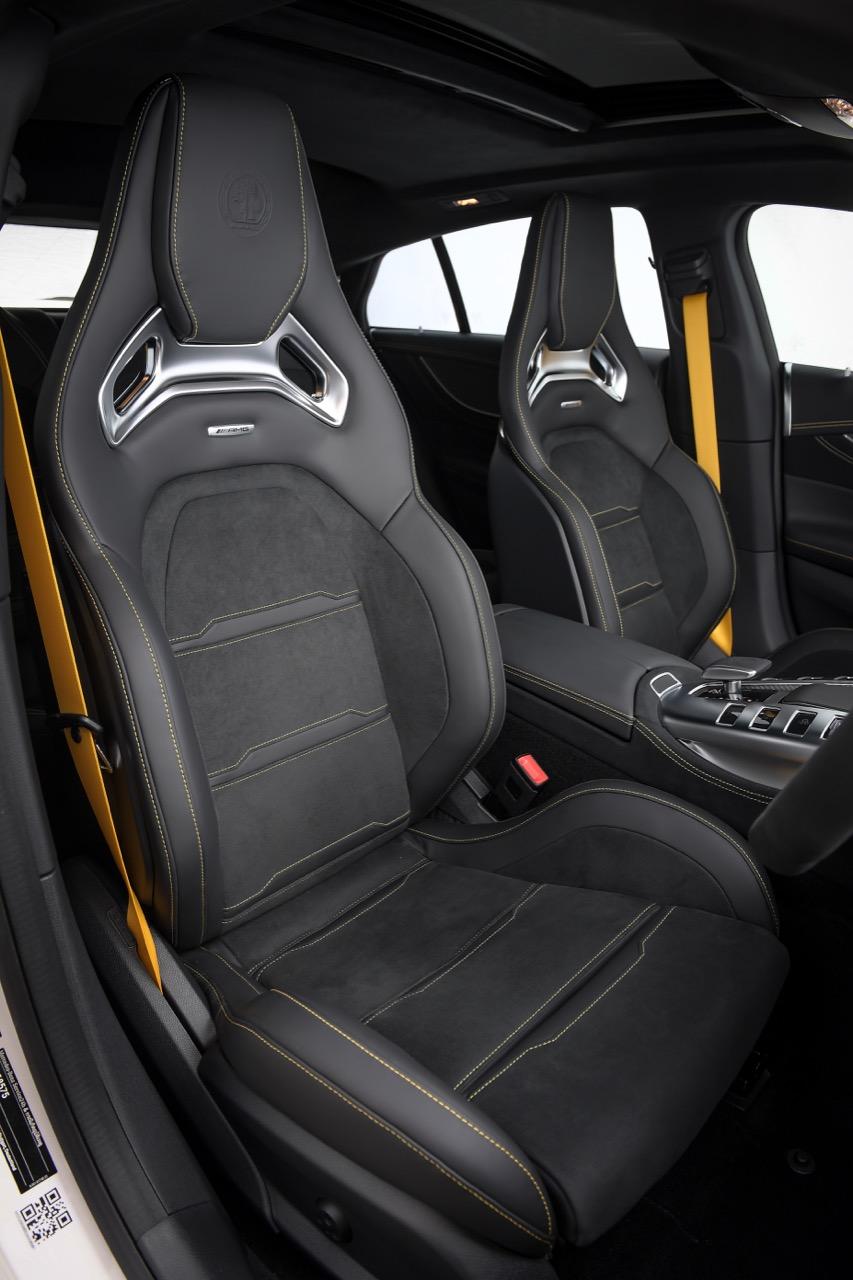 Mercedes-AMG GT 63 S 4MATIC+ 4-Door Coupé ติดตั้งเบาะที่นั่งด้านหน้าแบบ AMG Performance seats สามารถปรับให้กระชับกับสรีระ เบาะหลังตกแต่งด้วยหนังไฮ-คลาส พร้อมแยกตำแหน่งที่นั่งออกจากกันคล้ายเบาะของเครื่องบินโดยสารชั้นธุรกิจ