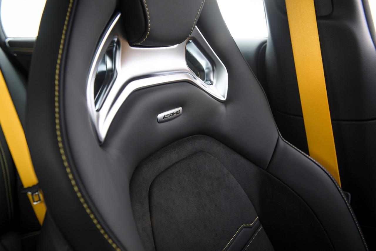 ดีไซน์ภายใน ติดตั้งเบาะแบบสปอร์ตหุ้มหนัง Nappa ตัวเบาะออกแบบให้โอบล้อมผู้ขับคล้ายเบาะนั่งของรถแข่ง พวงมาลัย AMG performance หุ้มหนัง Nappa และเส้นใย DINAMICA Microfibre หน้าจอแสดงผลบนพวงมาลัยจำนวน 2 หน้าจอแบบ AMG steering wheel buttons มาตรวัดเรือนไมล์แบบจอภาพ all-digital instrument display ขนาด 12.3 นิ้ว ออฟชันพิเศษ ชุดเบาะเสริม AMGperformance seats สามารถปกป้องร่างกายของผู้ขับขี่และผู้โดยสารทั้งด้านหน้าและด้านหลัง พนักพิงหลังที่มีความโค้ง เสริมด้วยวัสดุเพื่อความนุ่มสบายบริเวณด้านข้างมากกว่าเบาะที่นั่งแบบมาตรฐาน แผงหน้าปัดดีไซน์ใหม่ ใช้อัตราส่วน 16:9 ขนาด 10.15 นิ้ว ทำงานด้วยระบบปฏิบัติการ COMAND Online แผงควบคุมกลางติดตั้งจอแสดงผลมากถึง 8 จอบริเวณคอนโซลกลางแบบ AMG DRIVE UNIT ที่ออกแบบตามลักษณะเครื่องยนต์แบบ V8 ทำให้ทั้งผู้ขับขี่และผู้โดยสารรู้สึกราวกับถูกโอบล้อมด้วยปีกนก ห้องโดยสารที่สามารถเปลี่ยนสีได้ 64 เฉดสี