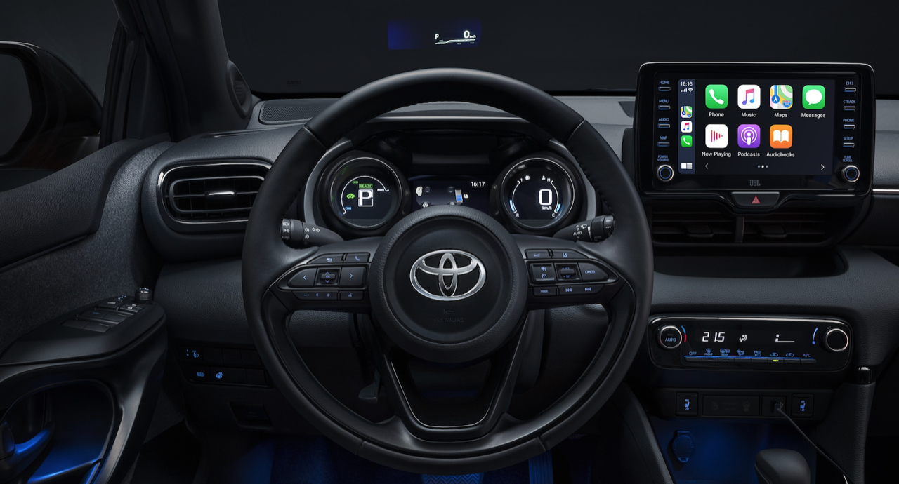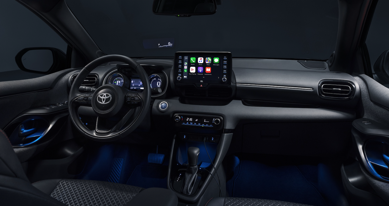 อุปกรณ์มาตรฐานของ Yaris ทุกรุ่นก็คือ Display Audio หน้าจอ Infotainment Display ตั้งโด่เด่เหมือน New Corolla พร้อมจอภาพแสดงข้อมูลตัวเลขความเร็วตรงหน้าคนขับซึ่งยิงสะท้อนกระจกหน้าหรือที่เรียกกันว่า Head-up Display ระบบให้ความบันเทิงเชื่อมต่อ Apple Carplay กับช่องจอมเสียบชาร์จ USB เบาะหุ้มผ้าหรือหนังสังเคราะห์ เบาะหลังมีพื้นที่พอเพียง แต่ไม่เหมาะกับคนที่มีหุ่นเหมือนแมวอนาคตโดราเอมอน มาตรวัดแบบ TFT ที่ดูดีกว่า New Corolla ระบบปรับอากาศแบบดิจิทัลไม่แยกโซน พวงมาลัยมัลติฟังก์ชั่น พร้อมความเรียบง่ายของอุปกรณ์ภายในตามแบบฉบับของรถเล็กราคาไม่แพง มาครบจบที่ไม่มีขายในไทยครับพี่น้อง!
