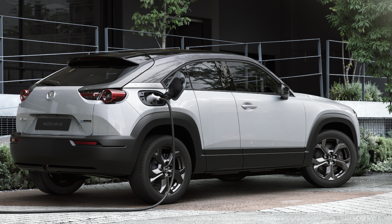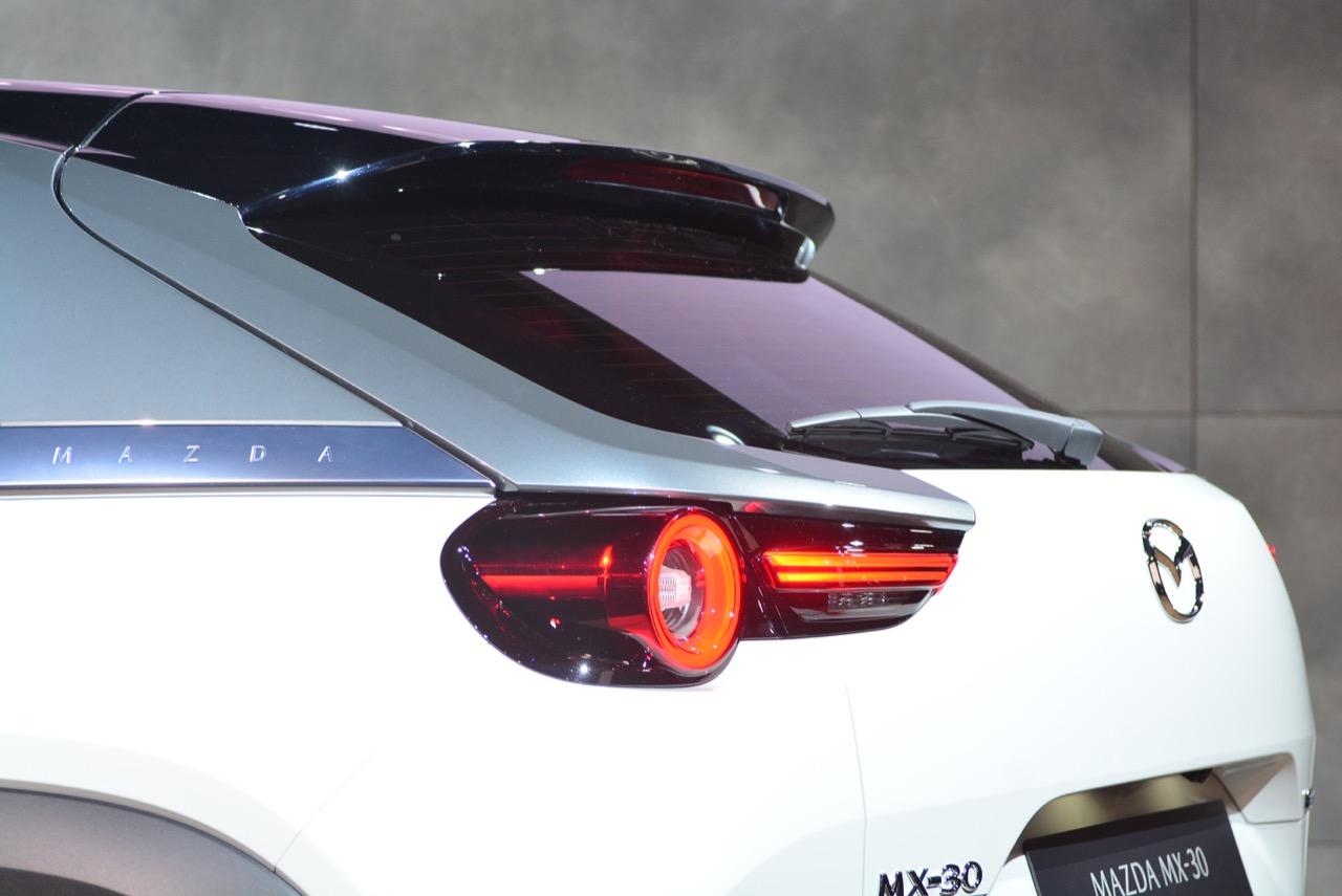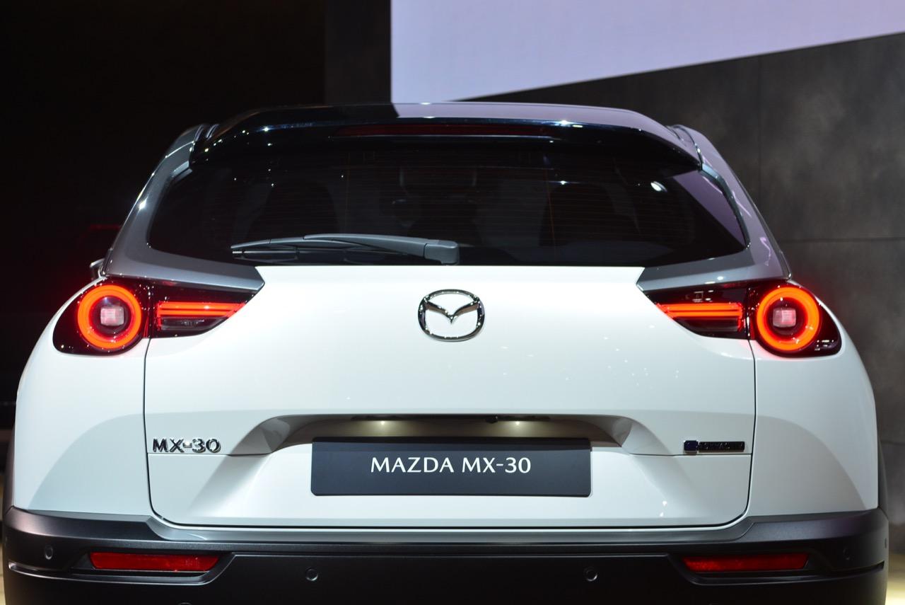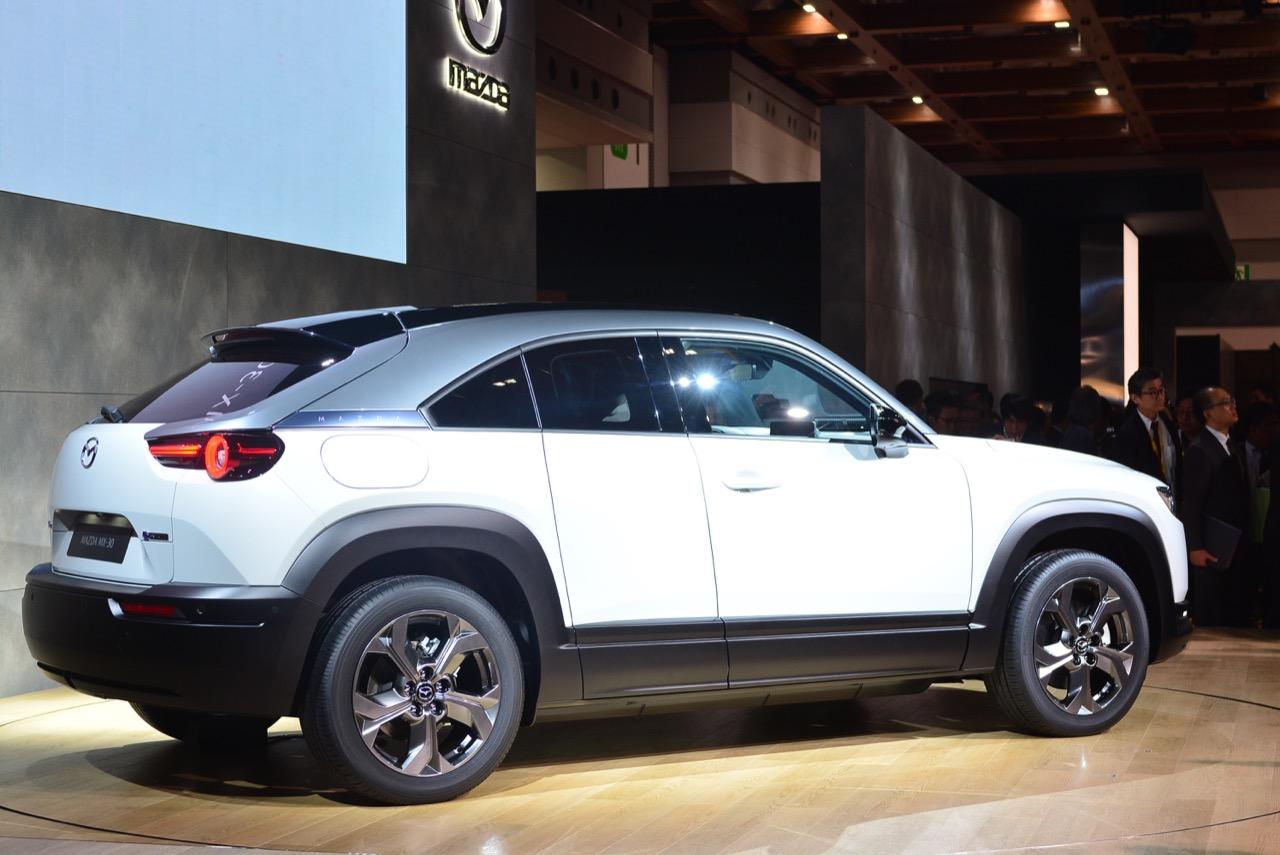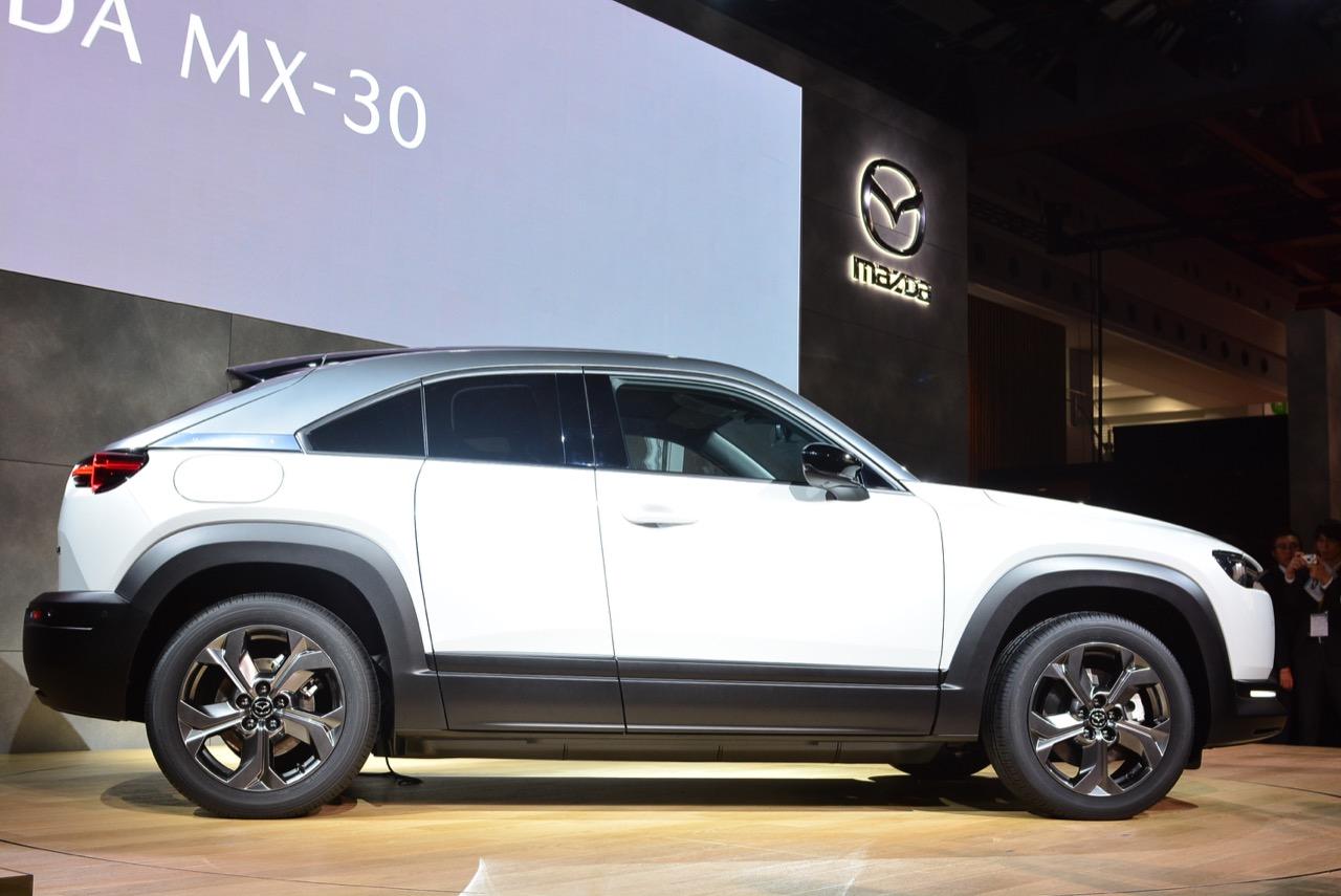 MX-30 ยานยนต์พลังงานไฟฟ้ารุ่นใหม่ล่าสุดของ Mazda ถูกนำมาเปิดตัวในงานโตเกียวมอเตอร์โชว์ 2019 เป็นรถยนต์ไฟฟ้า EV เต็มรูปแบบที่มีการผลิตออกขายและเปิดให้สั่งจองแล้วในยุโรปบางประเทศ CX-30 ออกแบบบานประตูคล้าย Mazda RX-8 ซึ่งใช้ประตูแบบตู้กับข้าวเปิดออกได้ด้วยมุมที่กว้างมากกว่าปกติ เพื่อเปิดพื้นที่ในการเข้าหรือออกจากห้องโดยสาร