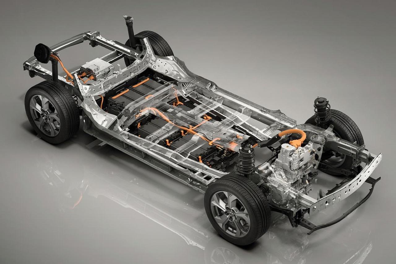 e-SKYACTIV เทคโนโลยีระบบขับเคลื่อนของ Mazda MX-30 ประกอบไปด้วยแบตเตอรี่ Lithium-ion เซลล์ Prismatic แรงดันไฟฟ้า 355V ความจุ 35.5 kWh มอเตอร์ไฟฟ้าขับเคลื่อนล้อหน้า โดยยังไม่มีการเปิดเผยกำลังของมอเตอร์ไฟฟ้า รวมถึงระยะทางที่สามารถวิ่งถึงในการชาร์จแบตฯ