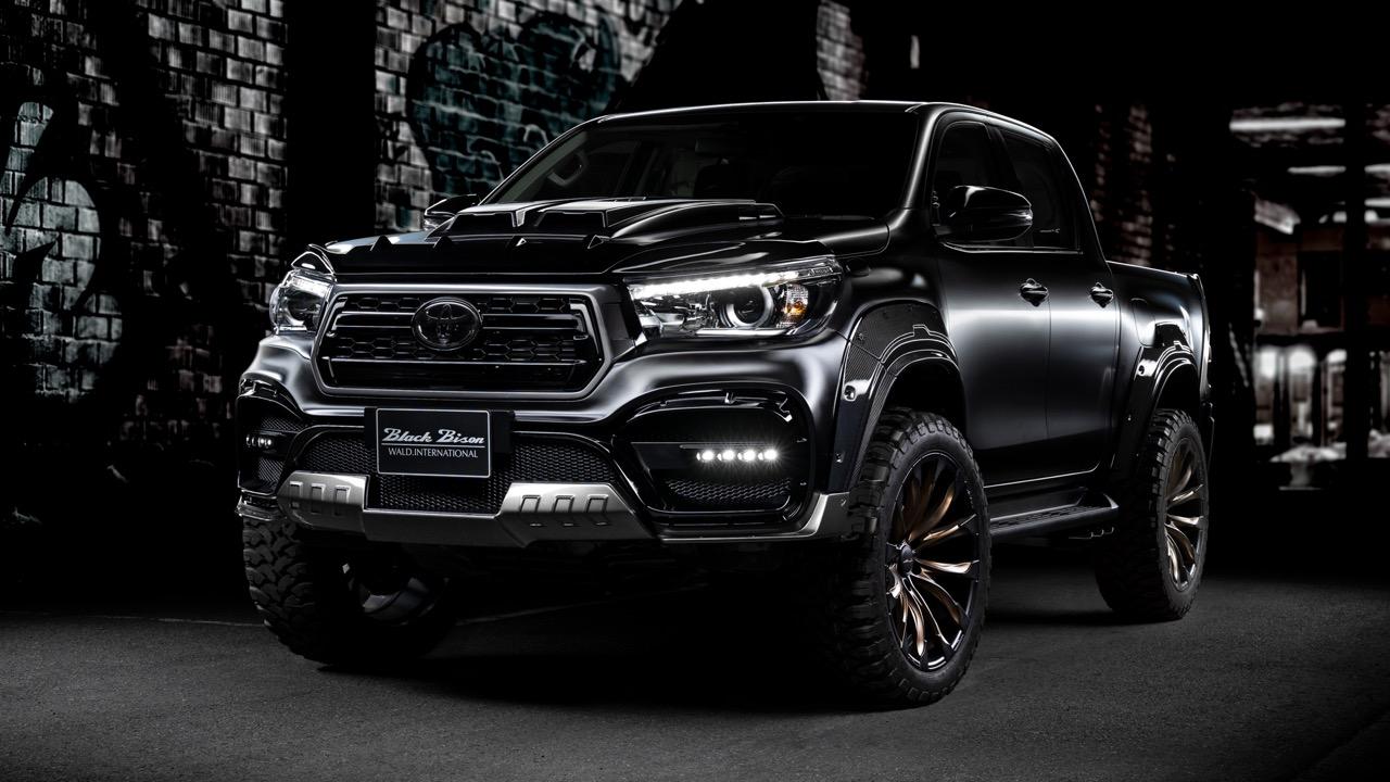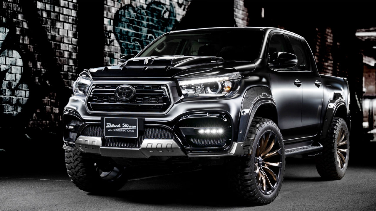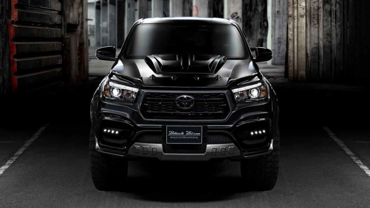 Hilux Double Cab ตกแต่งด้วยอุปกรณ์พิเศษจากสำนักแต่ง Wald International ถูกตั้งชื่อว่า Sports Line Black Bison Edition แพคเกจประกอบด้วยกันชนใหม่ (ด้านหน้าและด้านหลัง), ไฟ LED Daytime running lights แบบพิเศษ, กันชนหน้าที่ดุสุดเพิ่มความหนาให้ดูบึกบึนและเต็มไปด้วยมิติของรายละเอียด บังโคลนหน้า ถูกประกบด้วยโป่งซุ้มล้อ เพิ่มความกว้างยื่นออกมาอีก 55 มม. ในแต่ละด้าน เป็นโป่งข้างทำจากคาร์บอนไฟเบอร์โชว์ลาย ล้ออัลลอยลายใหม่แบบก้านถี่ ไฟตัดหมอก LED สคูปฝากระโปรงหน้าขนาดใหญ่ยักษ์ เพื่อนำเอาอากาศเข้าไประบายความร้อนให้กับอินเตอร์คูลเลอร์
