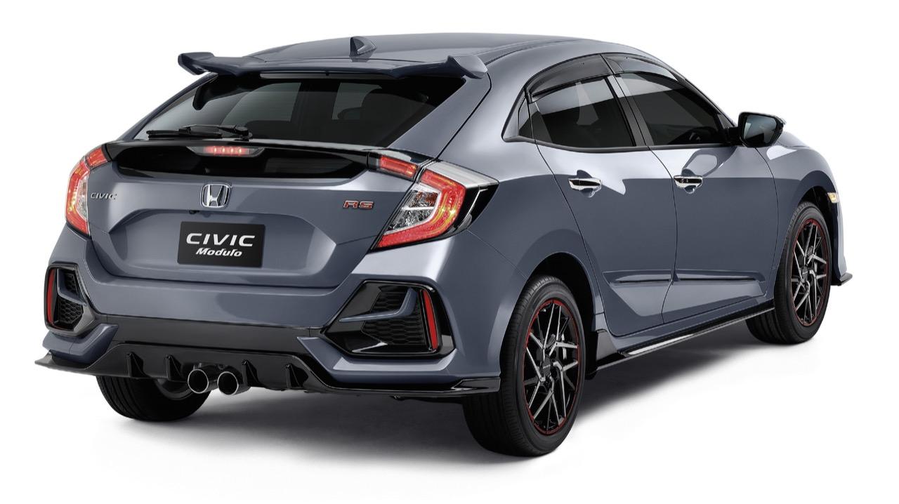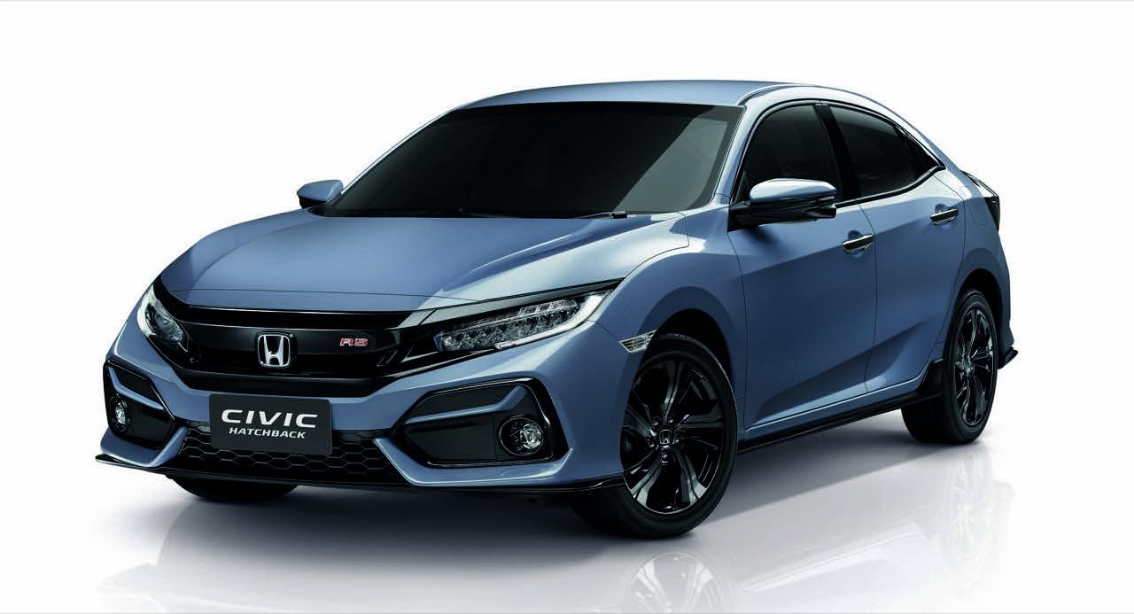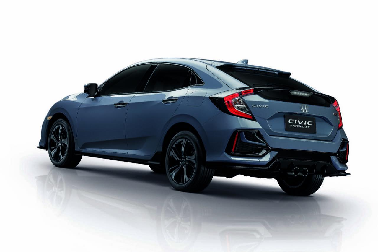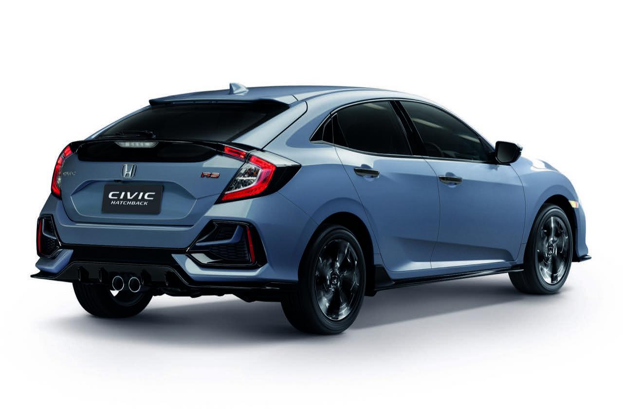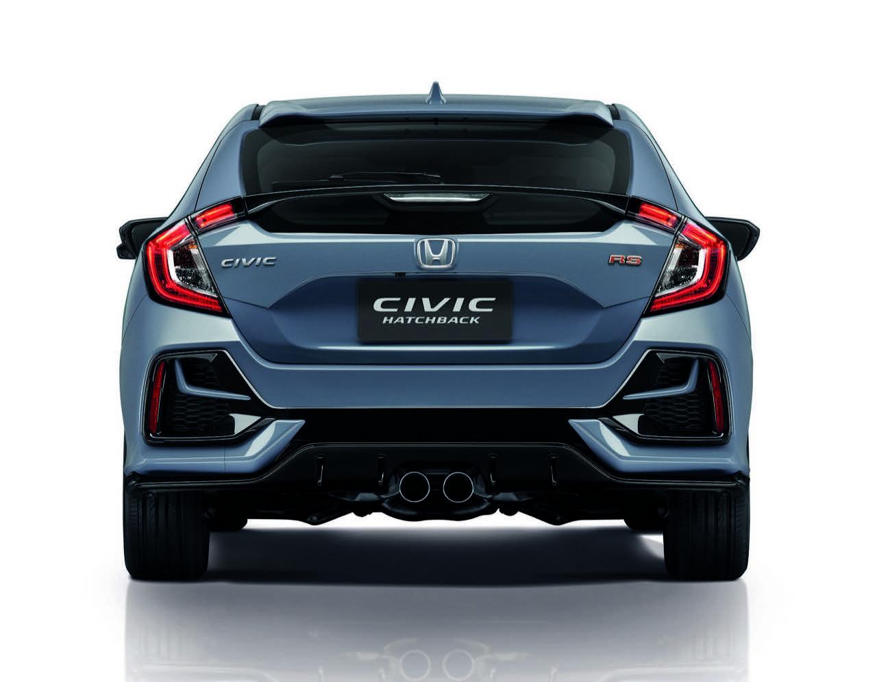 Honda Civic Hatchback รุ่นปรับโฉม ติดตั้งกันชนหน้า-หลังแบบใหม่ ไฟหน้าพร้อมไฟส่องสว่างสำหรับการขับขี่ในเวลากลางวัน LED Daytime running ชุดแต่ง RS รอบคัน ท่อไอเสียคู่ตรงกลาง ล้ออัลลอยลายใหม่ขนาด 17 นิ้ว ไฟท้ายรูปทรงตัว C แบบ LED