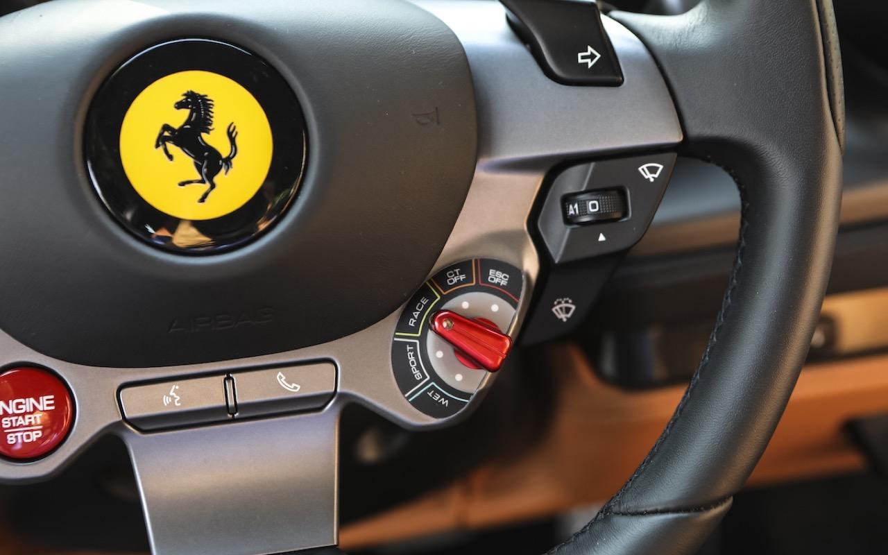 สปอยเลอร์โอบล้อมตลอดแนวไฟท้าย ช่วยลดจุดศูนย์ถ่วงของรถให้ต่ำลง ชุดไฟท้ายคู่นำเอารูปทรงย้อนยุคของรุ่น 308 GTB ปี 1975 ซึ่งเป็นหนึ่งในตำนานรถเครื่องยนต์ V8 อันเลื่องชื่อ มาปรับใช้ ห้องโดยสารยังคงความคลาสสิก ที่มุ่งเน้นรูปลักษณ์โดยรวมที่เป็นเอกลักษณ์ของเฟอร์รารี่เครื่องวางกลางด้านหลัง แต่ทุกองค์ประกอบของแดชบอร์ด, แผงประตู และคอนโซลกลาง ได้รับการออกแบบใหม่อย่างสมบูรณ์ ระบบ HMI รุ่นใหม่ (Human Machine Interface) มาพร้อมช่องแอร์แบบกลม, พวงมาลัยและตัวควบคุมแบบใหม่ รวมถึงหน้าจอสัมผัสขนาด 7 นิ้วสำหรับผู้โดยสาร ที่ช่วยให้ผู้นั่งสามารถเห็นค่าการทำงานต่างๆ ของรถได้เช่นเดียวกับผู้ขับ