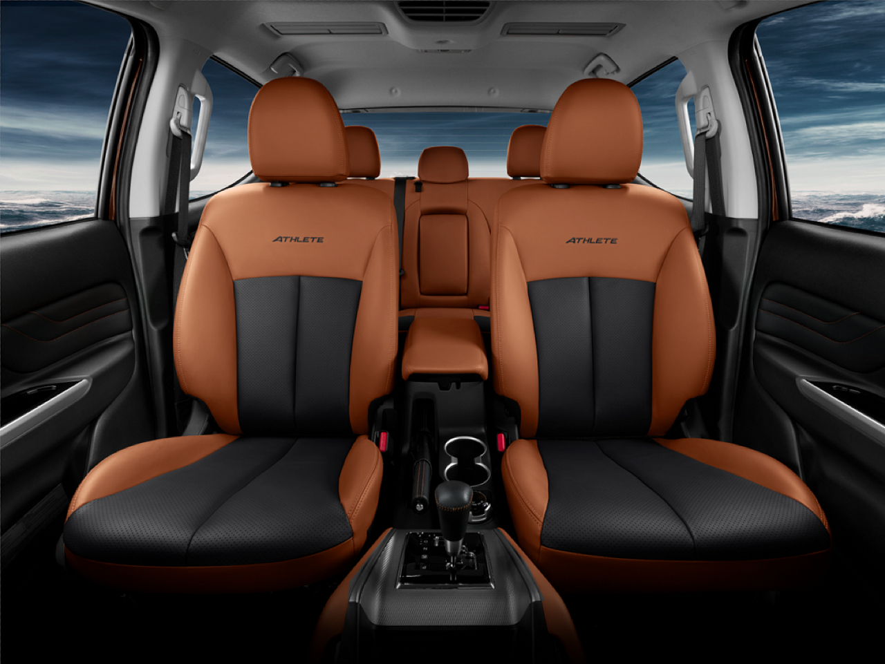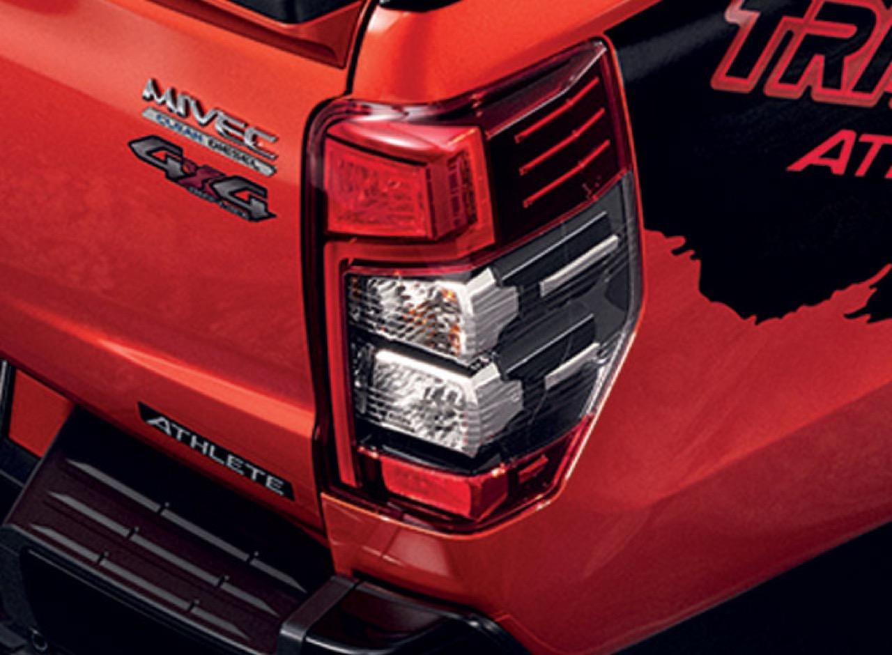 รูปลักษณ์ของ Triton รุ่น Athlete ตกแต่งด้วยอุปกรณ์เสริม ภายนอกและภายในที่เน้นความโฉบเฉี่ยว เป็นการกระตุ้นยอดขายที่จะเริ่มต้นขึ้นอีกครั้งในงานมอเตอร์เอ็กซ์โปช่วงปลายเดือนนี้ Mitsubishi Triton Athlete เน้นความคมเข้มด้วยสีดำ โดยติดตั้งชุดแต่งกันชนหน้าสีดำ กระจังหน้าสีดำพร้อมกรอบกันชนด้านหน้าสีดำ หลังคาสีดำ ล้ออัลลอยสีดำขนาด 18 นิ้ว ด้านหลังเปลี่ยนมือเปิดกระบะท้ายและกันชนหลังเป็นสีดำ พร้อมสัญลักษณ์ ‘ATHLETE’ บนฝากระบะท้าย ชุดปูพื้นกระบะ กรอบกระจกมองข้างและสไตลิ่งบาร์สีดำ กาบบันไดข้าง และสัญลักษณ์ ‘ATHLETE’ บนแถบกราฟิกข้างตัวรถ
