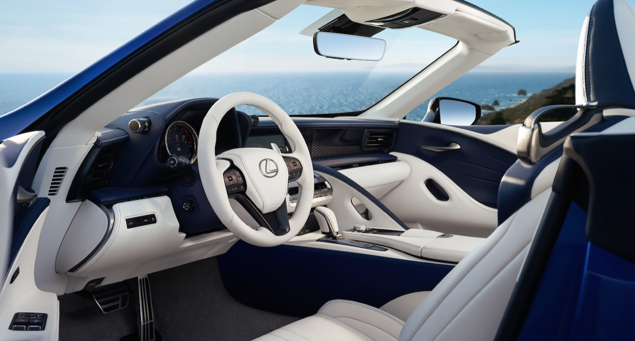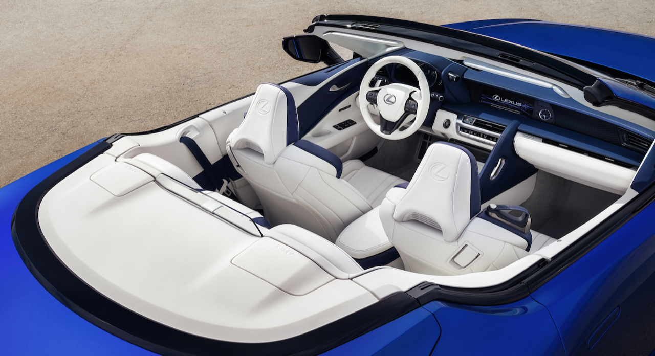 กลไกการพับอัตโนมัติจัดเก็บหลังคาลงที่ส่วนหน้าของฝาท้ายด้านบนอย่างเรียบร้อยภายใต้ฝาครอบ tonneau แบบบูรณาการ เป็นฝาครอบน้ำหนักเบาที่ปิดทับชุดหลังคาจนมองไม่เห็น LC500 ยังติดตั้งระบบอุ่นทำความร้อนที่เบาะรองคอสำหรับลูกค้าในญี่ปุ่นและสหรัฐอเมริกา เบาะนั่งยังติดตั้งระบบปรับอากาศที่สามารถเป่าลมเย็นในวันที่อากาศร้อนและเป่าลมอุ่นในวันที่มีหิมะตกอีกด้วย เป็นอีกจุดที่ Lexus พยายามรักษามาตรฐานของความสะดวกสบายบนความหรูหราของห้องโดยสาร
