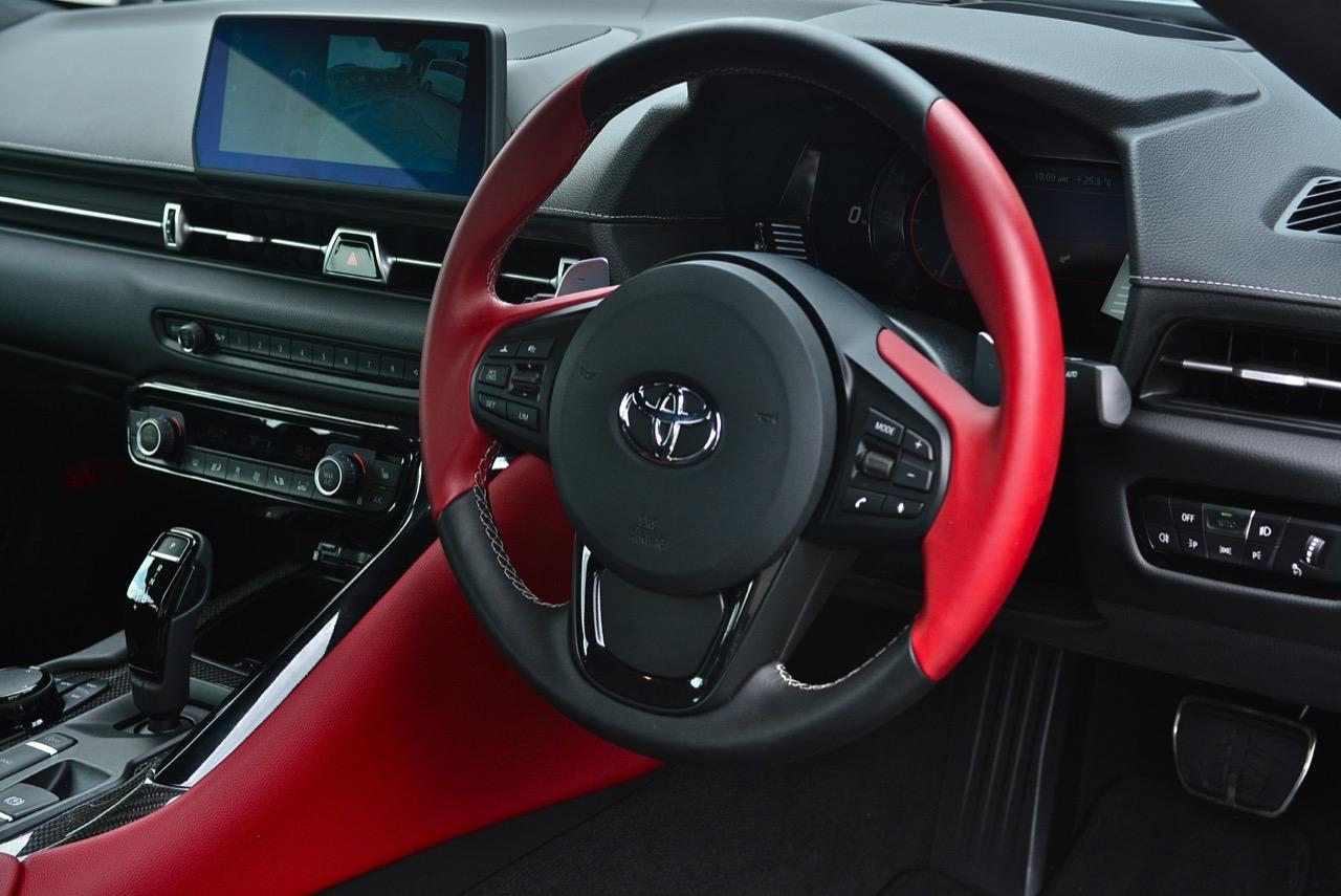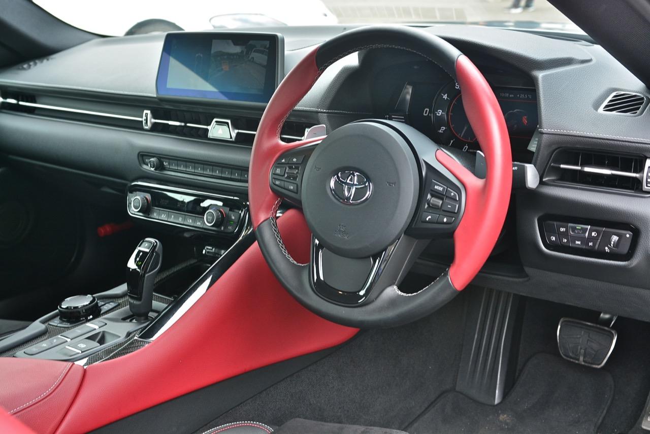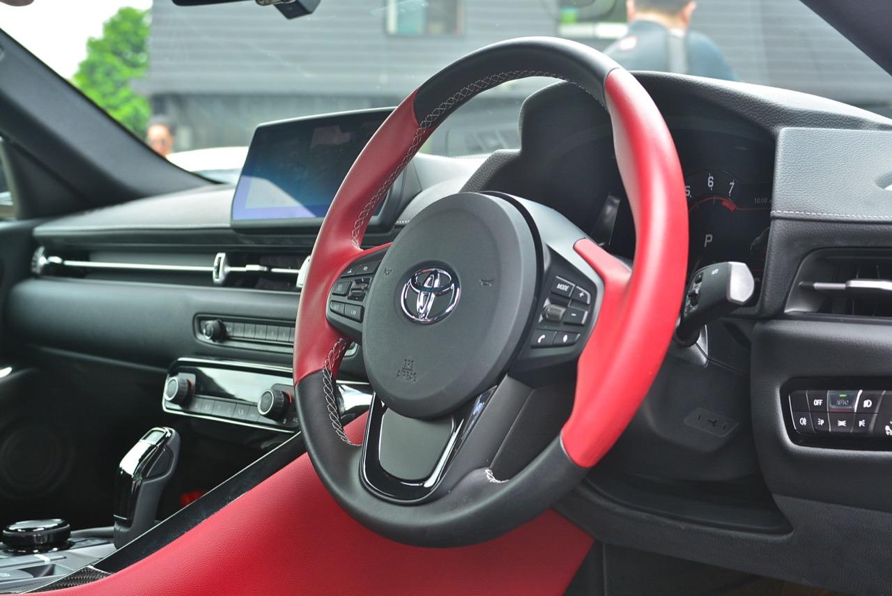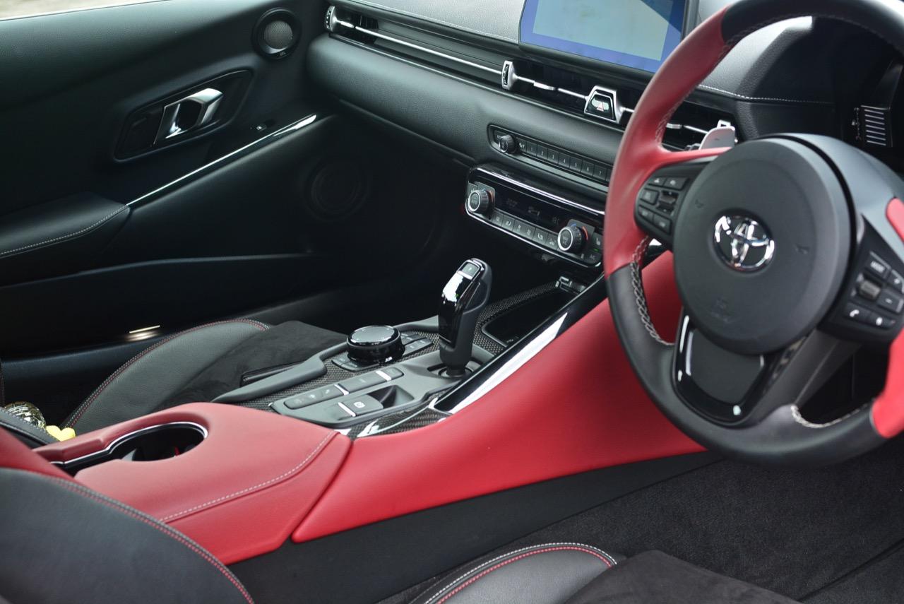 GR Supra เวอร์ชั่นผลิตขายจริงออกแบบมาเพื่อเอาใจผู้ขับเป็นหลัก ถึงขนาดยอมจัดเนื้อที่และคอนโซลเพื่อให้คนขับมีเนื้อที่สำหรับขยับตัวได้มากกว่าฝั่งคนนั่ง หลังคาทรง Double-bubble ก็แหวกพื้นที่ให้สามารถนั่งได้ถนัด แม้จะใส่หมวกกันน็อกขับก็ตาม ตำแหน่งท่านั่งขับเหมาะสม การตัดพื้นที่เบาะหลังออกไปให้เหลือแค่ 2 ที่นั่งกลายเป็นเรื่องที่ดีและถูกใจลูกค้าส่วนใหญ่ เบาะหลังที่คับแคบในรถสปอร์ตทั่วๆ ไปเหมาะกับการวางของกระจุกกระจิกมากกว่าจะเอาคนเข้าไปนั่ง