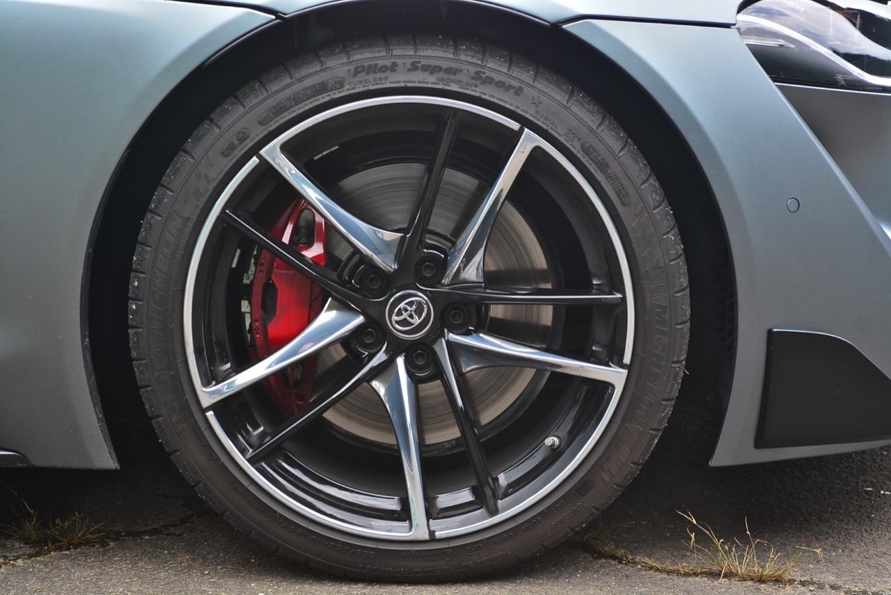 มิติตัวถังของ Toyota GR Supra มีความยาว 4,379 มิลลิเมตร กว้าง 1,854 มิลลิเมตร สูง 1,294 มิลลิเมตร ความยาวฐานล้อ 2,470 มิลลิเมตร ระยะห่างล้อหน้า-หลัง 1,600 มิลลิเมตร น้ำหนัก (รุ่น GR Sport) 1,495 กิโลกรัม ล้ออัลลอยขอบ 19 นิ้วที่แตกต่างจากล้อ M ของ Z4 M40i ยาง Pilot Super Sport ล้อหน้า 255/35ZR19 ล้อหลัง 275/35ZR19 ช่วงล่างด้านหน้าแมคเฟอร์สัน สตรัท ด้านหลังแบบดับเบิลวิชโบน เบรกหน้าใช้คาร์ลิปเปอร์แบบ 4 พอต เส้นผ่าศูนย์กลางจานเบรกหน้า 348x35 เบรกหลังแบบซิงเกิลพอต จานเบรก 345x24