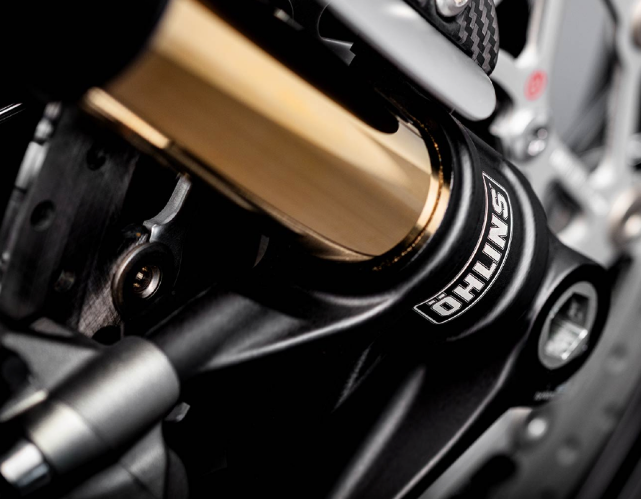 - โช้คคู่หน้าปรับได้เต็มระบบของ Öhlins และระบบกันการสั่นสะเทือนหลังแบบปรับได้