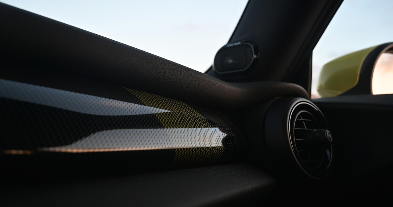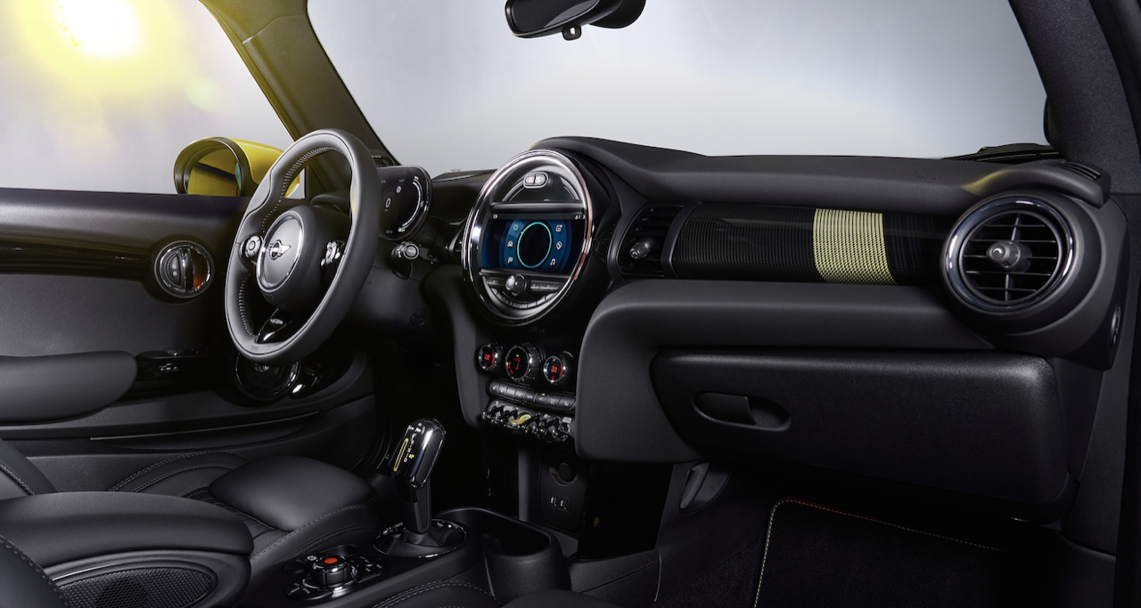 ภายในมาพร้อมเบาะผ้าสีดำ Carbon Black ลาย Double Stripe หัวเกียร์ในดีไซน์เฉพาะสำหรับรุ่นมินิ คูเปอร์ เอสอี ระบบปรับอากาศอัตโนมัติแบบ 2 โซน แยกการระบายอากาศและการควบคุมอุณหภูมิระหว่างผู้ขับและผู้โดยสารด้านหน้า รองรับการสั่งงานระยะไกลจากแอปพลิเคชัน MINI Connected ในการตั้งเวลาออกเดินทางเพื่อเปิดระบบปรับอากาศล่วงหน้า