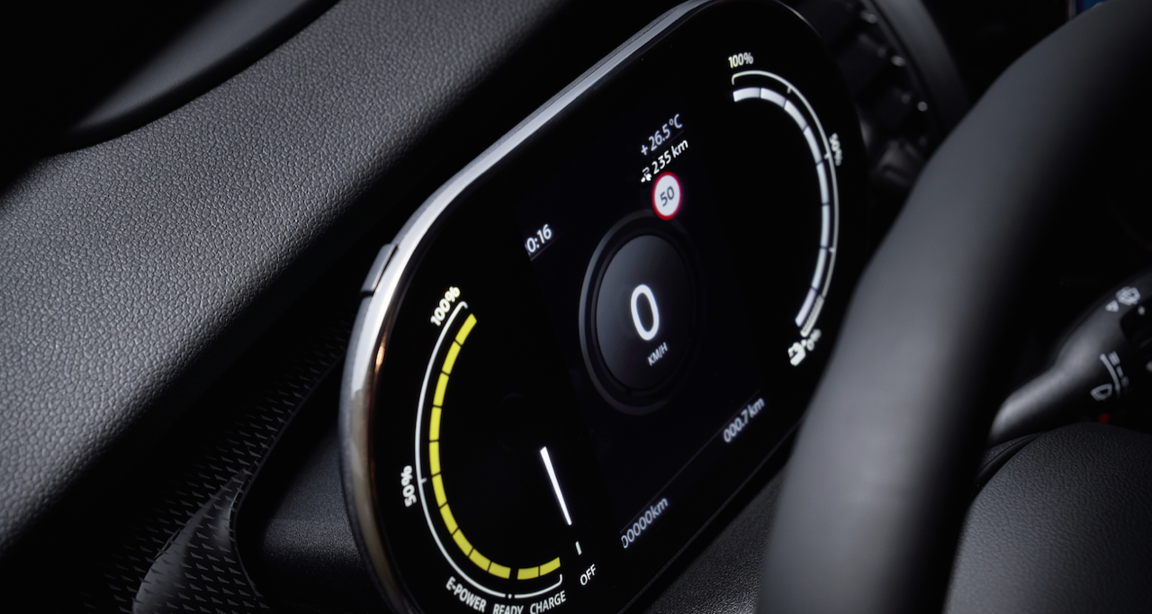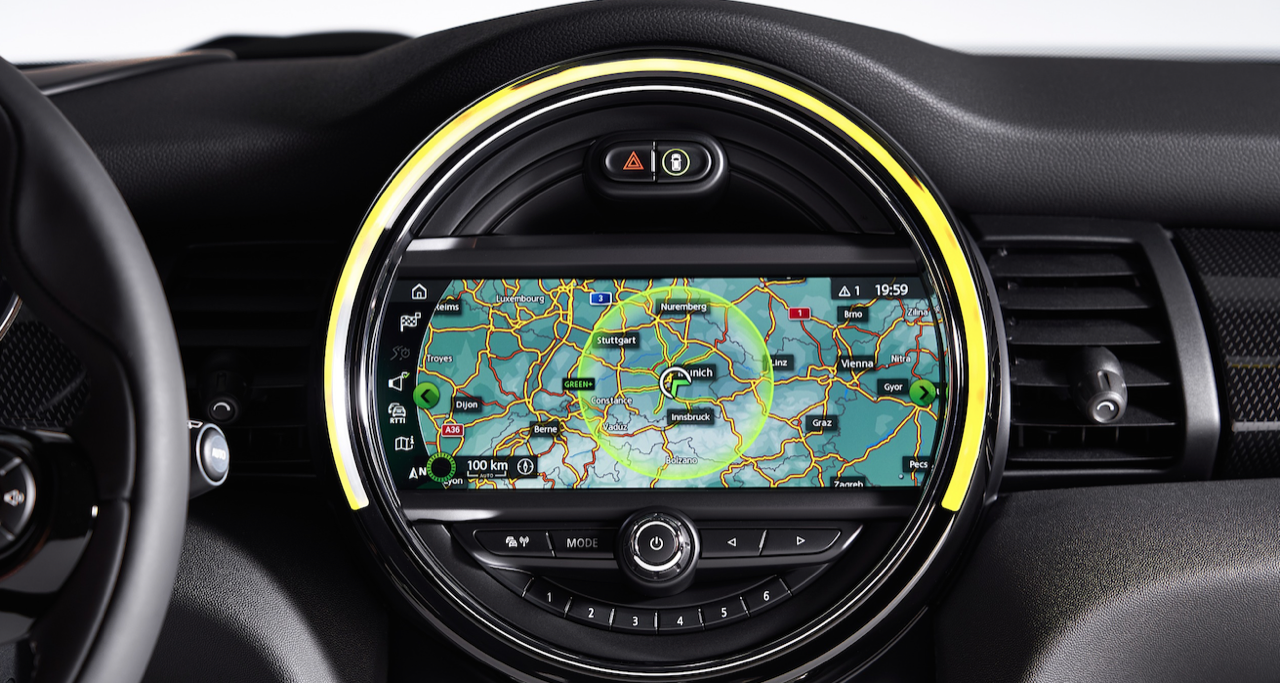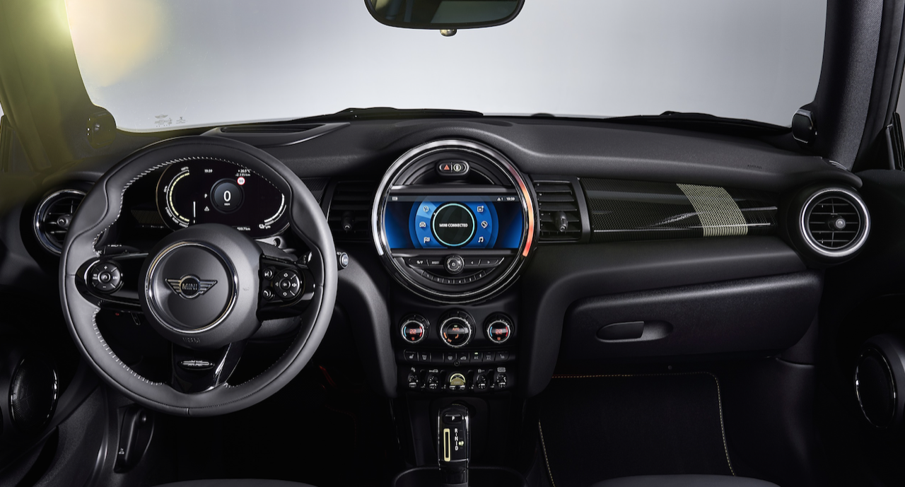 แผงหน้าปัดมาในดีไซน์เฉพาะรุ่น จอแสดงผลสีดิจิทัลขนาด 5.5 นิ้ว Black Panel ด้านหลังพวงมาลัย แสดงผลอัตราความเร็วในการขับขี่ทั้งในแบบตัวเลขและแถบทรงกลมอยู่บริเวณกลางจอ ส่วนด้านข้างเป็นการแสดงข้อมูลในรูปแบบดิจิทัลเกี่ยวกับระดับพลังงานของแบตเตอรี่ โหมดการขับขี่ สถานะของระบบช่วยเหลือผู้ขับขี่ และสัญญาณแสดงสถานะการทำงานของระบบต่างๆ รวมทั้งเวลาที่ใช้ในการชาร์จแบตเตอรี่ โดยจะเปลี่ยนสีไฟตามสถานะการชาร์จ ได้แก่ สีส้มขณะเริ่มชาร์จ สีเหลืองขณะกำลังชาร์จ และสีเขียวเมื่อชาร์จเต็ม โดยหากมีความผิดปกติใดๆ ในระหว่างการชาร์จ จะแจ้งเตือนผู้ขับขี่ด้วยไฟสีแดง สำหรับจอระบบสัมผัสขนาด 6.5 นิ้วบริเวณแผงคอนโซล รองรับการแสดงผลจากบริการ MINI Connected ที่ออกแบบมาเพื่อรองรับการขับเคลื่อนด้วยพลังงานไฟฟ้าโดยเฉพาะ เช่น จอ eDrive ที่แสดงข้อมูลเกี่ยวกับการใช้พลังงานและระยะทางที่วิ่งได้ รวมถึงทางเลือกต่างๆ ในการเพิ่มระยะทางในการขับขี่