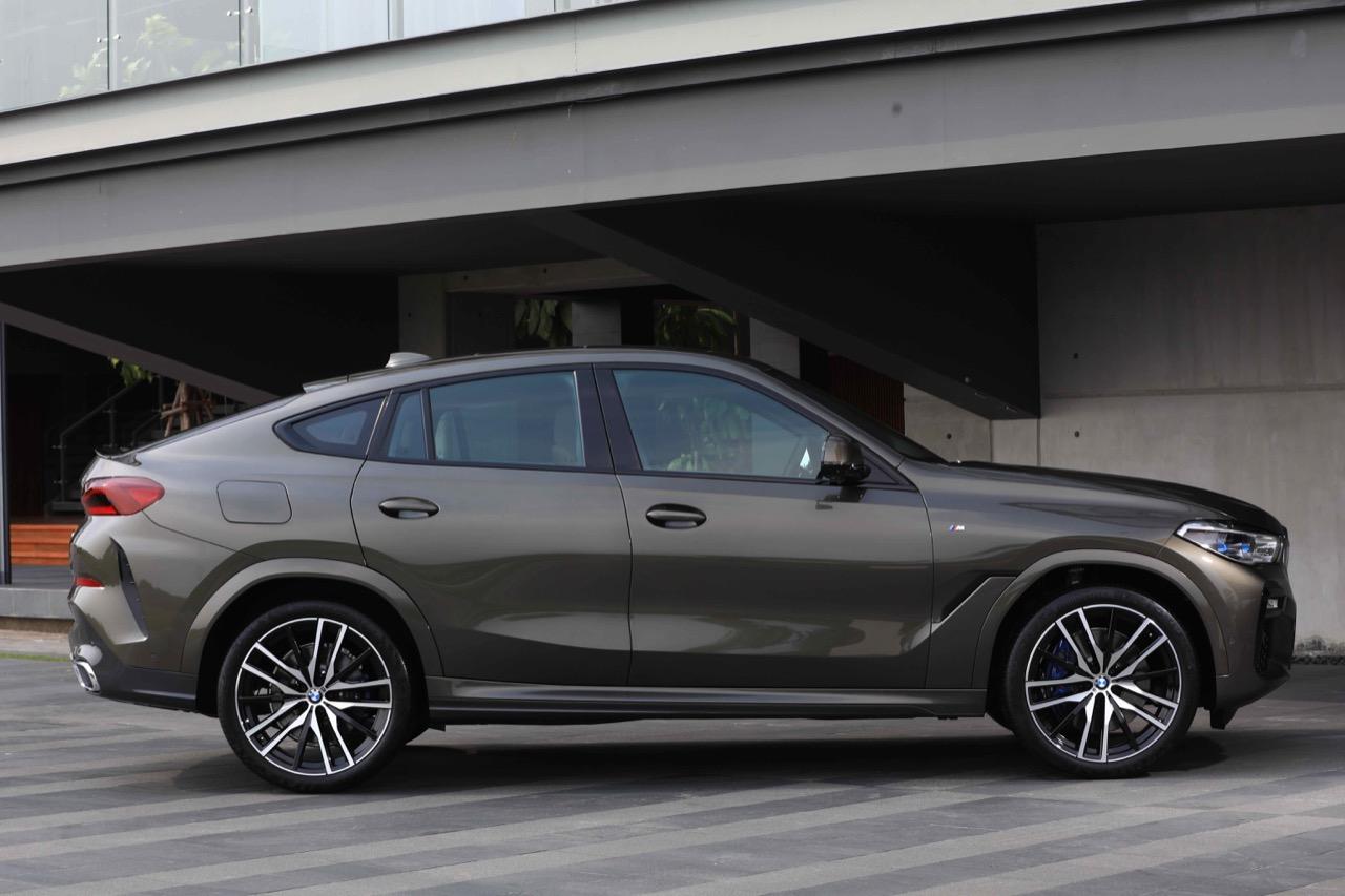 ด้านข้างมีสัดส่วนที่ลงตัว เสาหน้าถูกรีดให้เล็กลง ผืนหลังคาค่อยๆ ลดระดับความลาดเอียงในสไตล์ของรถสปอร์ตคูเป้ เส้นสายด้านข้างลากผ่านแก้มข้าง บานประตู ไปจนถึงกึ่งกลางของเสาท้ายที่ออกแบบได้อย่างลงตัว ล้ออัลลอย M Double Spoke น้ำหนักเบา ขนาด 22 นิ้ว ยางหน้า 275/35/R22 ยางหลัง 315/30R22 มาพร้อมกับซุ้มล้อทรงแปดเหลี่ยมมน ส่วนช่องระบายอากาศสีเดียวกับตัวถังเข้ากับซุ้มล้อแบบใหม่ บั้นท้าย X6 30d ใช้ฝาท้ายไฟฟ้าพร้อมระบบเปิดปิดด้วยรีโมตคอนโทรล ไฟท้าย LED มีลักษณะคล้ายกับ BMW New X4 ไฟท้ายพลาสติกสีแดงรูปตัว L ฝาท้ายออกแบบให้ปิดอย่างไร้รอยต่อเชื่อมเป็นหนึ่งเดียวกับเส้นแนวขวางของตัวถังจนแทบมองไม่เห็น