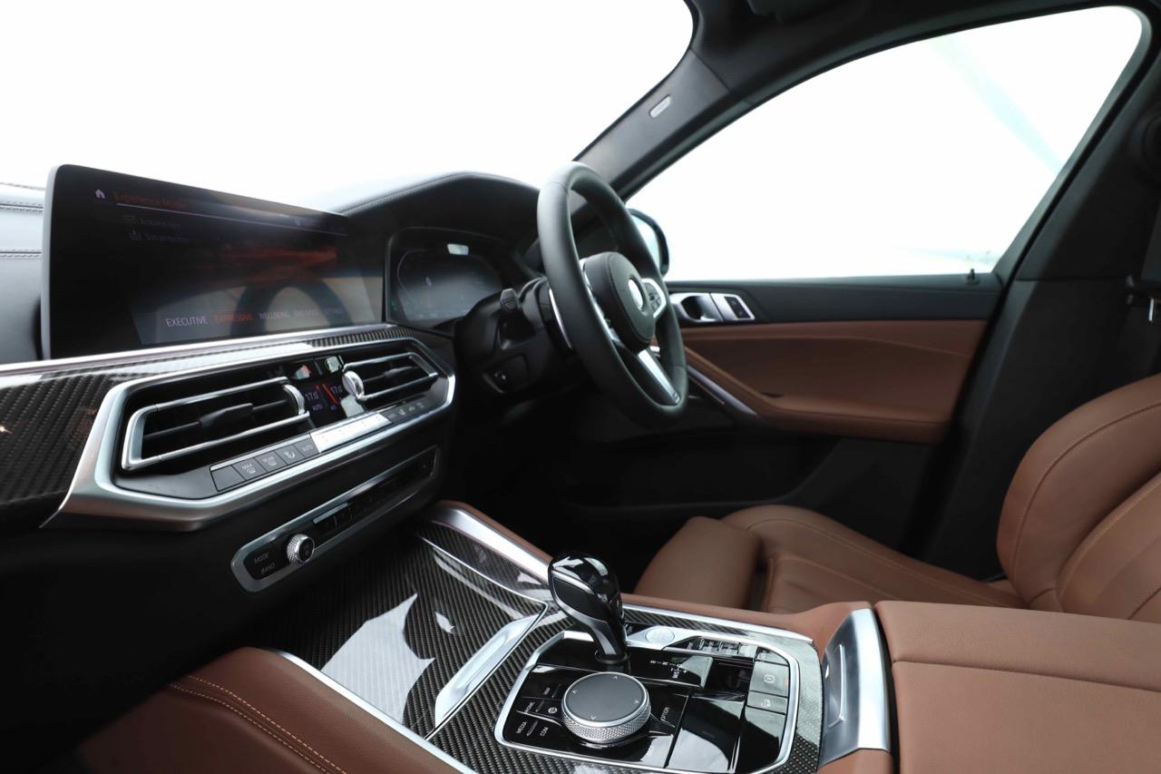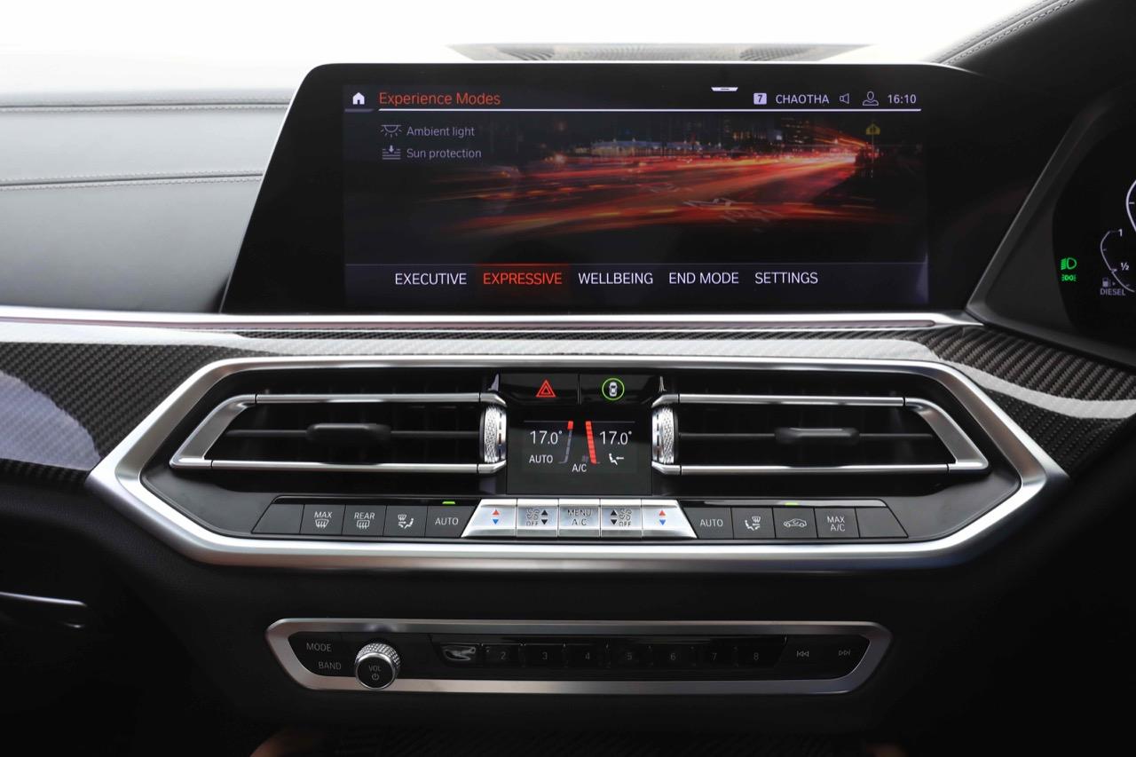 ห้องผู้โดยสารของ BMW New X6 xDRIVE 30d พร้อมอุปกรณ์ตกแต่งภายใน M Sport เช่น พวงมาลัย เบาะนั่ง กาบบันได ติดตั้งชุดแต่ง M Sport เพื่อยกระดับความสวยงาม แผงประตู ชุดลำโพง ผ้าบุฝ้าเดพาน พรมปูพื้น แดชบอร์ดและคอนโซล ผลิตจากวัสดุคุณภาพสูง โดยเฉพาะหนังที่ใช้หุ้มชิ้นส่วนต่างๆ การตัดเย็บด้วยงานฝีมือที่ประณีต เบาะที่นั่งคนขับจัดวางแผงควบคุมแบบใหม่ที่วางตำแหน่งการใช้อุปกรณ์ต่างๆ ได้อย่างสะดวกสบาย ตอบรับกับปรัชญาของ BMW โดยวางตำแหน่งจุดศูนย์กลางการใช้งานอุปกรณ์บริเวณคนขับ เบาะนั่งสูงขึ้น ช่วยให้ผู้ขับสามารถตรวจสอบสถานการณ์รอบรถได้อย่างชัดเจนและครอบคลุม แพ็กเกจชุดแต่ง M Sport เช่น พวงมาลัย M Sport คันเร่ง M-specific ภายในตกแต่งด้วยวัสดุคาร์บอนไฟเบอร์ เพดานหลังคาภายในสี Anthracite พนักพิงเบาะหลังแบ่งพับแบบ 40:20:40 สามารถพับเก็บเพื่อเพิ่มความจุของพื้นที่จากเดิม 580 ลิตร เป็น 1,530 ลิตร สำหรับอุปกรณ์เสริมอื่นๆ เช่น ฟังก์ชั่นสั่งงานระบบ iDrive ด้วยการเคลื่อนไหวมือ BMW Gesture Control ที่วางแก้วน้ำปรับอุณหภูมิ ระบบชาร์จโทรศัพท์แบบไร้สาย หลังคากระจก Panoramic