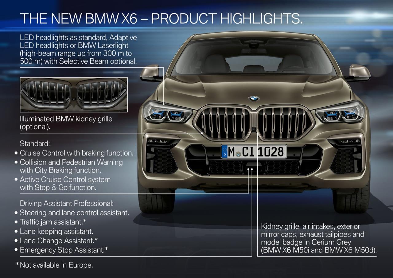 สิบปีที่ผ่านมา BMW พัฒนายานยนต์เพื่อผสมผสานอัตลักษณ์ของรถสปอร์ตกับดีเอ็นเอของรถคูเป้ ก่อกำเนิดเป็นรถยนต์คลาส Sports Activity Coupe (SAC) รูปแบบใหม่ โดย BMW X6 เจเนอเรชั่นที่ 3 นี้มาพร้อมกับดีไซน์ใหม่ที่เพิ่มความดุดันภาพลักษณ์ที่สะท้อนถึงรถยนต์อเนกประสงค์ภายใต้รูปแบบสปอร์ตเอสยูวี