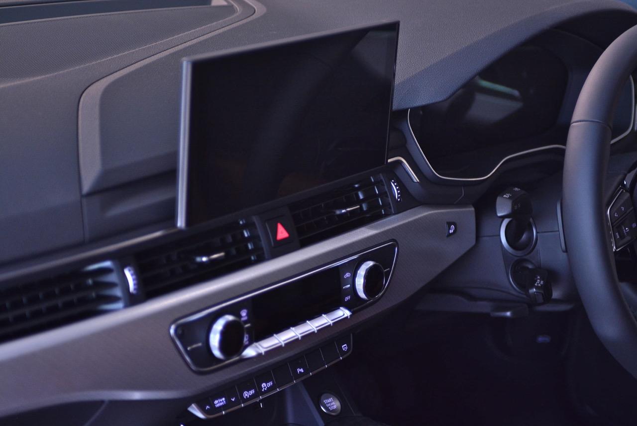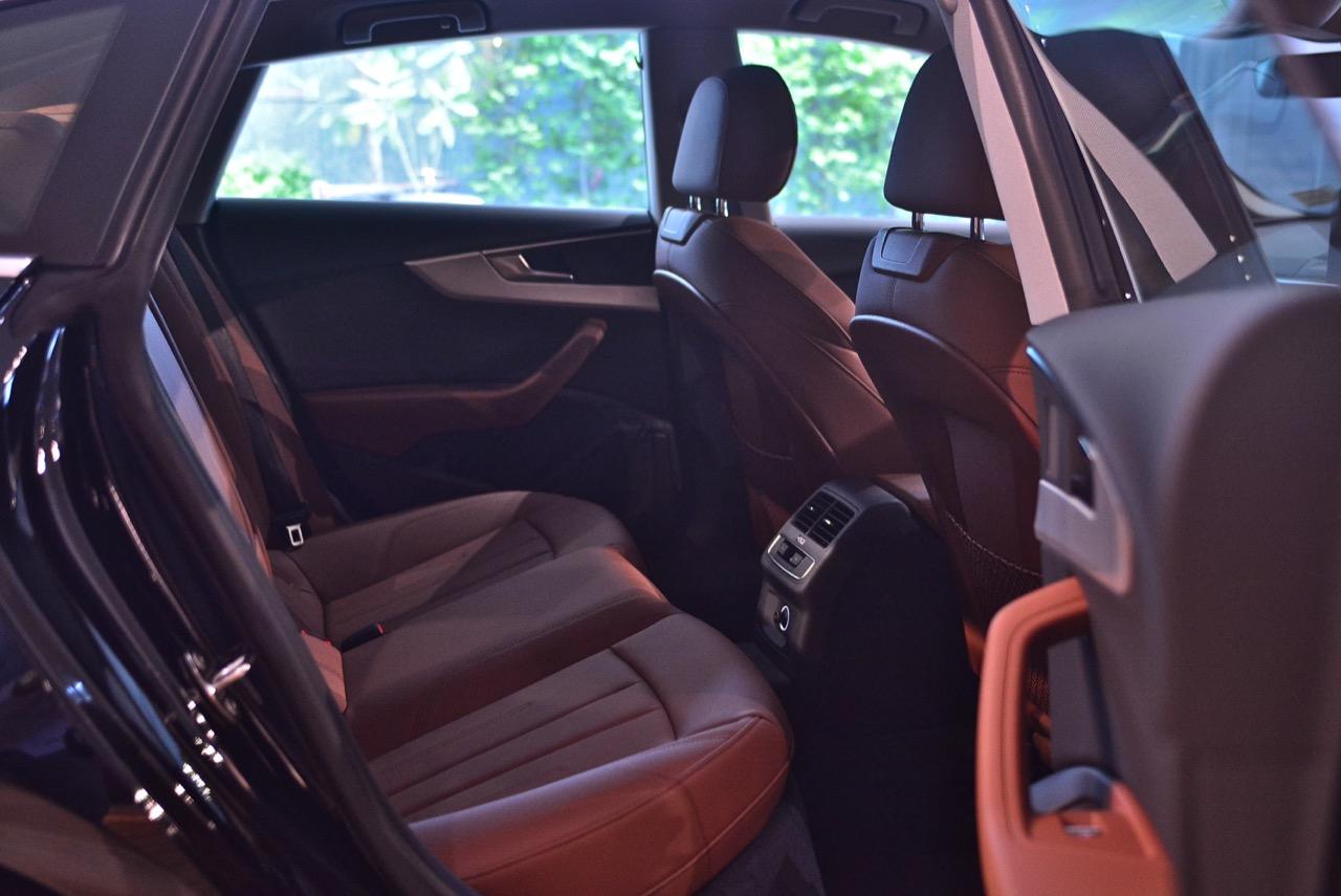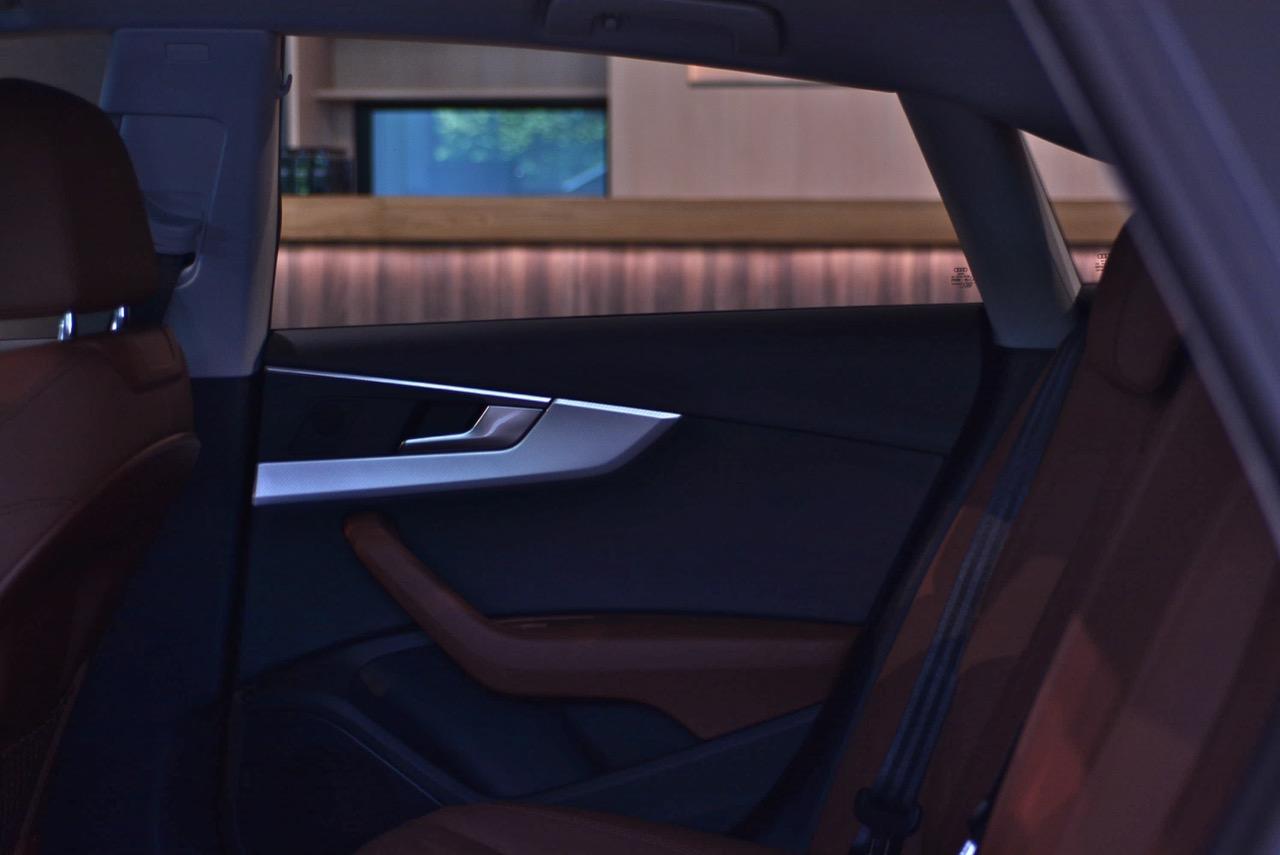 ล้ออัลลอยลายสวยของ S-Line ขนาด 19” x 8.5J กับยางสปอร์ตราคาแพงจาก Bridgestone รุ่น Potenza s001 ไซส์ 255/35/R19 96Y ทั้งสี่ล้อ แก้มข้างประทับตรา S-Line เพื่อโชว์ตัวตนที่แท้จริงว่าเป็น A5 รุ่นตกแต่งพิเศษด้วยอุปกรณ์เสริมความหล่อจาก Audi แนวด้านข้างตัวรถดูแข็งแกร่ง บั้นท้ายหนาบึกด้วยทรงของฝาท้ายกับไฟท้ายแบบ LED ที่ค่อนข้างลงตัว ท่อระบายไอเสียทรงเหลี่ยมแบบแยกฝั่งกับล้อขนาดใหญ่ทำให้มันดูโหด แทนที่จะทำตัวเป็นผู้ดีเหมือน New E Coupe หรือ BMW Series-4 แต่ New Audi A5 กลับเอาใจนักเลงรถด้วยทรงเหลี่ยมที่สอดรับกันทั่วทั้งคันอย่างลงตัว ดูดิบๆ สีเขียวแบบใหม่ล่าสุดช่วยเสริมให้ตัวถังของมันดูคมเข้มมากเป็นพิเศษ เทรนด์แฟชั่นสีตัวถังแบบใหม่ District Green หรือสีเขียวทหารพราน ตัดกับคาลิปเปอร์เบรกสีแดงหน้า-หลัง