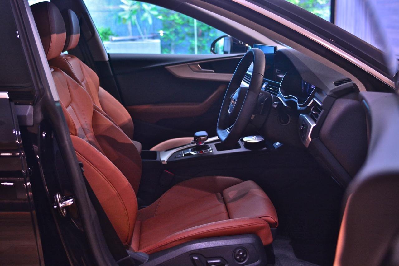 A5 Coupé 45 TFSI quattro S line Black Edition เป็นรถ Audi ที่มีภายในสวยงาม ติดตั้งจอภาพมอนิเตอร์ขนาดใหญ่กว่าเดิม ผืนหลังคาในห้องโดยสารติดตั้งหลังคากระจกพาโนรามิคเป็นอุปกรณ์มาตรฐาน เบาะนั่งคู่หน้าหุ้มหนัง Fine Nappa แบบ S sports ตกแต่งด้วยลาย diamond cut พร้อมสัญลักษณ์ S line และฟังก์ชันนวดเพื่อการผ่อนคลาย