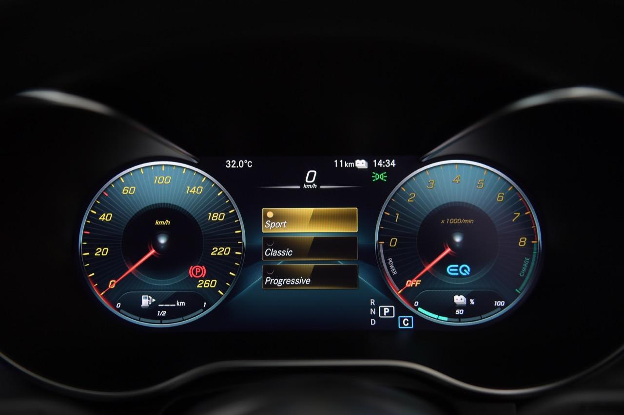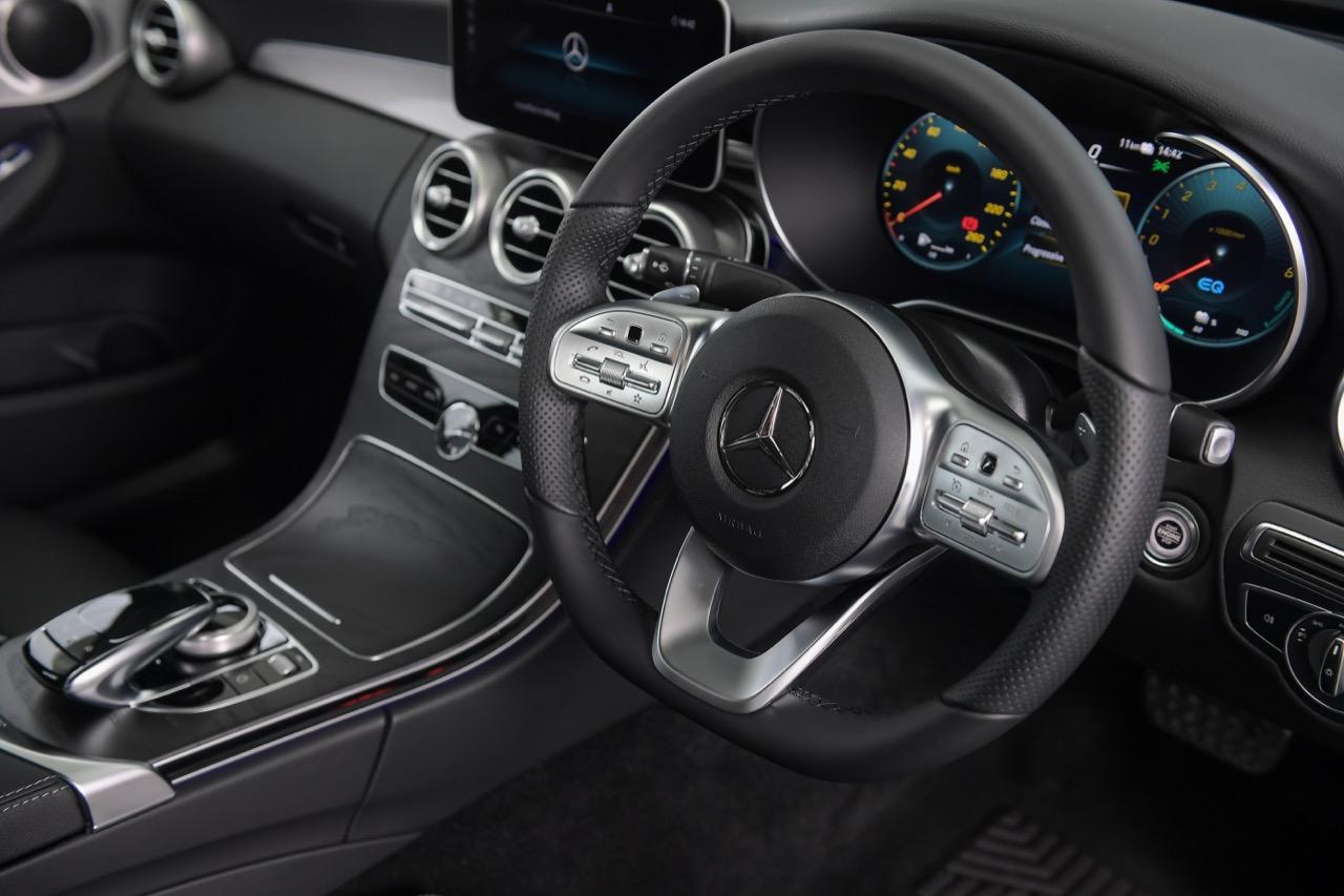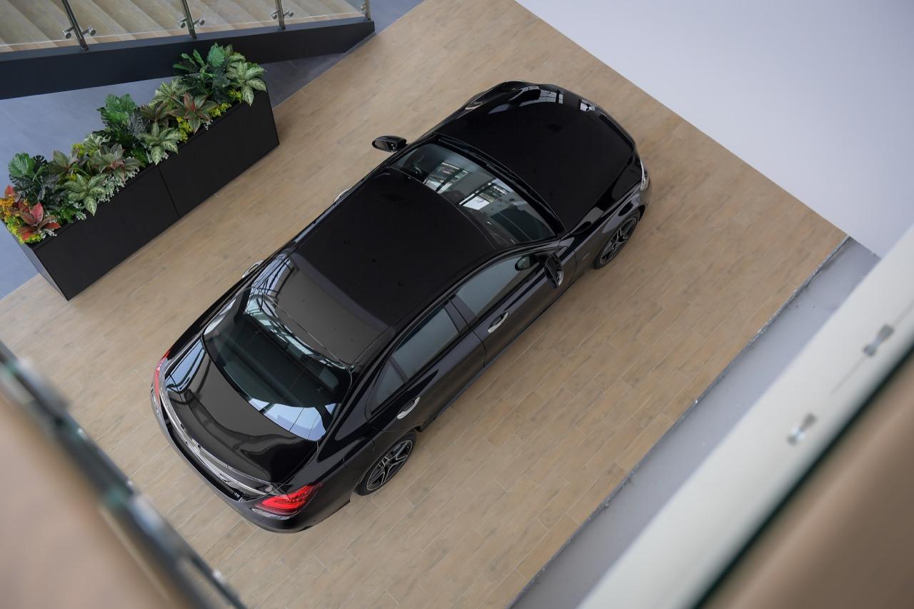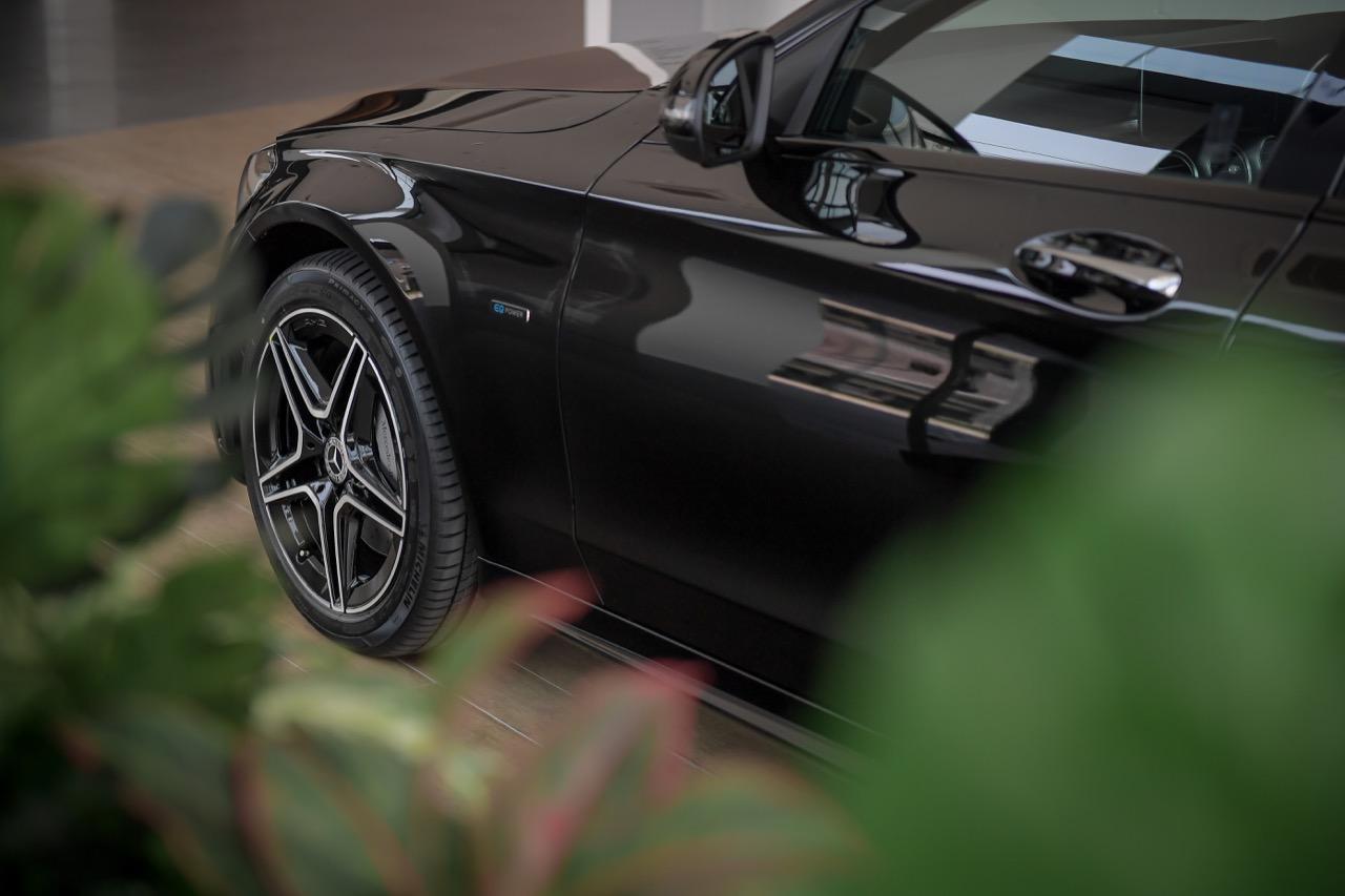 Mercedes-Benz C 300 e AMG Sport รถยนต์ปลั๊กอินไฮบริด ดีไซน์สปอร์ต ขับเคลื่อนด้วยพลังงานไฟฟ้า EQ Power เจเนอเรชันที่ 3 เครื่องยนต์เบนซินขนาด 1,991 ซีซี ระบบส่งกำลังเกียร์อัตโนมัติ 9 จังหวะแบบ 9G-TRONIC กำลังสูงสุด 320 แรงม้า แรงบิดสูงสุด 700 นิวตันเมตร และเมื่อผสานกับมอเตอร์ไฟฟ้าที่ให้กำลังสูงสุดดีขึ้นอีกที่ 122 แรงม้า (90 กิโลวัตต์) สามารถขับขี่ด้วย E-Mode ได้ไกลกว่าเดิมถึง 30% มีอัตราเร่งจาก 0-100 กิโลเมตร ใน 5.4 วินาที
