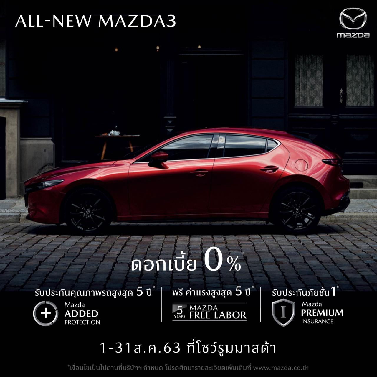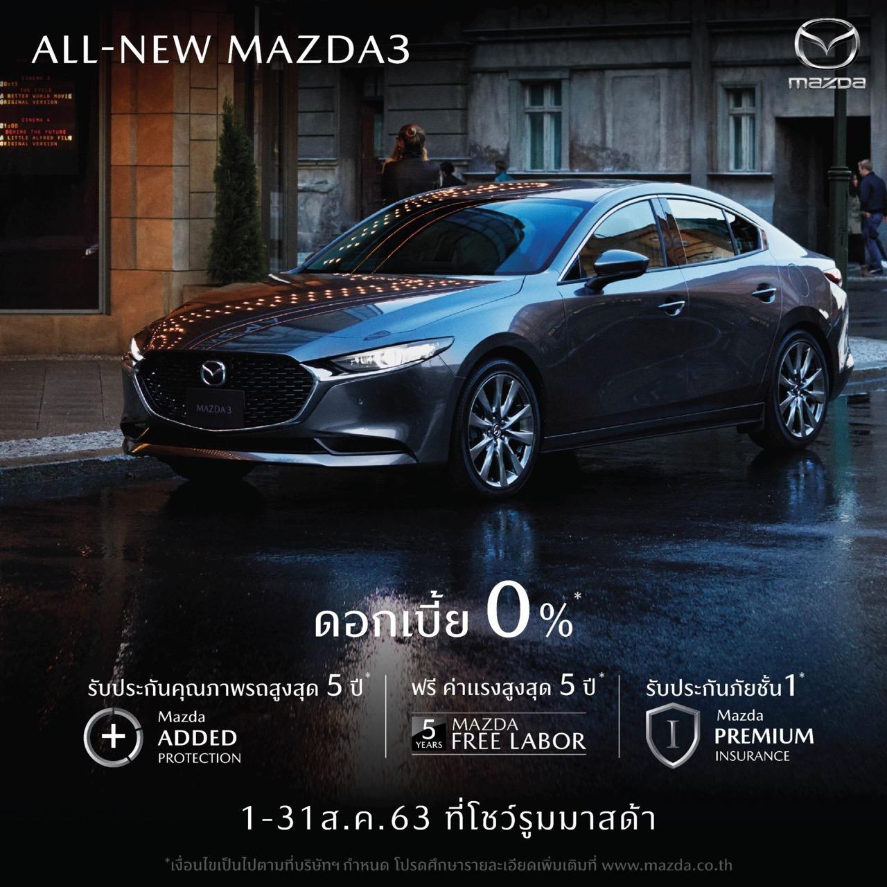 Mazda 3 รถยนต์สองบุคลิก มีให้เลือก 2 สไตล์ ซีดาน 4 ประตู และฟาสท์แบค 5 ประตู ราคา เริ่มต้น 969,000 บาท ดอกเบี้ย 0% ฟรีค่าแรงเช็กระยะ 5 ปี หรือ 100,000 กิโลเมตร ขยายการรับประกันคุณภาพเป็น 5 ปี หรือ 150,000 กิโลเมตร ประกันภัยชั้นหนึ่ง Mazda Premium Insurance.