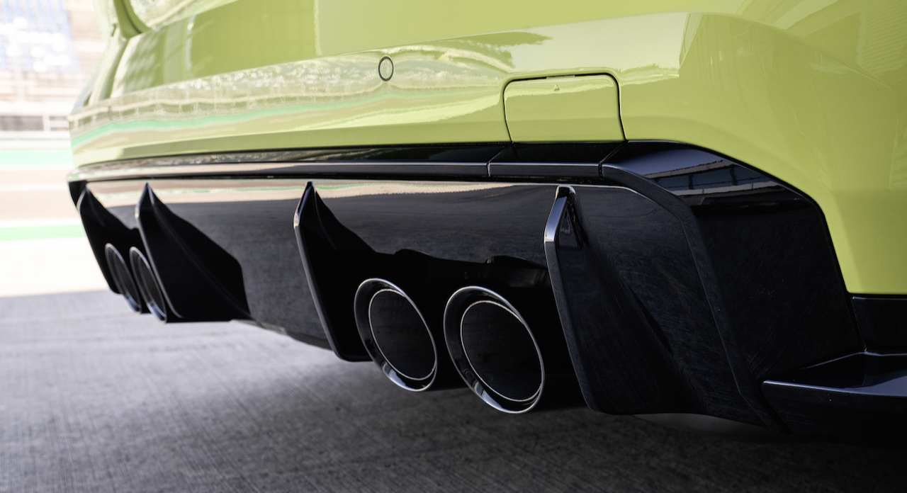 นอกจากตะแกรงไตแนวตั้งขนาดมหึมาแล้ว M3 และ M4 ยังมีแผงตัวถังส่วนใหญ่ที่มีขนาดใหญ่กว่ารุ่นเดิม บังโคลนกว้างขึ้น กันชนหลังติดตั้งดิฟฟิวเซอร์หลังขนาดใหญ่ รวมถึงปลายท่อไอเสียที่โดดเด่นสี่ท่อ บังโคลนหน้ามีช่องระบายอากาศในแนวตั้ง สเกิร์ตข้างลึกตรงกับดิฟฟิวเซอร์หลัง หลังคาคาร์บอนไฟเบอร์ เป็นเอกลักษณ์ของ M-car ที่ใช้งานได้ยาวนาน หลังคาสามารถสั่งเปลี่ยนเป็นหลังคาเหล็กพ่นสีได้หากลูกค้าต้องการซันรูฟ
