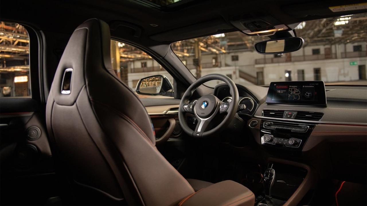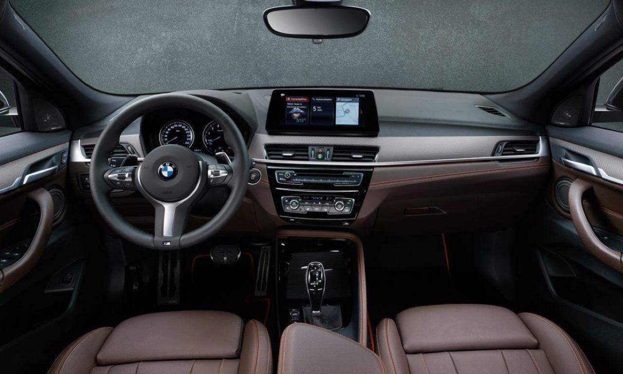 ภายในที่สวยงาม ใช้การตกแต่งโดยมีจุดประสงค์เพื่อสะท้อนการออกแบบของโทนสีภายนอก งานดีไซน์ภายในของ X2 M Mesh Edition ใช้โทนสีที่ตัดกันสองสี มีการใช้ผ้าหุ้มเบาะแบบพิเศษ สำหรับตกแต่งเบาะนั่งด้านหน้าและด้านหลัง M sport มีการผสมผสานระหว่างหนัง Dakota ในสี Mocha และ Alcantara สี Anthracite พร้อมตะเข็บสีส้มตัดกันอย่างลงตัว