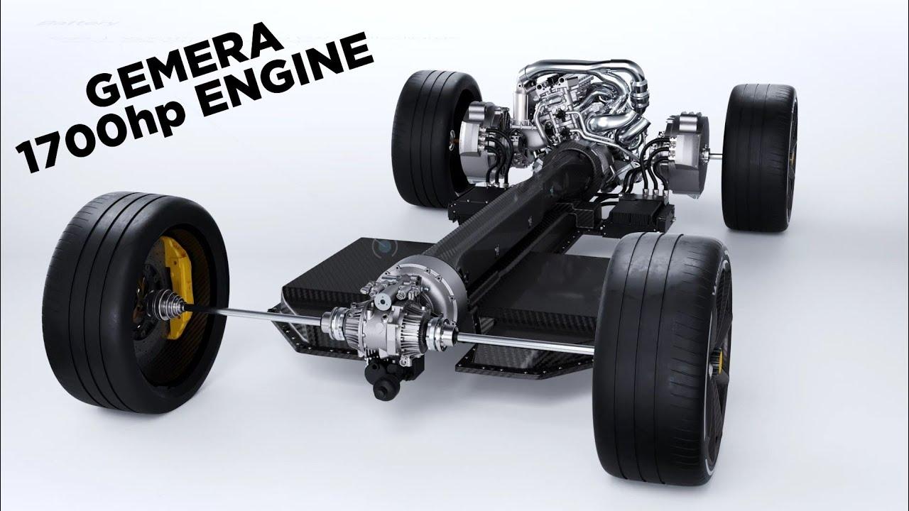 Koenigsegg Gemera วางเครื่องยนต์เบนซินตัวเล็ก แบบแถวเรียง 3 กระบอกสูบ Twin Free valve Turbo เป็นเครื่องยนต์ที่ปราศจากแคมชาร์ป โดยหันมาใช้ Actuator ควบคุมการทำงานของวาล์ว เครื่องยนต์แบบใหม่นี้มีขนาดเล็กและมีน้ำหนักแค่ 70 กิโลกรัม ปริมาตรความจุกระบอกสูบ 2.0 ลิตร อัดอากาศด้วยเทอร์โบแปรผัน Twin Scroll ผสมผสานการทำงานกับมอเตอร์ไฟฟ้าสามตัว เครื่องยนต์เบนซิน 3 สูบ Free valve Turbo ให้กำลังสูงสุด 598 แรงม้า แรงบิดสูงสุด 600 นิวตันเมตร ต่อเชื่อมการทำงานกับมอเตอร์ไฟฟ้า 3 ตัว ทำให้ระบบขับเคลื่อนของ Gemera มีกำลังสูงสุดรวมทั้งระบบ 1,700 แรงม้า แรงบิดสูงสุด 3,500 นิวตัน-เมตร