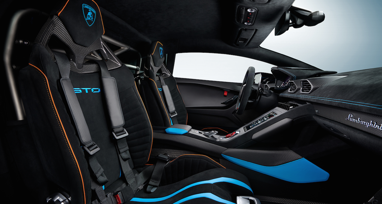 การตกแต่งภายในถูกยกระดับเช่นเดียวกับภายนอกที่สวยงามและดุดัน ภายในของ STO อุดมไปด้วยการใช้คาร์บอนไฟเบอร์ และหนังเนื้อนิ่มอัลคันทารา อุปกรณ์ที่เกี่ยวข้องกับความสะดวกสบาย ที่ถือว่าไม่เกี่ยวข้องกับการแข่งรถจะถูกถอดออก รวมถึงเบาะผู้โดยสารซึ่งถูกแทนที่ด้วยพรมปูพื้นแบบธรรมดา ฝากระโปรงหน้า ออกแบบให้มีพื้นที่สำหรับเก็บหมวกกันน็อกของคุณโดยเฉพาะ