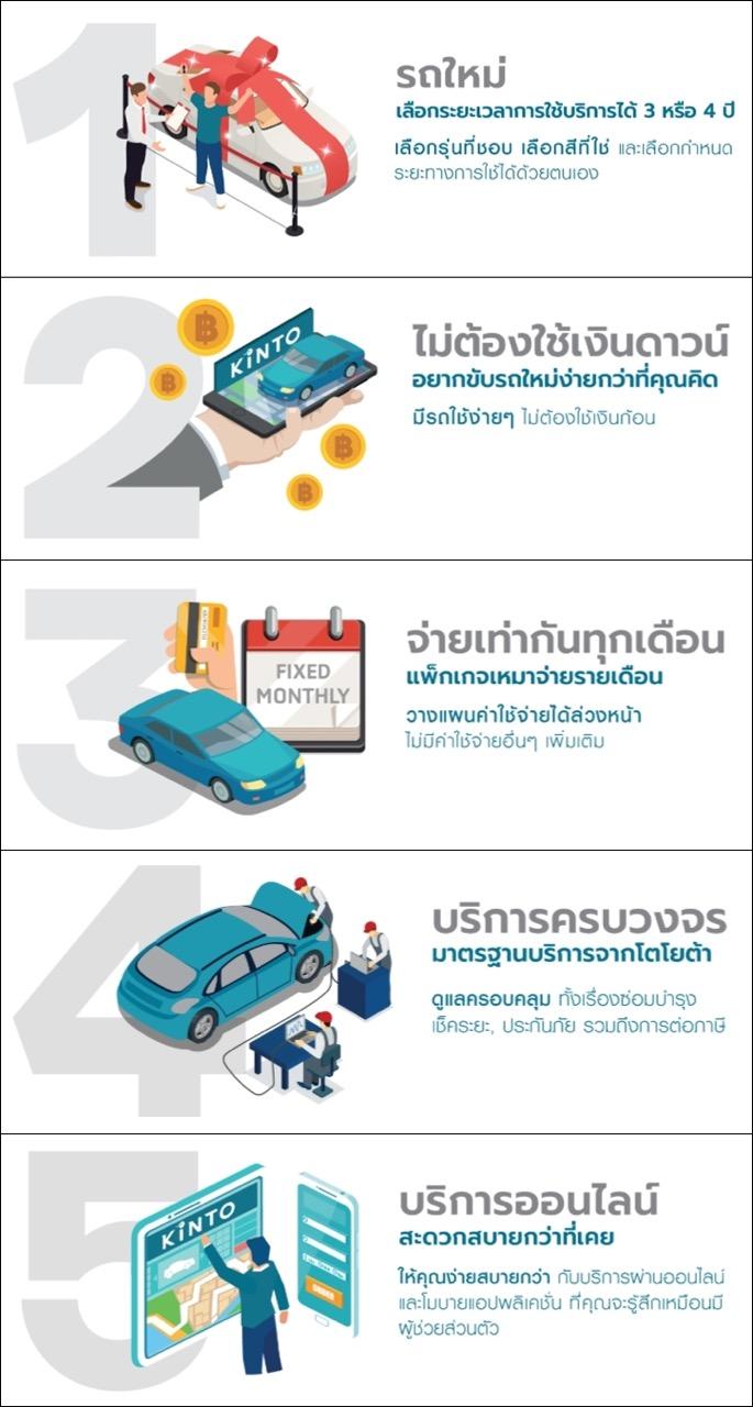 การซื้อรถในรูปแบบใหม่ที่ใช้ลักษณะของการทำสัญญาเช่าซื้อ ถือเป็นทางเลือกใหม่สำหรับการเลือกใช้รถยนต์ บริการเช่ารถ Kinto จาก Toyota เป็นประสบการณ์ใหม่สำหรับผู้ใช้รถยนต์ พัฒนาขึ้นมาเพื่อตอบโจทย์การเช่าซื้อรถแบบใหม่ผ่าน Digital Platform ที่มีความร่วมมือกันอย่างเหนียวแน่นระหว่างพันธมิตรของ Toyota เพื่อเพิ่มการซื้อรถยนต์ในรูปแบบใหม่ หรือ New Buying Experience โดยมีเทคโนโลยีและบริการดิจิตอล ที่จะเชื่อมการขับใช้งานในชีวิตประจำวัน