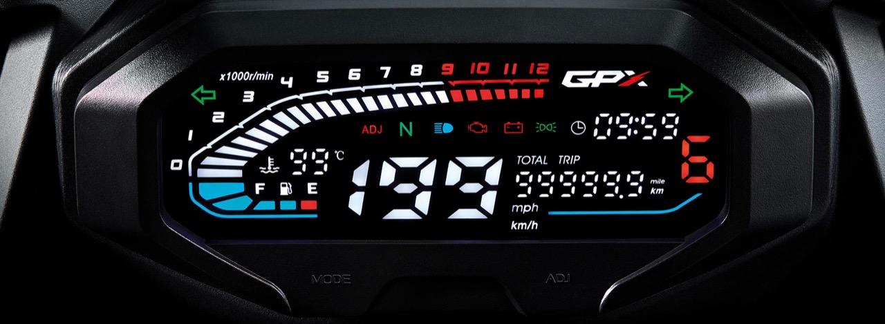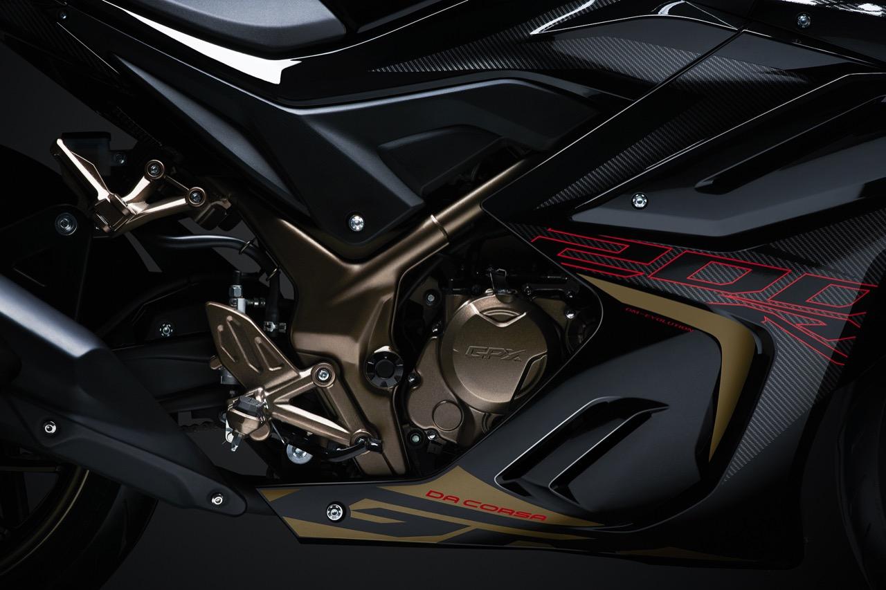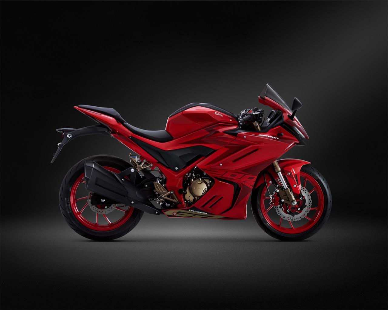 New DEMON GR200R – Da Corsa รถสปอร์ตฟูลแฟริ่ง สายพันธุ์ปิศาจรุ่นล่าสุดจาก GPX ขุมกำลังพิกัด 200 ซีซี 4 จังหวะ SOHC เครื่องยนต์เทคโนโลยีหัวฉีด GPX-Fi (แบรนด์ Delphi อเมริกา) ที่ผ่านการทดสอบมาตรฐาน Euro4 มีระบบระบายความร้อนด้วยน้ำ ที่ออกแบบมาให้หม้อน้ำมีขนาดใหญ่ พร้อมเกียร์ 6 สปีด กำลังแรงบิด 17.2 N.m ที่ 6,500 รอบต่อนาที