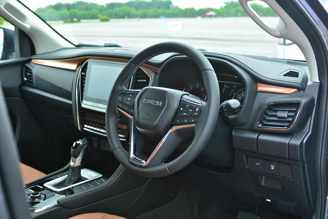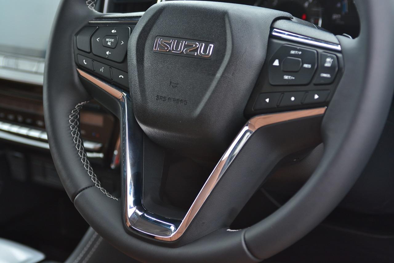 New MU-X รุ่นสูงสุด 3.0 ULTIMATE AT 4WD ราคา 1,579,000 บาท วางเครื่องยนต์ดีเซลเทอร์โบ แบบแถวเรียง 4 กระบอกสูบ เป็นเครื่องยนต์ดีเซลในสังกัดของ Isuzu มีการปรับปรุงเพิ่มสมรรถนะในด้านแรงม้าและแรงบิด เครื่องดีเซล รหัส 4JJ3-TCX ขนาด 3.0 ลิตร 2,999 ซีซี. 4 สูบแถวเรียง 16 วาล์ว DOHC Commonrail Direct Injection อัดอากาศด้วยเทอร์โบ VGS ครีบแปรผัน พร้อมชุดลดอุณหภูมิ Intercooler มีกำลัง 190 แรงม้า ที่ 3,600 รอบต่อนาที แรงบิดสูงสุด 450 นิวตันเมตร ที่ 1,600 – 2,600 รอบต่อนาที ระบบส่งกำลัง ใช้เกียร์อัตโนมัติ 6 สปีด Sequential Shift พร้อมโหมดเกียร์ธรรมดา Manual Mode + – และชุดขับเคลื่อน 4 ล้อ ระบบ ISS Idling Start / Stop ช่วยลดมลพิษ ระบบรองรับ ด้านหน้าอิสระปีกนก 2 ชั้น ดับเบิลวิชโบน คอยล์สปริง เหล็กกันโคลง โช้คอัพ ด้านหลัง แบบ 5-Link เหล็กกันโคลง โช้คอัพ