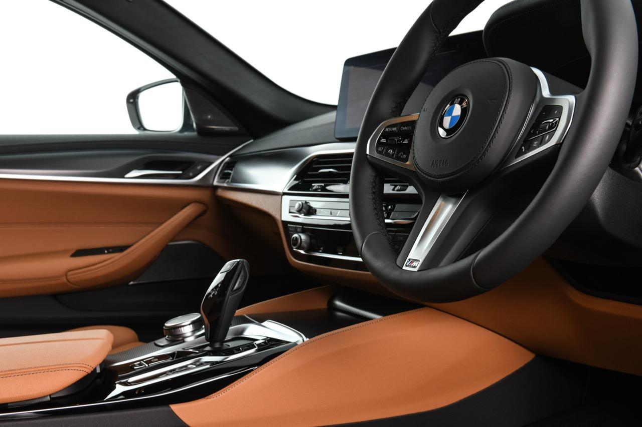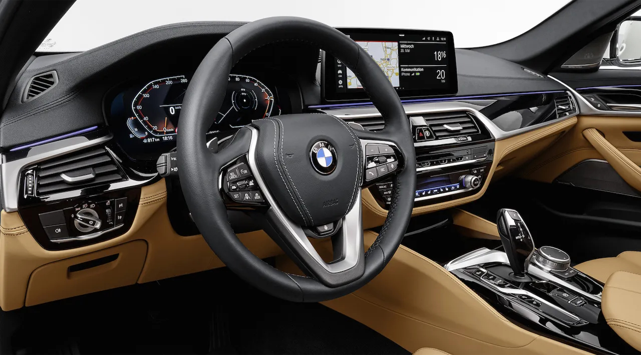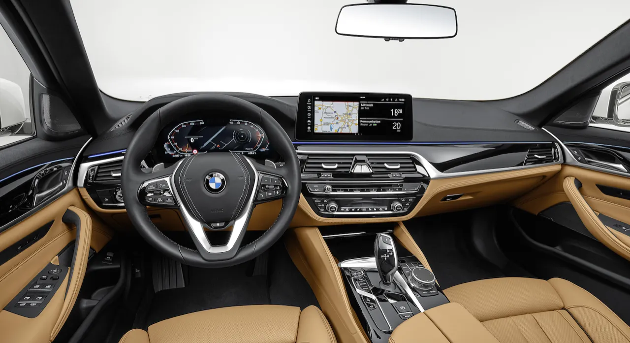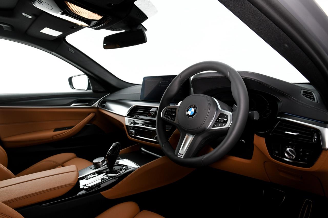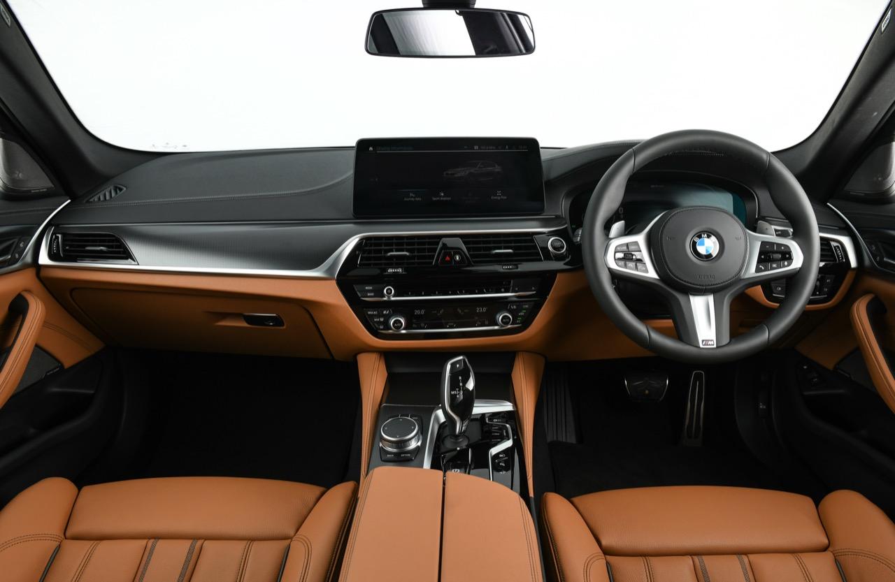 การออกแบบภายในห้องโดยสาร เน้นการผสานทั้งความสง่างามและความล้ำสมัยเข้าไว้ด้วยกัน โดยคำนึงถึงผู้ขับขี่เป็นสำคัญ จึงสร้างบรรยากาศที่สมบูรณ์แบบทั้งสำหรับการขับขี่และมอบความสะดวกสบายแม้ขณะเดินทางไกล ตกแต่งด้วยวัสดุพรีเมียมและงานฝีมือสุดประณีตจากช่างผู้เชี่ยวชาญ ปุ่มบริเวณคอนโซลกลางมาในสีดำเงาเพื่อความหรูหรา ตัดกับพวงมาลัยหุ้มหนังมัลติฟังก์ชัน M Sport พร้อมคอนโซลด้านบนบุด้วยหนัง Sensatec ในรุ่น 520d M Sport และ 530e M Sport ทั้งสามรุ่นมาพร้อมเบาะหนังแท้ Dakota ภายในห้องโดยสารของบีเอ็มดับเบิลยู 520d M Sport และ 530e M Sport ตกแต่งด้วยอลูมิเนียมลาย Rhombicle Smoke Grey พร้อมแถบโครเมี่ยม ขณะที่บีเอ็มดับเบิลยู 530e Elite ตกแต่งด้วยวัสดุสีดำเงาพร้อมแถบโครเมียม