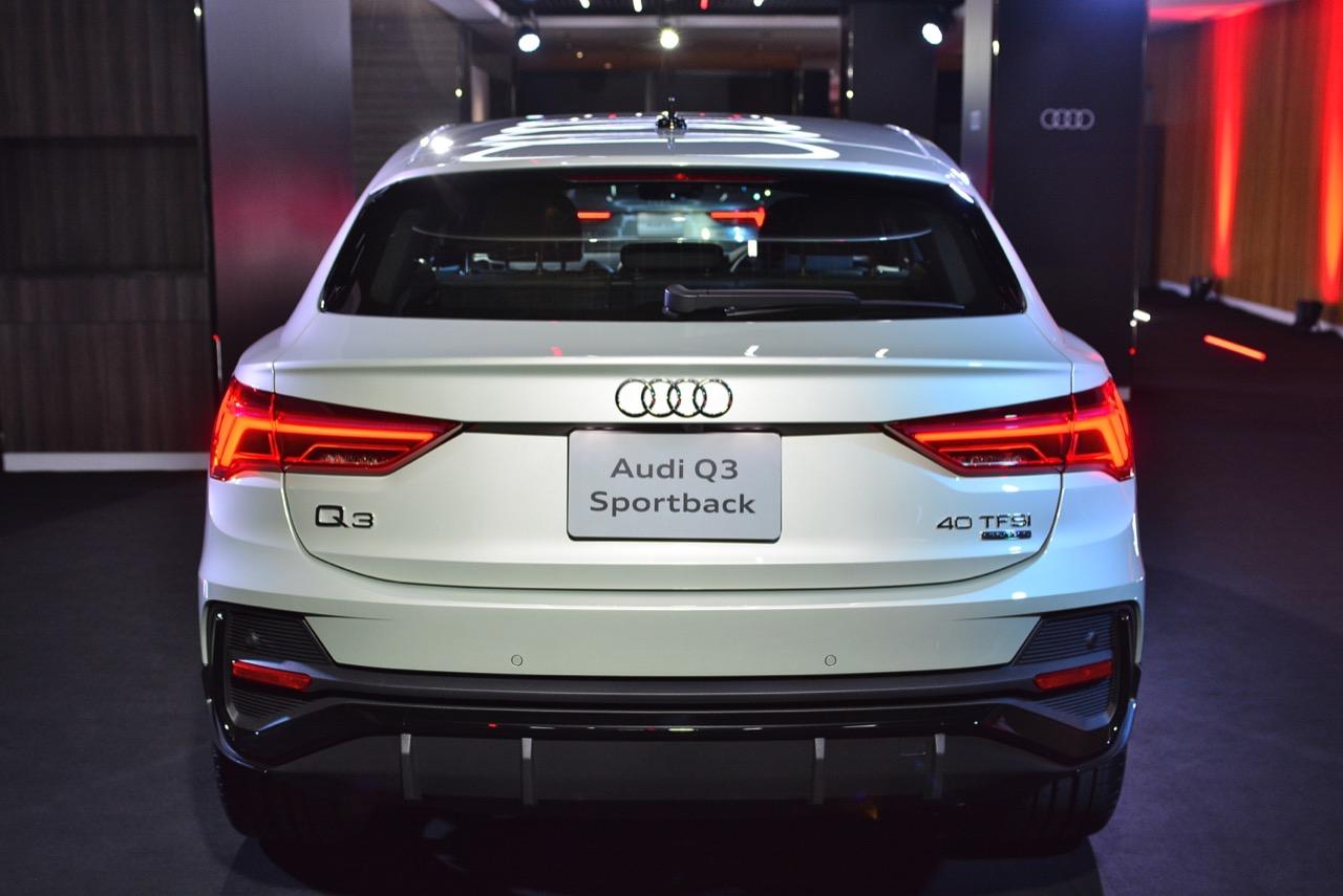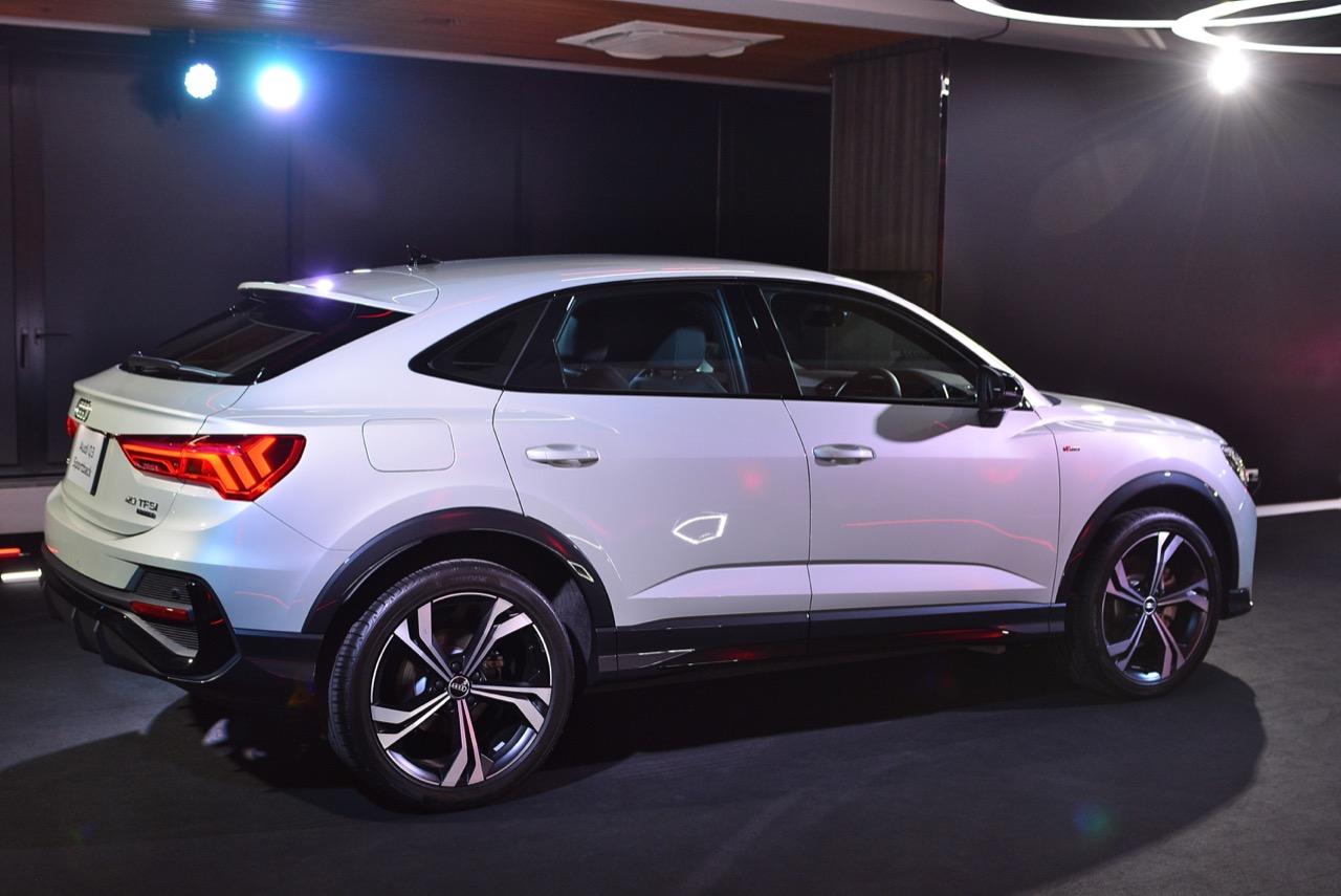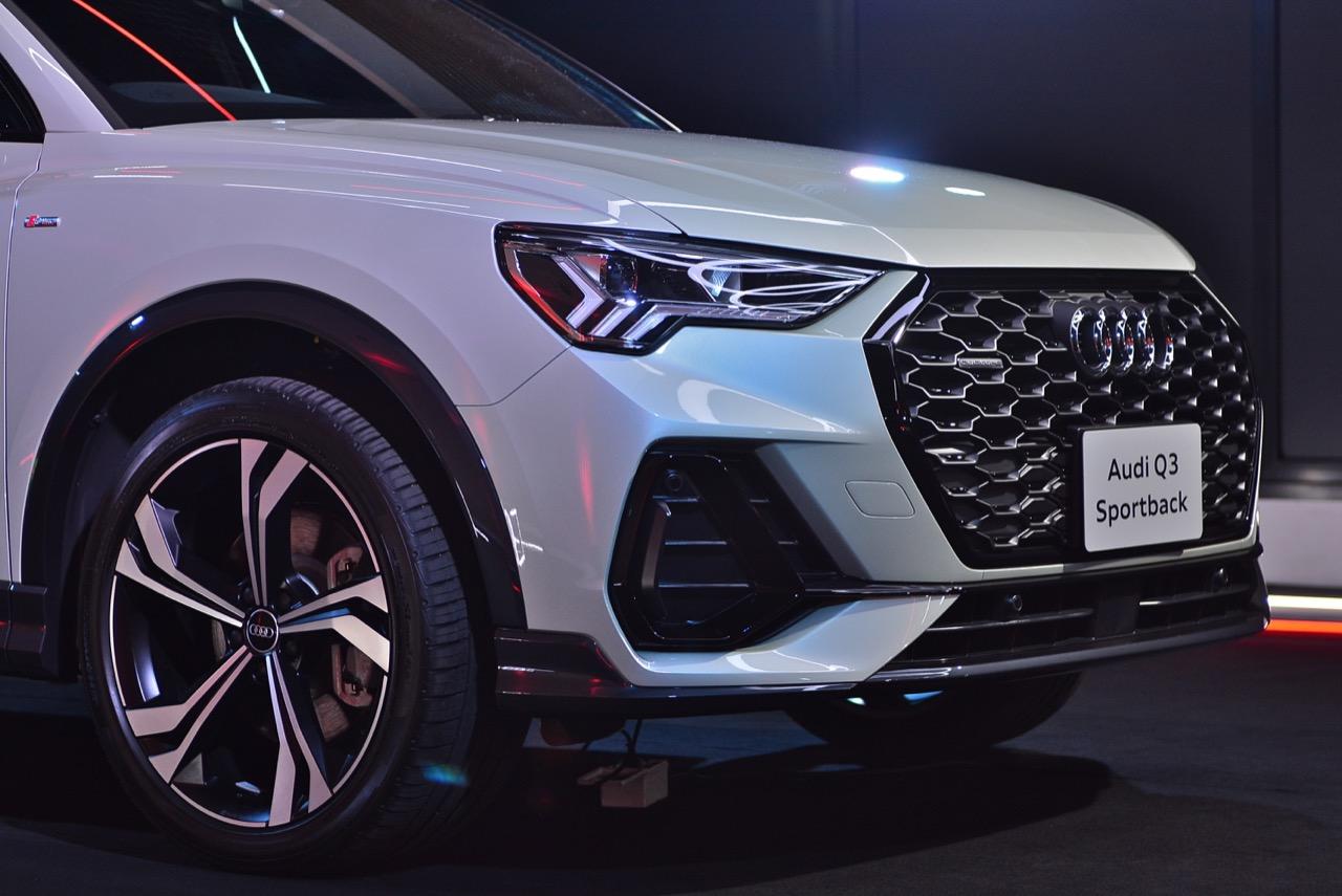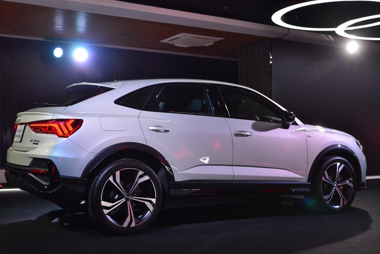 Q3 รุ่น Sportback ออกแบบให้แนวหลังคาลาดเอียงลงไปที่ส่วนท้าย เป็นสไตล์ที่กำลังได้รับความนิยม สำหรับพื้นที่ใช้สอย มีพื้นที่เหนือศีรษะบริเวณเบาะหลังน้อยกว่า Q3 มาตรฐานนิดหน่อย ล้ออัลลอยลายใหม่ ขนาด 20 นิ้ว ใหญ่สุดในรุ่นนี้ให้ ลาย 5 Twin spoke rotor design ซึ่งได้รับแรงบันดาลใจจากใบพัดเครื่องบิน
