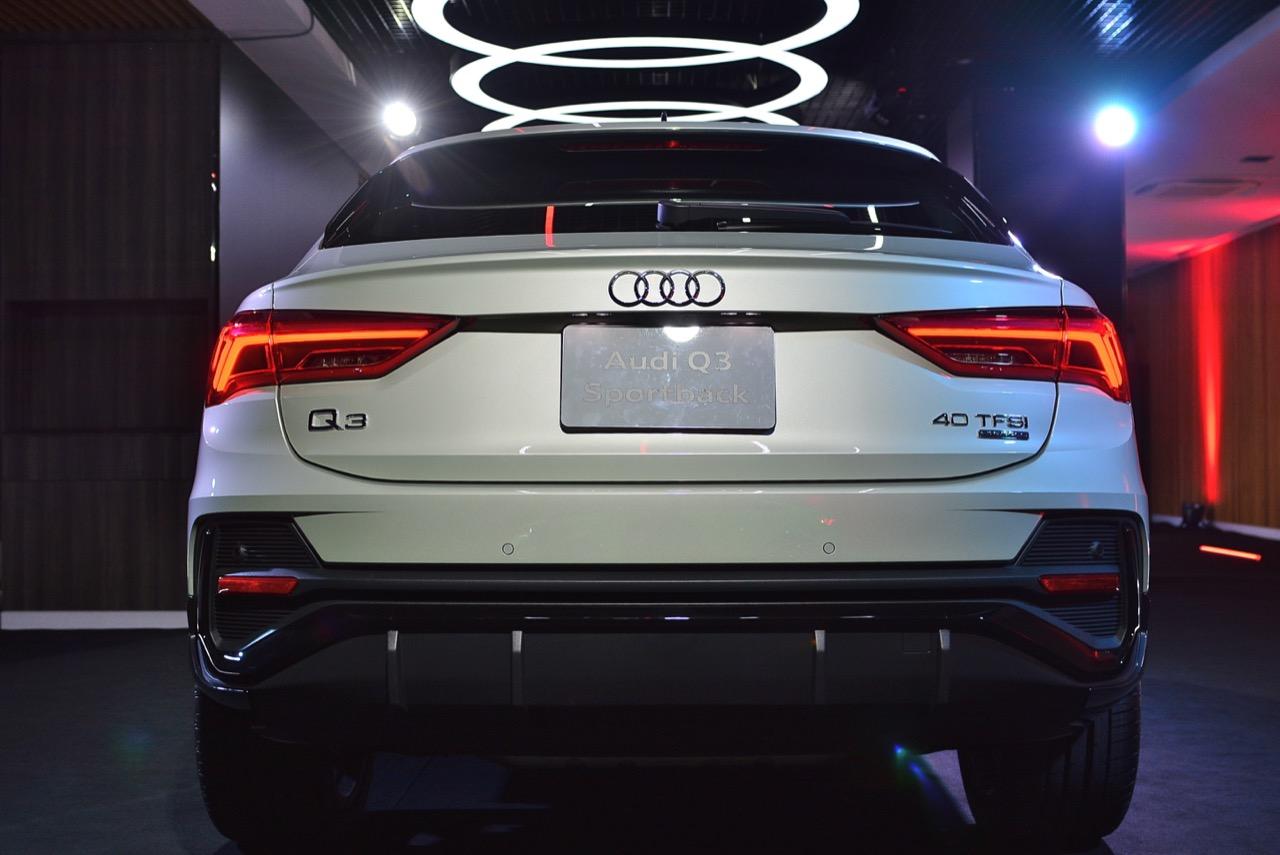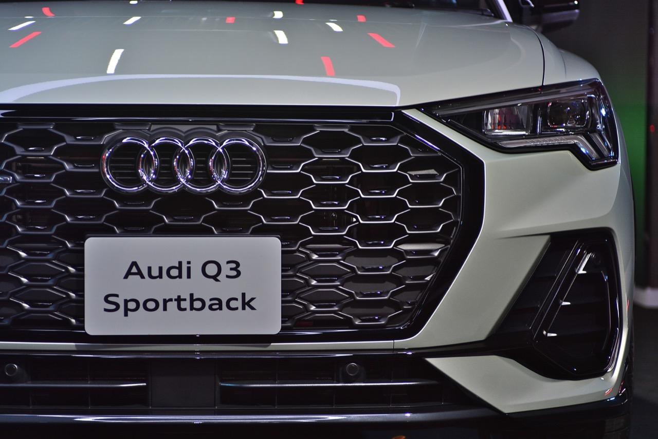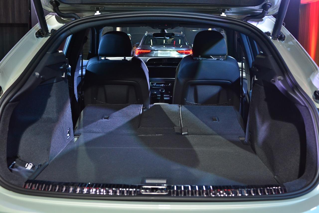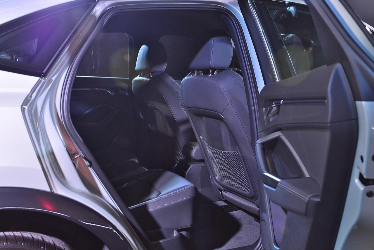 Q3 รุ่น Sportback ออกแบบให้แนวหลังคาลาดเอียงลงไปที่ส่วนท้าย เป็นสไตล์ที่กำลังได้รับความนิยม สำหรับพื้นที่ใช้สอย มีพื้นที่เหนือศีรษะบริเวณเบาะหลังน้อยกว่า Q3 มาตรฐานนิดหน่อย ล้ออัลลอยลายใหม่ ขนาด 20 นิ้ว ใหญ่สุดในรุ่นนี้ให้ ลาย 5 Twin spoke rotor design ซึ่งได้รับแรงบันดาลใจจากใบพัดเครื่องบิน