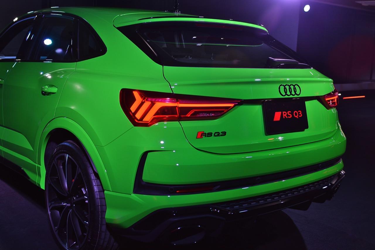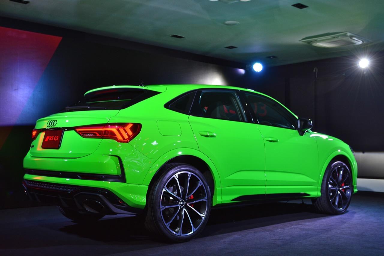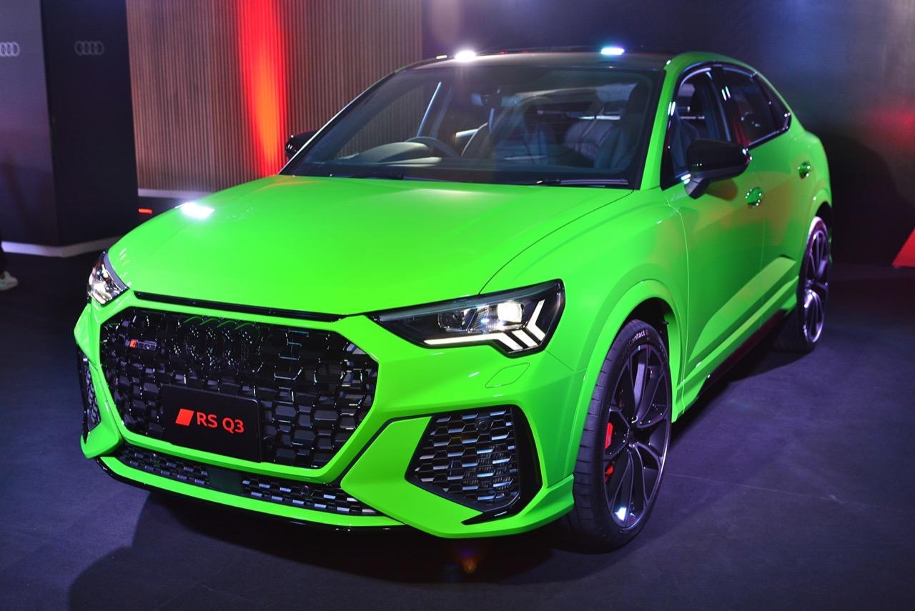 รถรุ่นพิเศษ New Audi RS Q3 Sportback quattro รถยนต์อเนกประสงค์ครอสโอเวอร์ขนาดกะทัดรัด (Sport Compact Crossover Coupé) ชุดตกแต่งภายนอกแบบ Glossy Black RS ตกแต่ง Audi Ring และชื่อรุ่นด้วยสี Glossy Black คาลิปเปอร์เบรกสีแดง กระจังหน้าลายรังผึ้งขนาดใหญ่สีดำเงา กันชนรูปทรงบูมเมอแรงที่ออกแบบมาพิเศษ เครื่องยนต์เบนซิน 5 สูบ ความจุ 2.5 ลิตร เทอร์โบ กำลัง 400 แรงม้า แรงบิด 480 นิวตันเมตร ระบบขับเคลื่อนสี่ล้อ Quattro ตัวเลขสมรรถนะ เร่งจาก 0-100 กิโลเมตรต่อชั่วโมง ใน 4.5 วินาที ความเร็วสูงสุด 250 กิโลเมตรต่อชั่วโมง ราคา 4,750,000 บาท