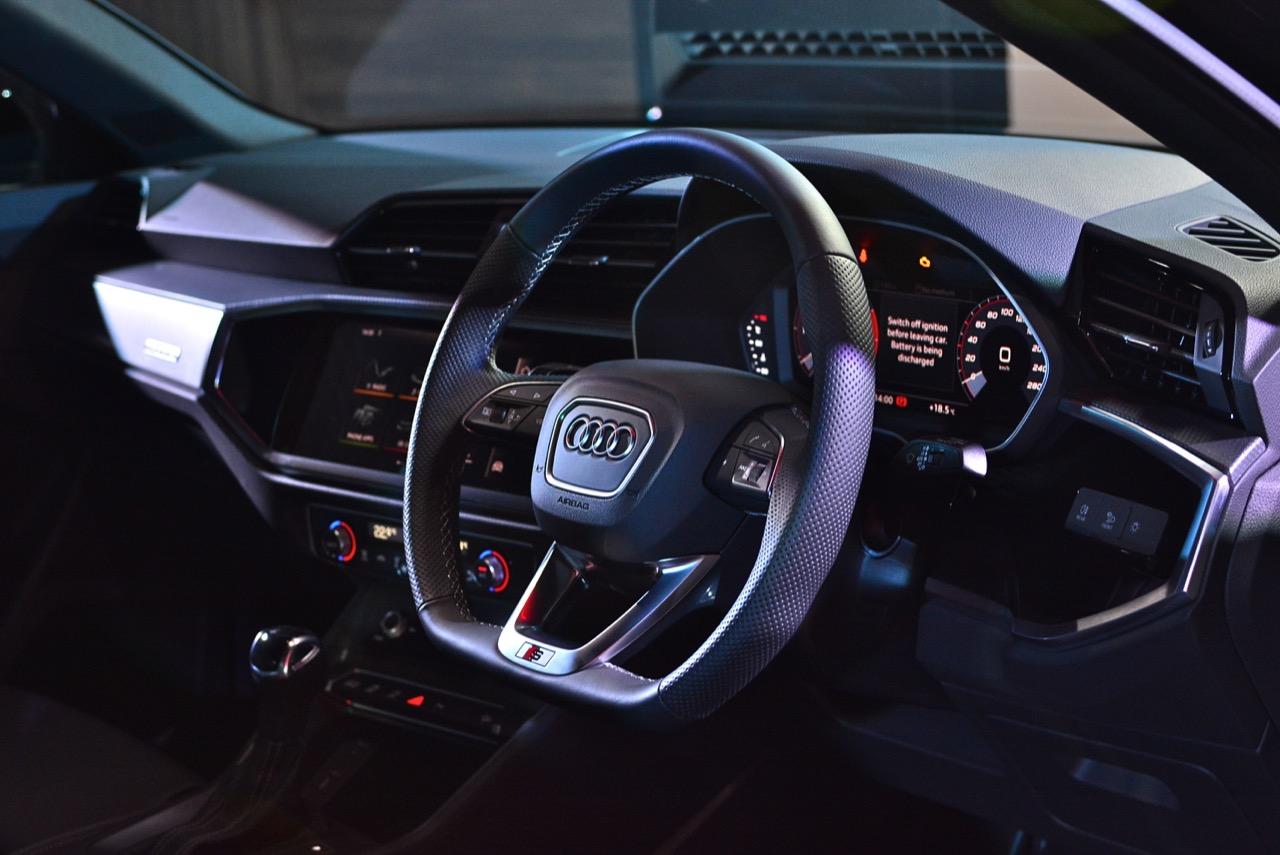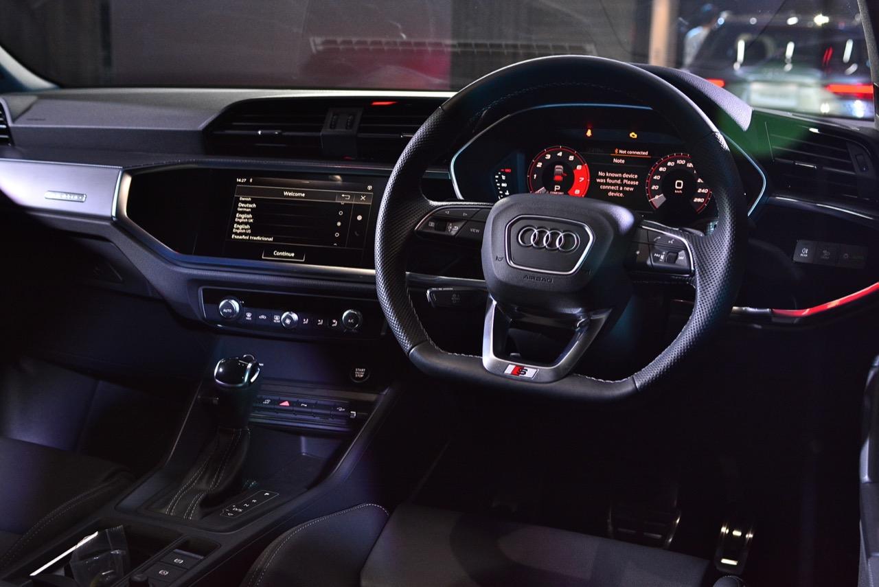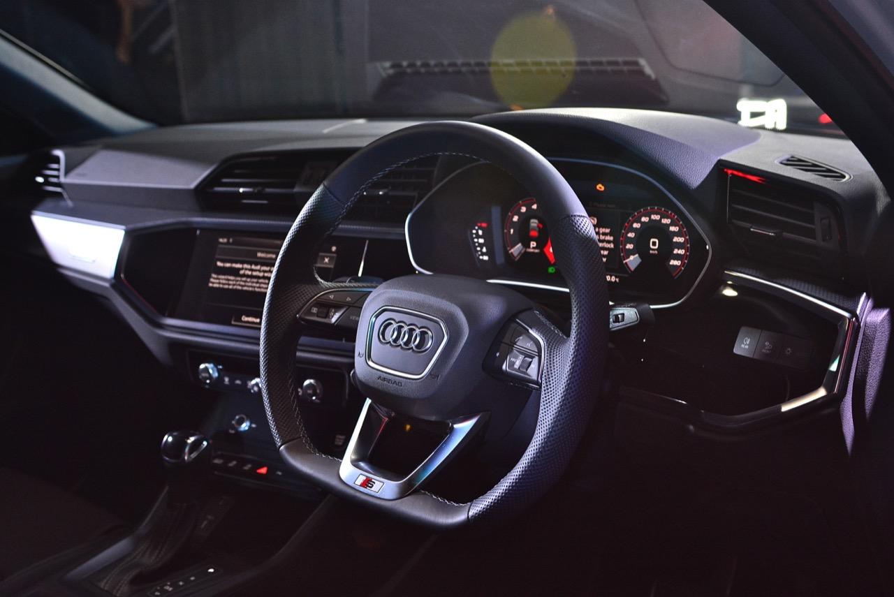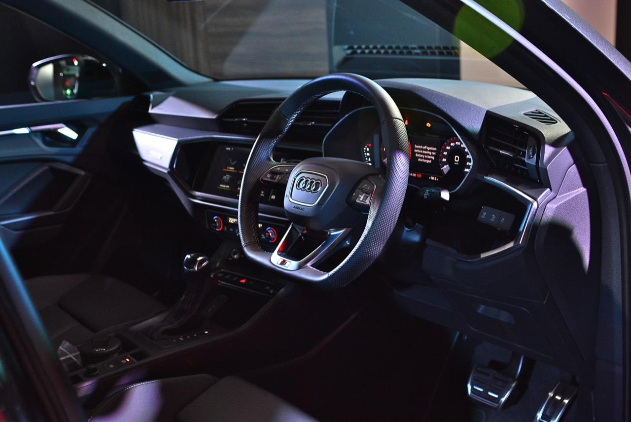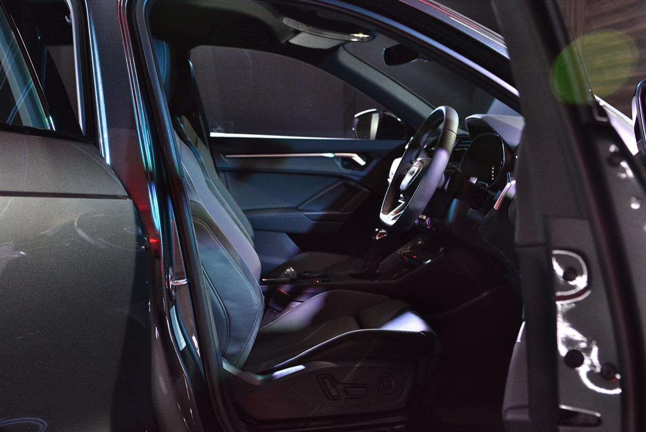 ห้องโดยสารอัพเกรดด้วยวัสดุรูปแบบใหม่สไตล์ Audi การจัดวางอุปกรณ์เน้นไปที่คนขับเป็นจุดศูนย์กลาง ห้องโดยสารของ Q3 เรียบง่าย แต่ทันสมัย เบาะหนังคู่หน้าแบบ Sports พร้อมสัญลักษณ์ S line จอแสดงผลข้อมูลการขับขี่ Virtual cockpit ขนาด 10.25 นิ้ว ระบบ MMI Radio plus พร้อมหน้าจอมอนิเตอร์สั่งงานด้วยระบบสัมผัส (MMI touch) ขนาด 8.8 นิ้ว เชื่อมต่อ Apple CarPlay และ Android Auto ผ่านระบบ Audi smartphone interface สามารถใช้ระบบนำทาง ผ่าน Google Maps จาก Apple CarPlay จุดเด่นของ Q3 รุ่นตัวถังมาตรฐาน ที่แตกต่างไปจากรุ่น Sportback ก็คือ เบาะที่นั่งด้านหลังทั้ง 3 ตำแหน่ง สามารถเลื่อนไปด้านหน้าได้ ปรับเอนพับพนักพิงหลังได้ เพื่อมอบท่านั่งขณะโดยสารทางไกล เพิ่มพื้นที่จัดเก็บสัมภาระ โดยมีความจุสูงเมื่อพับเบาะหลัง 1,525 ลิตร ในรุ่นตัวถังมาตรฐาน และ 1,400 ลิตร ในรุ่น Sportback