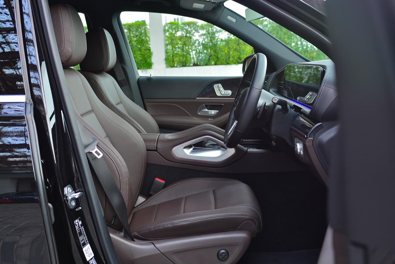 ดีไซน์ภายในห้องโดยสาร ติดตั้งระบบมัลติมีเดีย MBUX (Mercedes-Benz User Experience) พัฒนามาจากนวัตกรรม AI ควบคุมด้วยระบบที่มีความหลากหลายและตอบสนองต่อการใช้งานในชีวิตประจำวันที่จำเป็นจะต้องเชื่อมต่อกับโลกออนไลน์ เบาะนั่งแถวที่ 2 ปรับและพับได้ง่าย ความจุของห้องเก็บสัมภาระท้ายเมื่อยังไม่พับเบาะ 825 ลิตร และจะเพิ่มเป็น 2,055 ลิตร เมื่อพับเบาะแถวที่สองลง เพิ่มพื้นที่ภายในห้องโดยสารให้กว้างขึ้น จอภาพแสดงผลทั้งจอภาพมาตรวัดและจอมอนิเตอร์กลาง เชื่อมต่อเป็นจอเดียวกันในรูปแบบ Panorama ระบบ Infotainment MBUX เวอร์ชันใหม่ที่มีการปรับปรุงเพิ่มเติมฟังก์ชั่นการใช้งานมากถึง 40 แบบ new GLE ติดตั้งหน้าจอมอนิเตอร์ขนาด 12.3 นิ้ว เชื่อมต่อกับจอภาพมาตรวัด TFT สองจอเรียงต่อกันเพื่อให้ได้ภาพหน้าจอแบบจอหนังกลางแปลงของแอ๊ดเทวดาที่กว้างโคตรๆ สั่งงานผ่านการสัมผัสที่หน้าจอหรือสั่งงานผ่าน Touchpad แบบใหม่ล่าสุด เชื่อมต่ออุปกรณ์ภายนอกได้อย่างหลากหลาย ระบบความปลอดภัย เช่น กล้องมองรอบคัน ระบบช่วยเบรกแบบ Active Brake Assist ระบบช่วยเตือนเมื่อมีรถอยู่ในจุดบอดสายตา (Blind Spot Assist) ที่ช่วยลดความเสี่ยงจากการชนกับรถยนต์หรือรถจักรยานยนต์คันอื่นในจุดอับสายตา