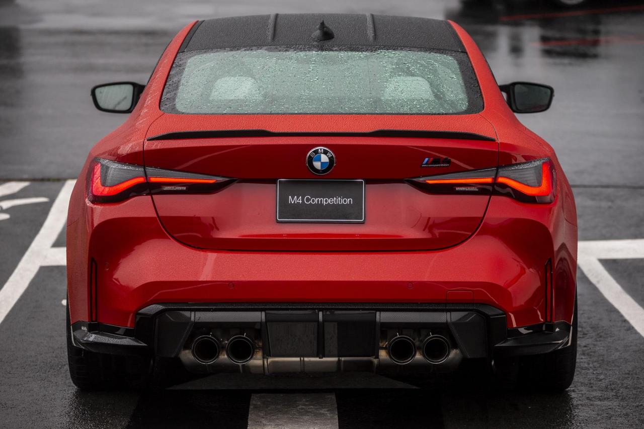 BMW M4 Competition Coupé มีรูปลักษณ์ที่แปลกตา ด้วยการออกแบบกระจังหน้าทรงไตคู่แนวตั้งขนาดใหญ่ ตัดกับซี่แนวนอนที่ออกแบบพิเศษเฉพาะสำหรับ BMW M ซุ้มล้อที่มีเส้นสายหนักแน่น พร้อมช่องระบายอากาศด้านข้างสไตล์ M กาบข้างพร้อมชิ้นส่วน บริเวณกระโปรงหน้าและท้ายรถ เสริมการตกแต่งด้วยชุดแต่ง M Carbon ประกอบด้วยหลังคาคาร์บอนไฟเบอร์ ครีบเสริมประสิทธิภาพทางอากาศพลศาสตร์ ฝาครอบกระจกข้าง กาบข้าง และสปอยเลอร์หลัง ทั้งหมด ทำจากคาร์บอนไฟเบอร์ ระบบระบายไอเสียติดตั้งท่อไอเสียแบบคู่ ไฟหน้าพร้อมระบบอัตโนมัติ Adaptive LED ระบบส่องสว่างแบบใหม่ BMW Laserlight ไฟท้ายแบบ Full LED ฝาท้ายและกันชนหลังมีครีบรีดอากาศที่วางรูปทรงให้มีความดุดัน มิติตัวถังของ BMW M4 Competition Coupé มีขนาดความยาว 4794 มิลลิเมตร กว้าง 1887 มิลลิเมตร สูง 1393 มิลลิเมตร ความยาวฐานล้อ 2857 มิลลิเมตร ระยะห่างล้อหน้า 1617 มิลลิเมตร ระยะห่างล้อหลัง 1605 มิลลิเมตร ระยะโอเวอร์แฮงก์หน้า 860 มิลลิเมตร ระยะโอเวอร์แฮงก์หลัง 1077 มิลลิเมตร น้ำหนัก 1725 กิโลกรัม