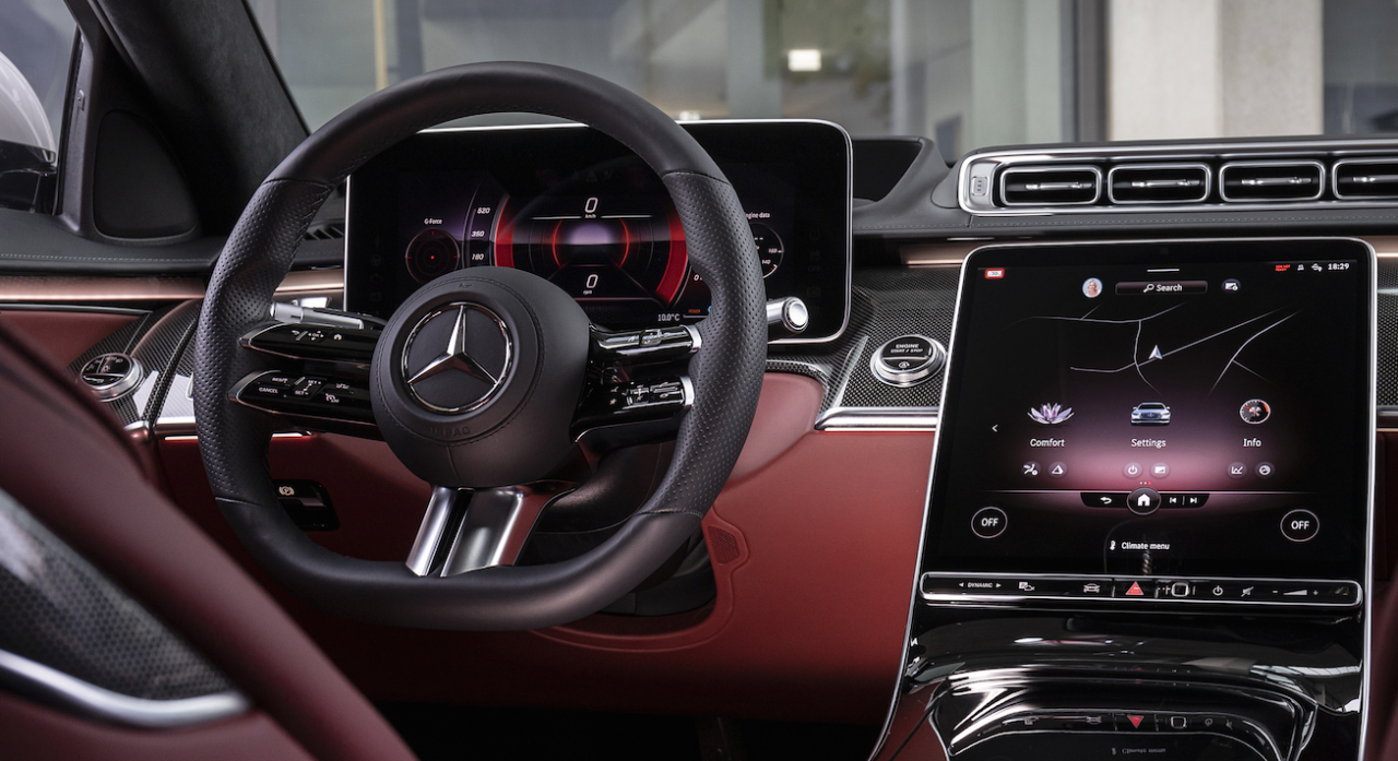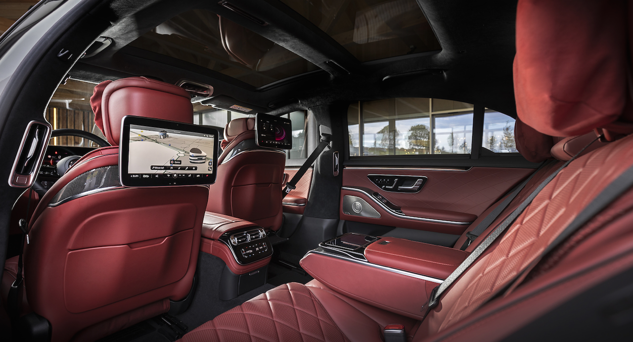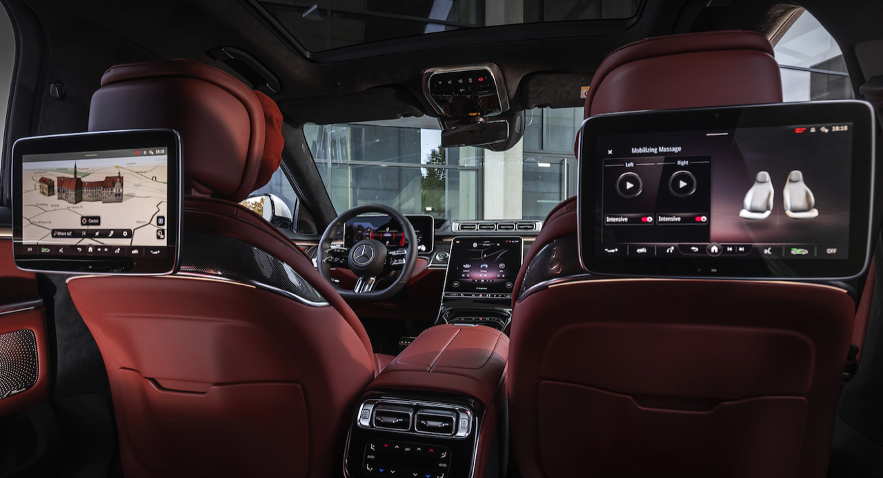 ภายใต้การออกแบบในลักษณะฟรีฟอร์มดูบางเบาทว่าตอบสนองฉับไว ช่วยให้ผู้ขับขี่สามารถควบคุมทุกฟังก์ชันการทำงานของรถยนต์และฟังก์ชันต่างๆ ด้วยการสัมผัส โดยผสานการทำงานร่วมกับระบบเซนเซอร์ลายนิ้วมือที่จะเก็บข้อมูลส่วนบุคคลของผู้ขับขี่แต่ละคนเพื่อตอบสนองความต้องการเฉพาะบุคคลตลอดการขับขี่ได้อย่างตรงใจ เบาะที่นั่งตอนหลังยังมาพร้อม Rear Seat Comfort Package เป็นเบาะไฟฟ้าที่สามารถปรับตำแหน่งที่นั่งได้ ฟังก์ชันนวดที่สามารถเลือกโปรแกรมการนวด 6 โปรแกรม ระบบมัลติมีเดีย MBUX7 (Mercedes-Benz User Experience) เจเนอเรชันใหม่ยกระดับประสบการณ์การขับ ระบบ MBUX Interior Assistant ทำงานไว ในการตอบรับการเคลื่อนไหวร่างกายของผู้โดยสาร โดยระบบจะตรวจจับการเคลื่อนไหวของมือ ศีรษะ และร่างกาย เพื่อแปลความต้องการของผู้ใช้ นำไปสู่การควบคุมฟังก์ชันต่างๆ ภายในรถยนต์ เช่น หากยื่นมือขึ้นหรือลงทางกระจกด้านข้าง ไฟอ่านหนังสือจะติดขึ้นหรือดับลงเองโดยอัตโนมัติ ฯลฯ ส่วนระบบ MBUX High-End Rear Seat Entertainment จะทำงานร่วมกับ Rear Tablet หน้าจอระบบสัมผัสขนาด 7 นิ้ว ยกระดับการควบคุมความบันเทิงของผู้โดยสารตอนหลังให้สะดวกมากขึ้น โดยเฉพาะการควบคุมความบันเทิงบนหน้าจอขนาด 11.6 นิ้ว 2 หน้าจอสำหรับผู้โดยสารตอนหลัง ระบบเสียง Burmester® 3D-Surround พร้อมชุดลำโพง 15 ตัว ติดตั้งรอบๆ ห้องโดยสารเพื่อยกระดับของการรับฟังเพลงแบบใหม่