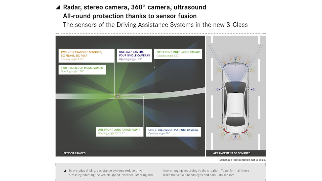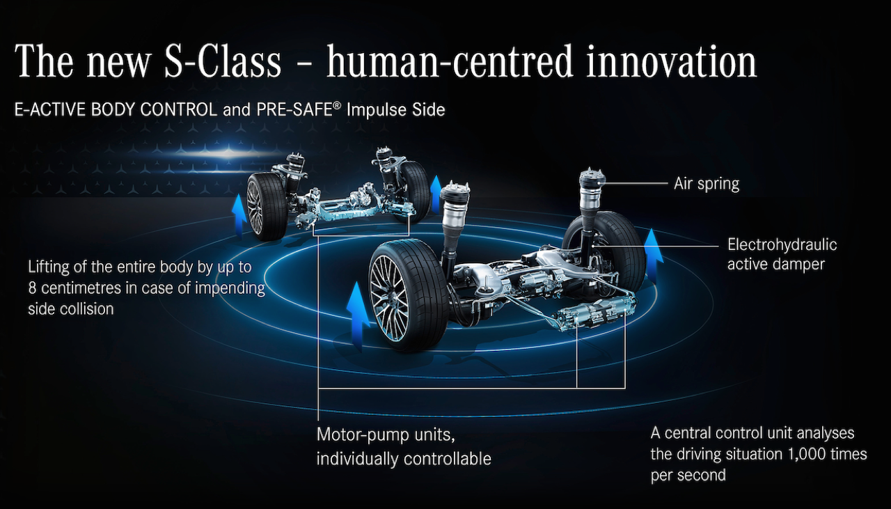 ใน The new S-Class ยังมาพร้อมระบบความปลอดภัยที่ล้ำหน้าอย่างครบครัน ไม่ว่าจะเป็นครั้งแรกของการนำเสนอถุงลมนิรภัยด้านหน้าให้กับผู้โดยสารแถวหลัง ระบบ Parking Package with 360° camera ที่มอบมุมมองรอบรถยนต์แบบ 360 องศาที่เสมือนจริงยิ่งกว่าที่เคย