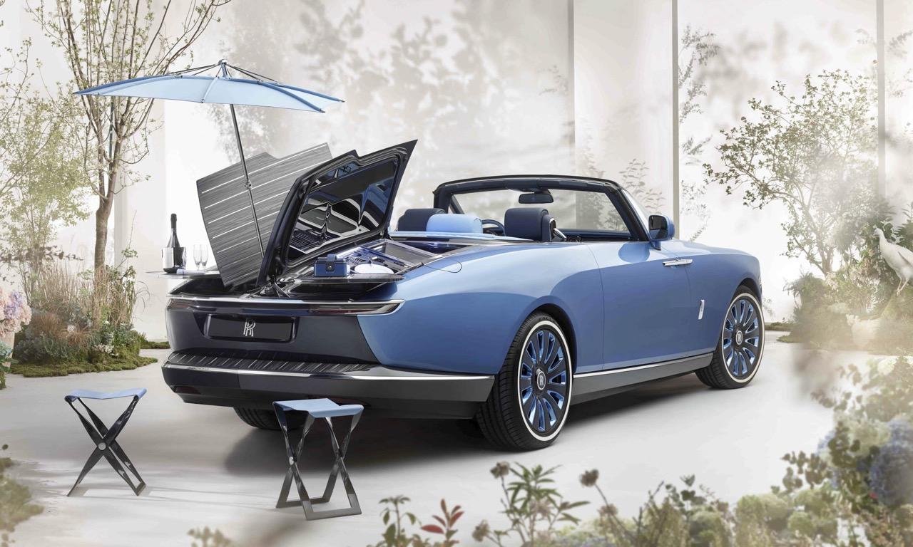 ในขณะที่แชมเปญเป็นที่คุ้นเคยในโลกแห่งความหรูหรา ลูกค้าของ Boat Tail ก็ชื่นชอบไวน์คุณภาพเยี่ยม ลูกค้ามหาเศรษฐีคนหนึ่ง ย้อนรำลึกถึงเรื่องราวในช่วงต้นชีวิตอย่างถ่อมตนว่า เพื่อนสนิทของเขาคนหนึ่งเป็น ซอมเมอลิเย่ร์ที่บ้านเกิดของเขา และได้สอนให้รู้จักการชิม Grandes Marques de Champagne ในรสชาติที่แตกต่างกัน และได้ศึกษาเกี่ยวกับเรื่องนี้มาโดยตลอด จนกระทั่งพบกับแชมเปญระดับ Grand Cru หายากที่ได้สะสมจนกลายเป็นหนึ่งในคอลเลกชั่นแชมเปญที่ได้รับการพูดถึงมากที่สุดในโลก ผ่านการแช่เย็นแชมเปญอย่างรวดเร็วที่อุณหภูมิ 6 องศาฯ เพื่อให้ได้อุณหภูมิที่เหมาะสมที่สุดขณะเสิร์ฟ สำหรับแชมเปญวินเทจราคาแสนแพง! งานออกแบบที่เป็นองค์ประกอบคลาสสิกใน Rolls Royce ร่วมสมัย คือ ช่องเก็บร่มภายในประตู เมื่อต้องเผชิญกับสถานการณ์อากาศที่ไม่เป็นใจ สิ่งที่เพิ่มประสบการณ์ใหม่ใน Boat Tail คือ ร่มกันแดดที่มีเอกลักษณ์ ถูกเก็บภายใต้คอนโซลกลางด้านหลังสำหรับวันอากาศดี การเลื่อนสไลด์เปิดปิดด้วยระบบไฮดรอลิกของหลังคาที่สวยงามแปลกตา ช่วยให้การใช้งานเป็นไปอย่างแม่นยำและง่าย